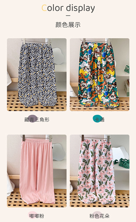 아기의 모기 방지 바지 어린이 실크 블루머 여름 캐주얼 소년 및 소녀 외부 착용 홈 에어컨 파자마 바지 얇은