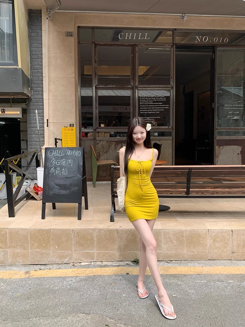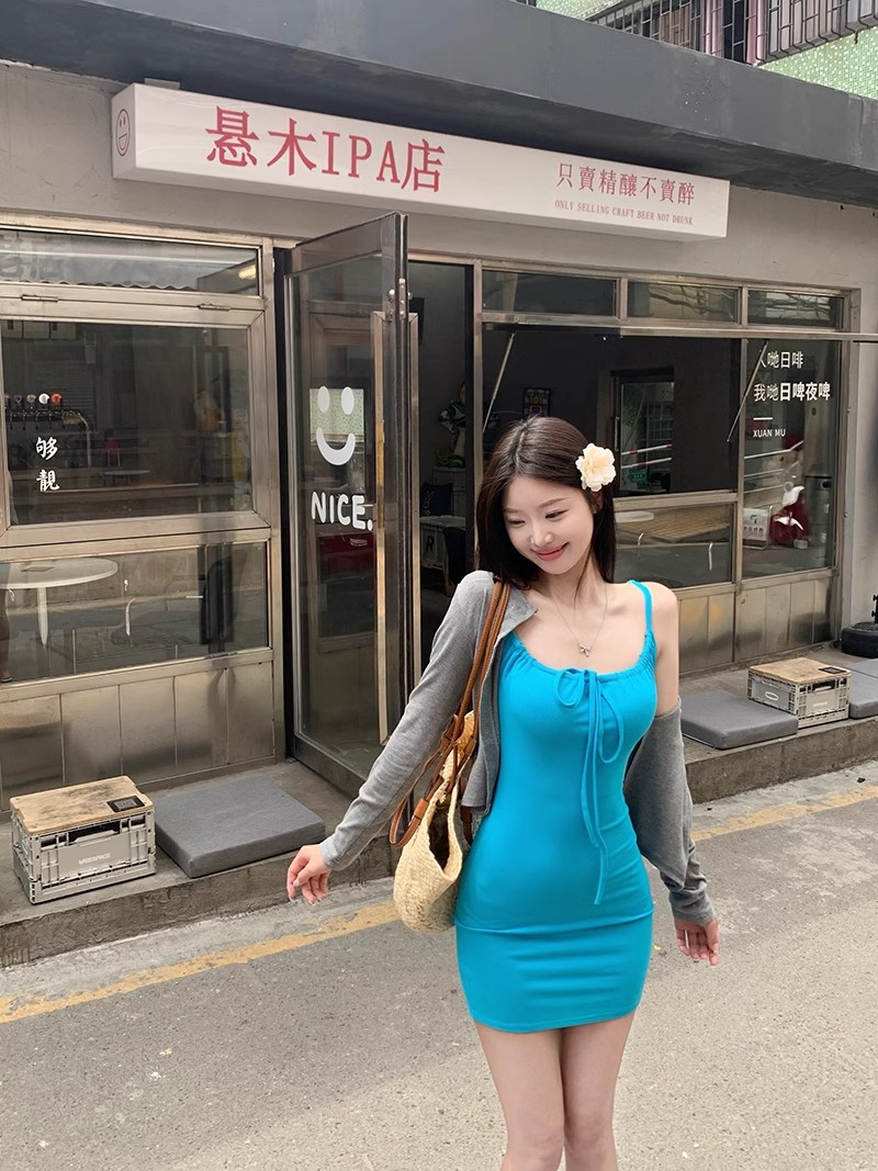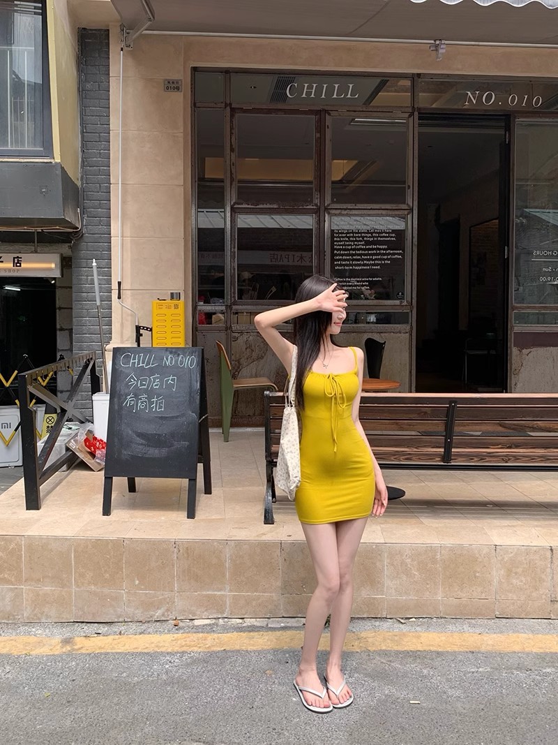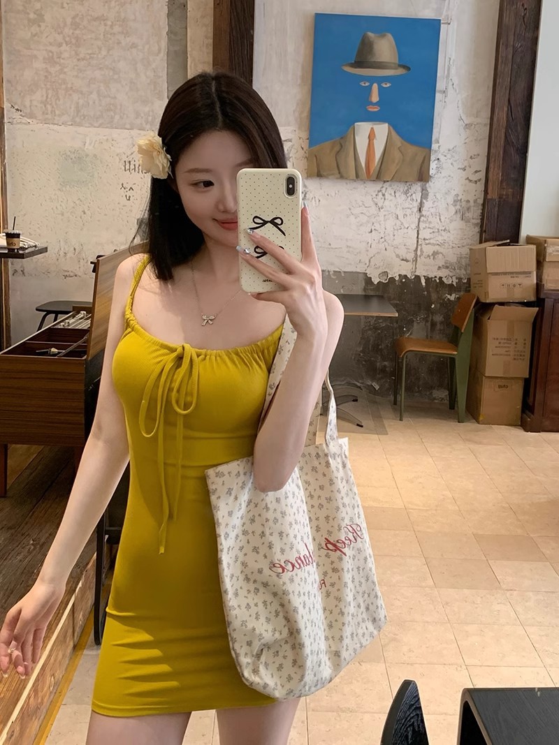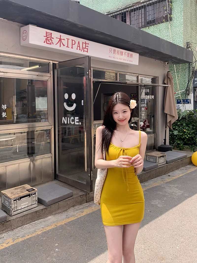 몸집이 작은 여성을 위한 핫걸 하이웨이스트 드로스트링 보우 U넥 조끼 드레스, 핫걸 순수한 욕망 슬리밍 힙 커버 스커트스토어 가기