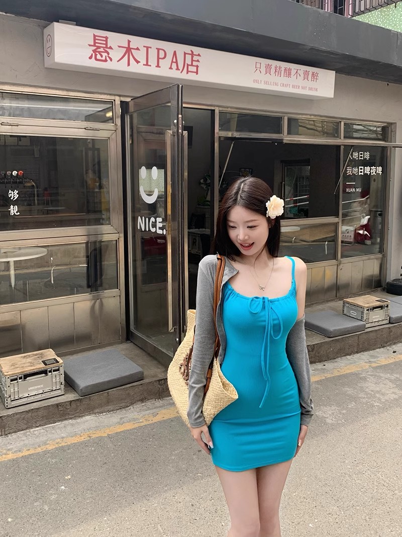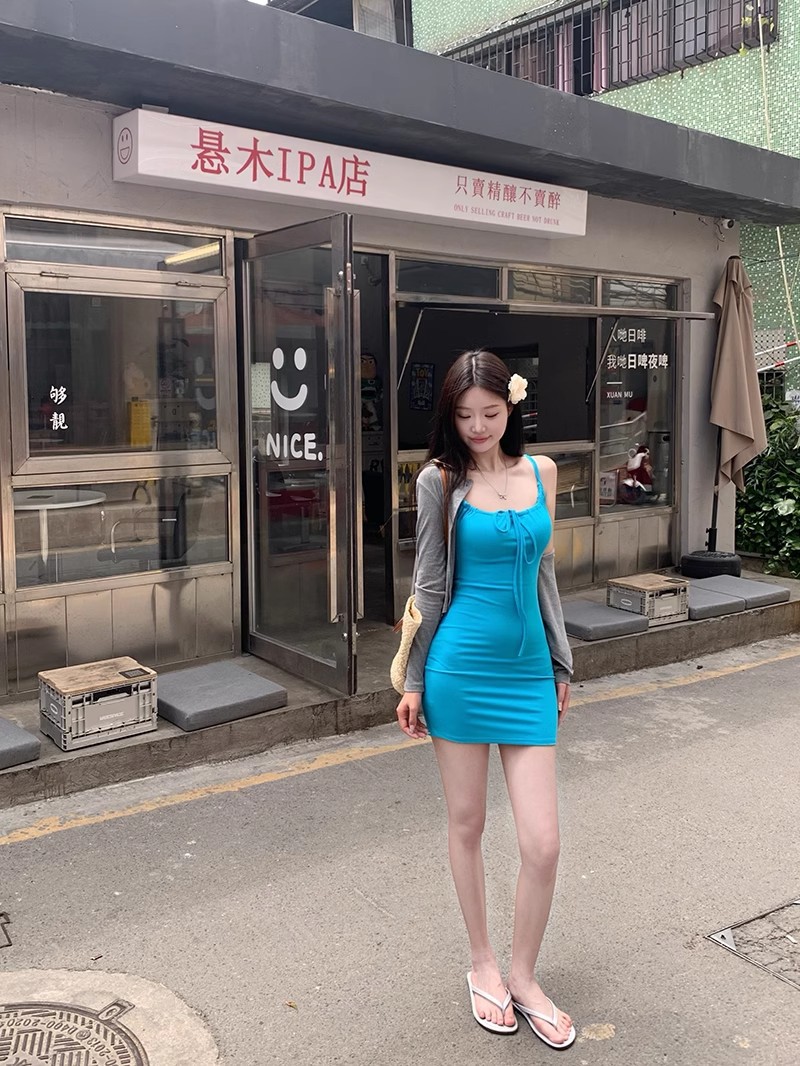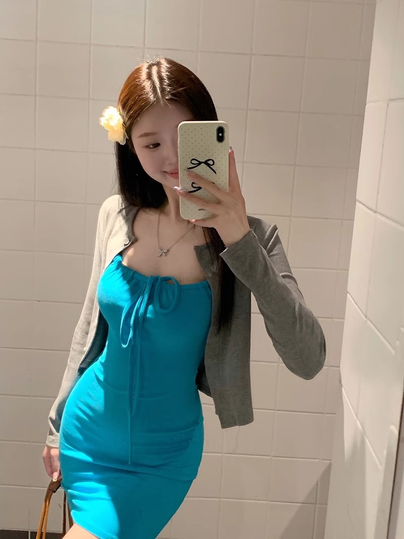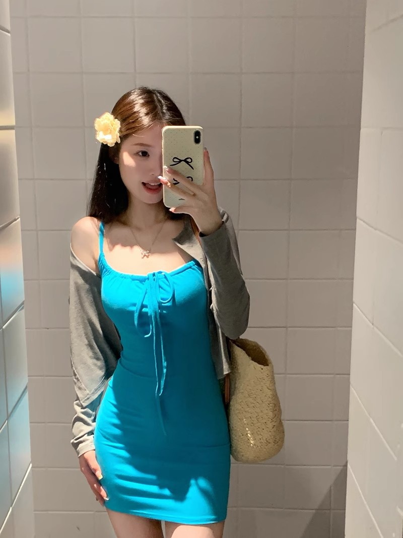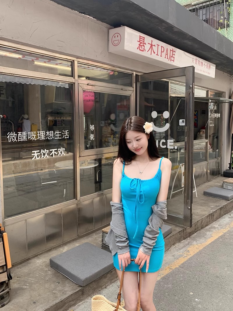 몸집이 작은 여성을 위한 핫걸 하이웨이스트 드로스트링 보우 U넥 조끼 드레스, 핫걸 순수한 욕망 슬리밍 힙 커버 스커트스토어 가기