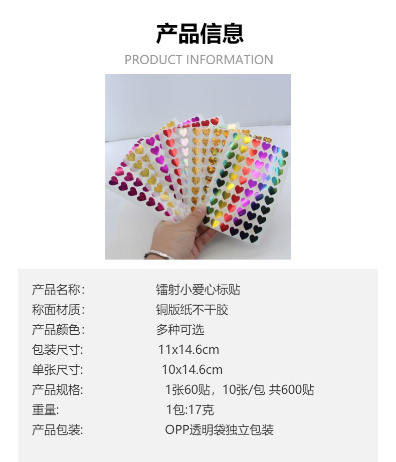 13MM 레이저 하트 스티커 유치원 보상 어린이 학생 보상 발렌타인데이스토어 가기
