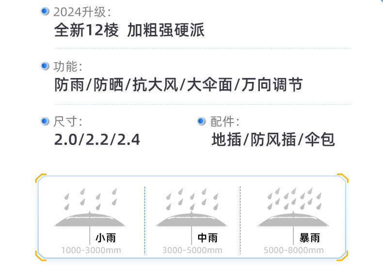 • [회전방지 풀로드 12날 스테인리스 넓어진 대형 우산날개] 2.0m 스타블루