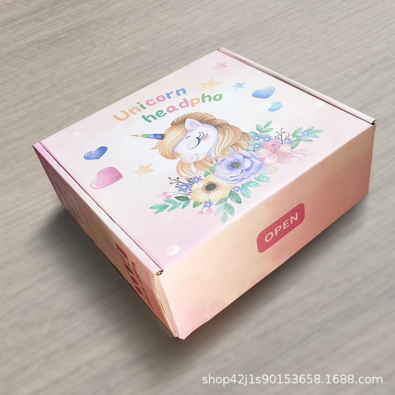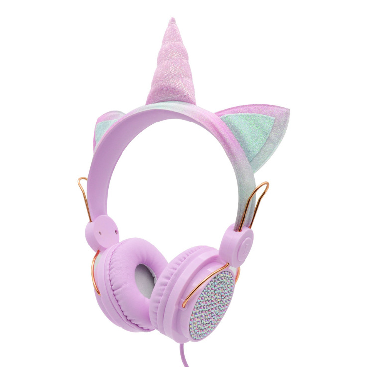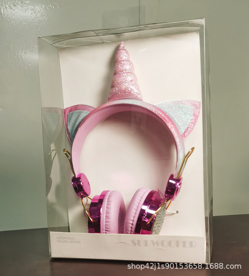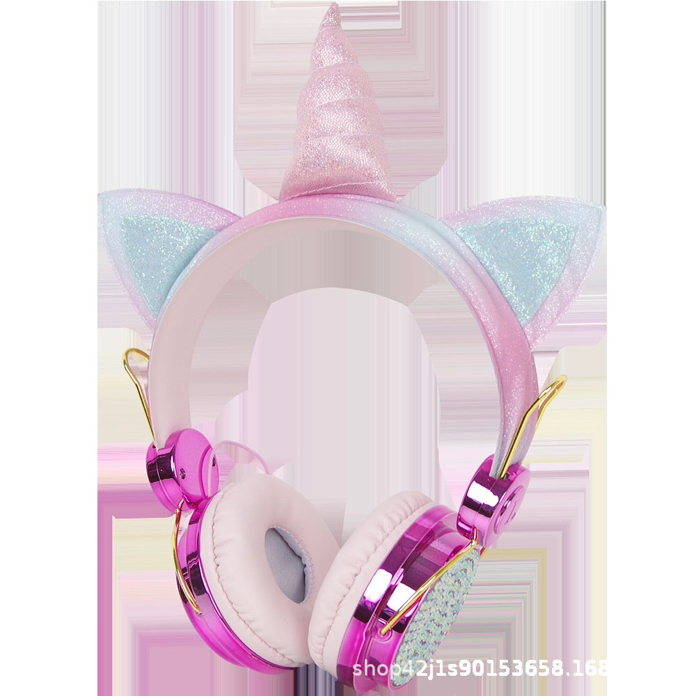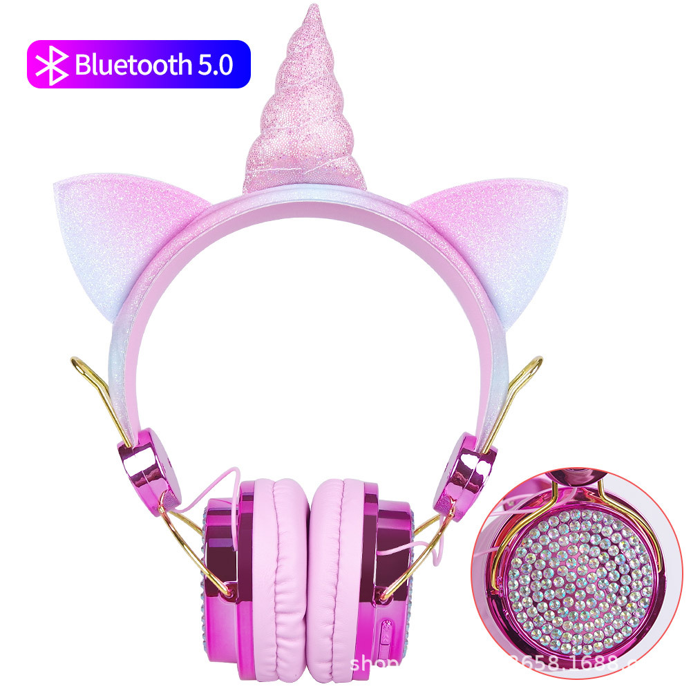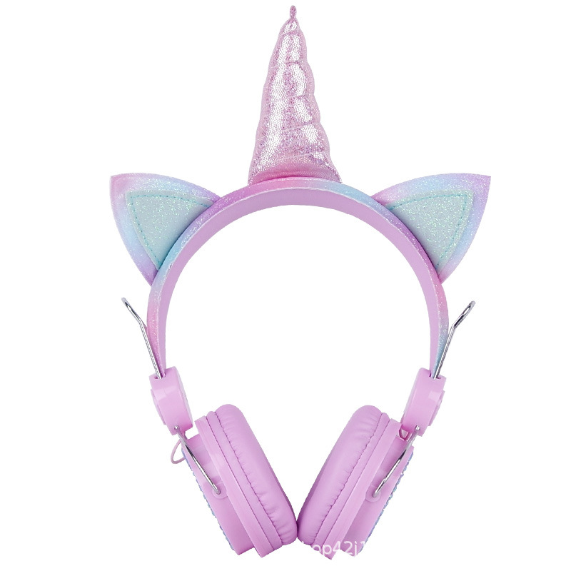 서브 우퍼 빛나는 유니콘 만화 헤드셋이있는 휴대 전화 컴퓨터 태블릿 용 헤드 마운트 어린이 유선 블루투스 헤드셋
