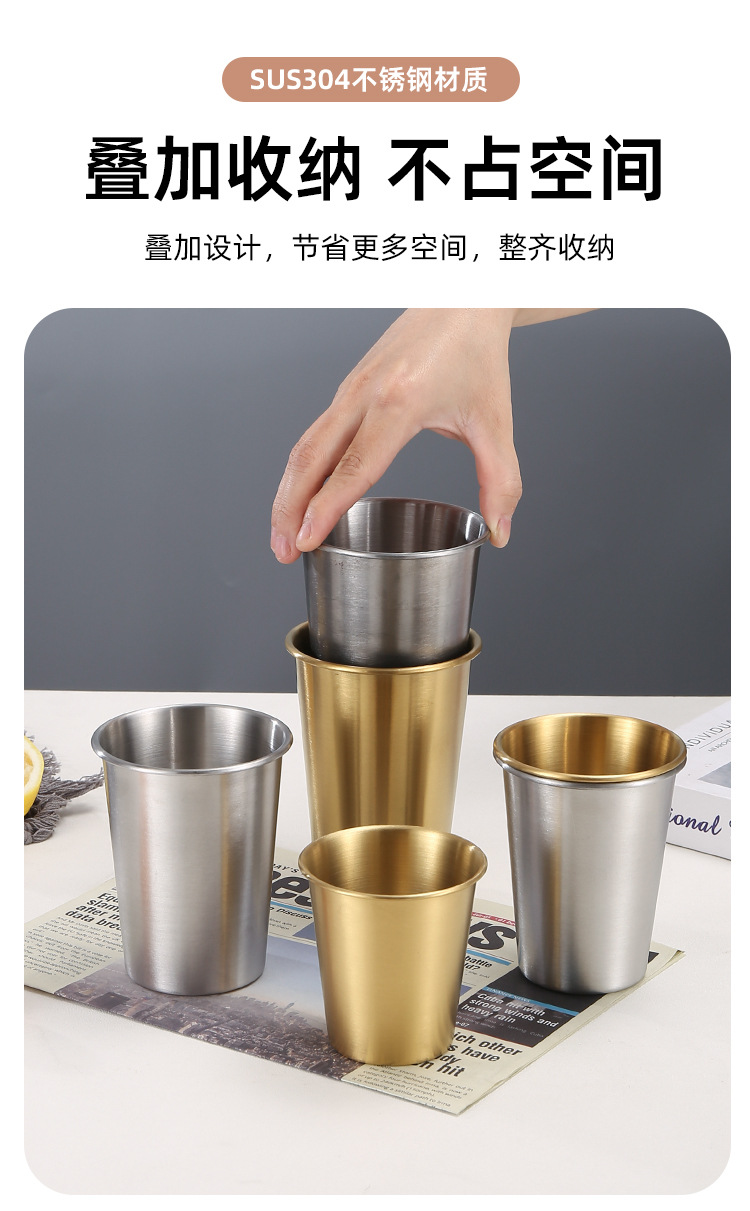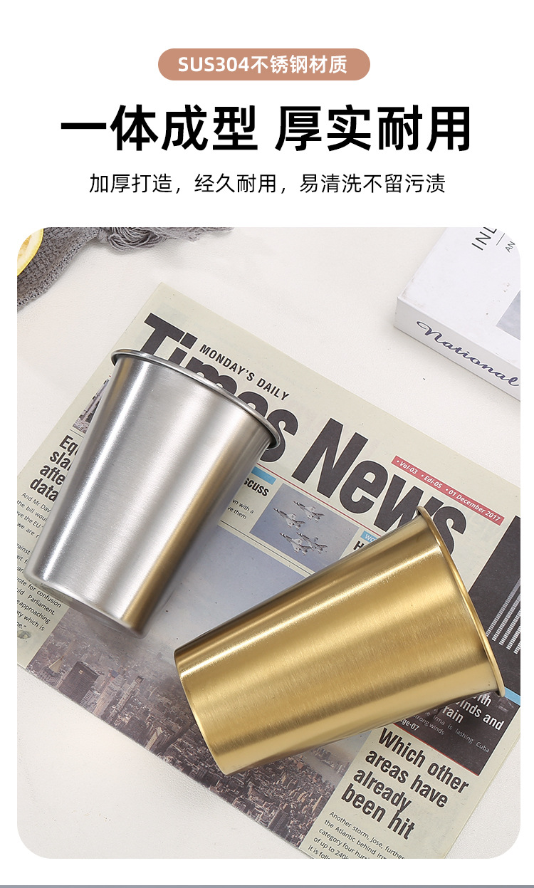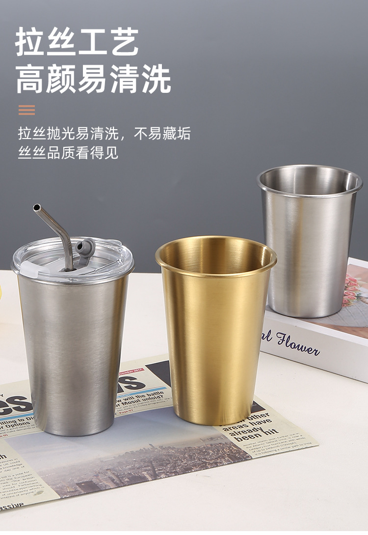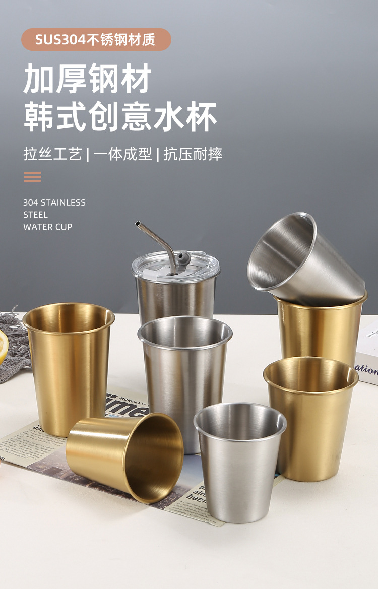한국식 304 스테인리스 스틸 단층컵 맥주컵, 물컵, 밀크티컵, 커피컵, 휴대용컵, 제조업체, 대외 무역 도매스토어 가기