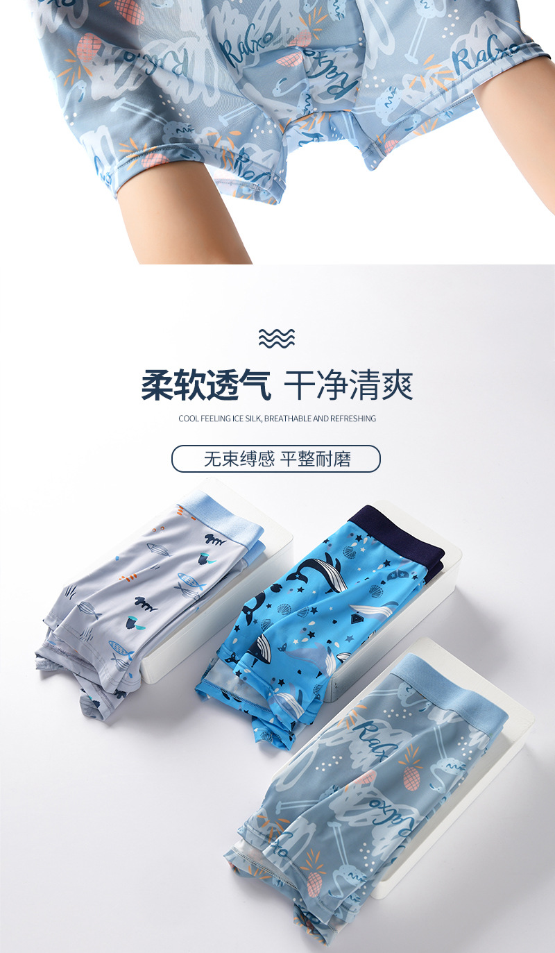새로운 인쇄 된 아이스 실크 남성 속옷 도매 4 코너 바지 플러스 사이즈 뚱뚱한 남자 통기성 메쉬 정균 복서