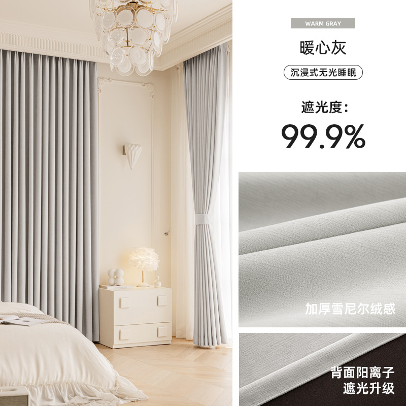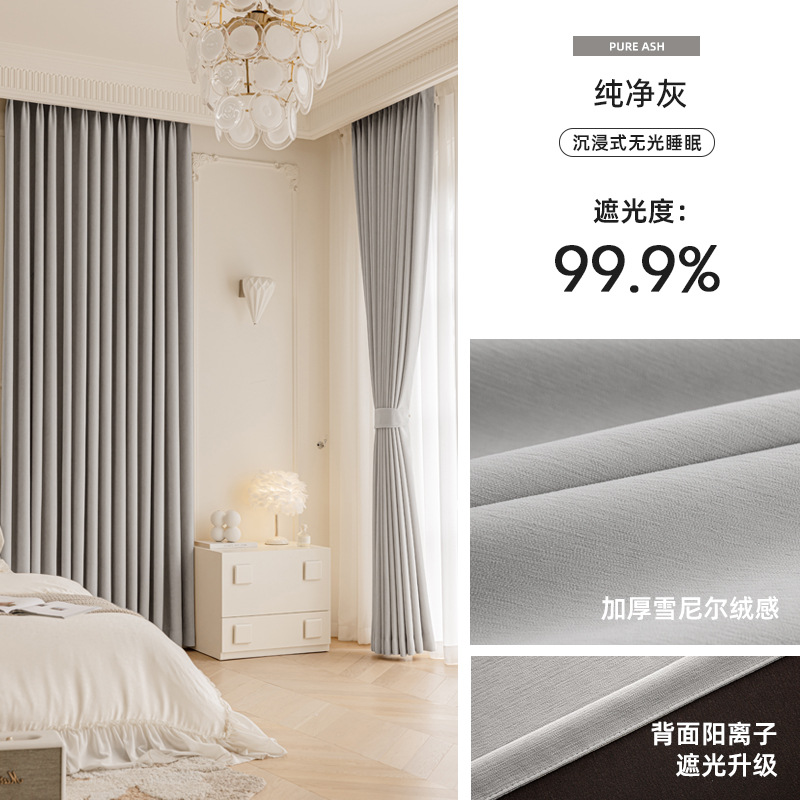 • 3.0 크림 벨벳 커튼 _ 정전 마스터-순수한 회색