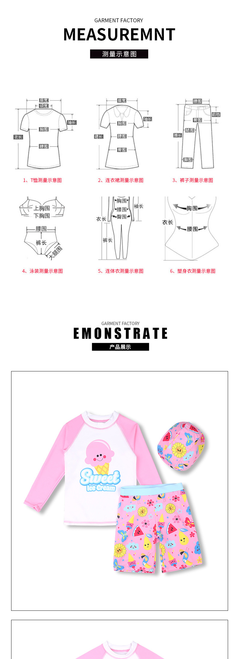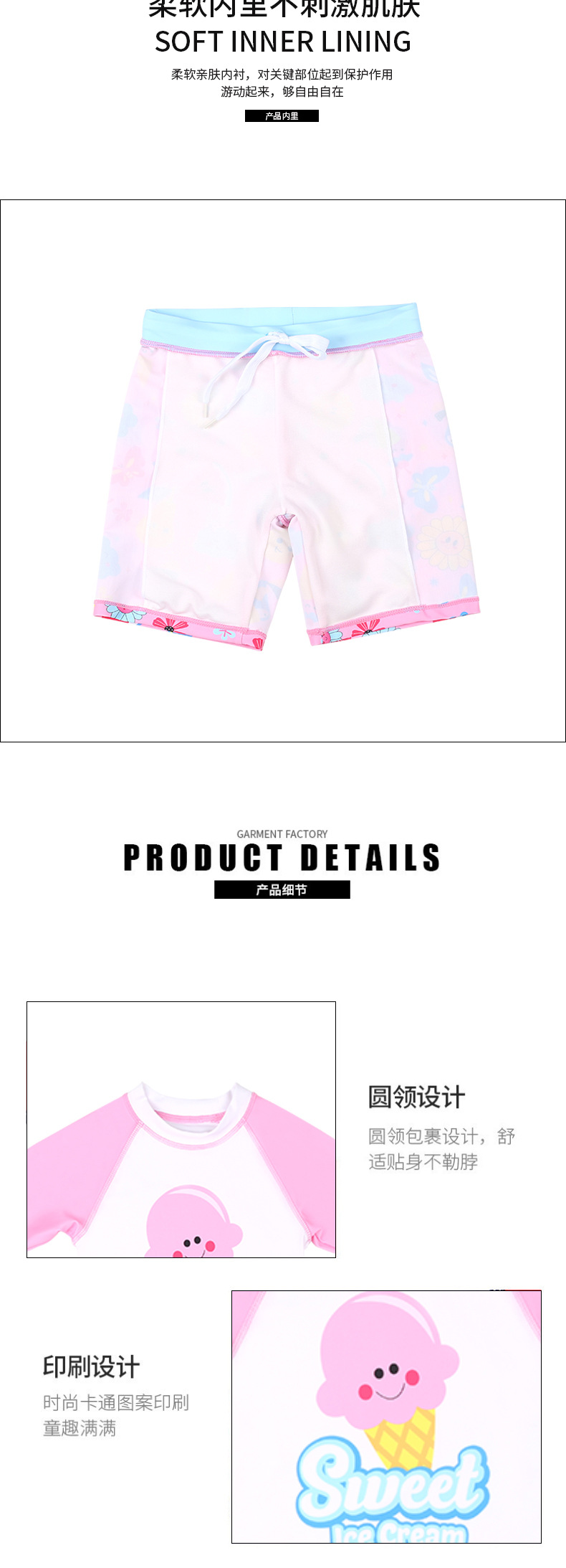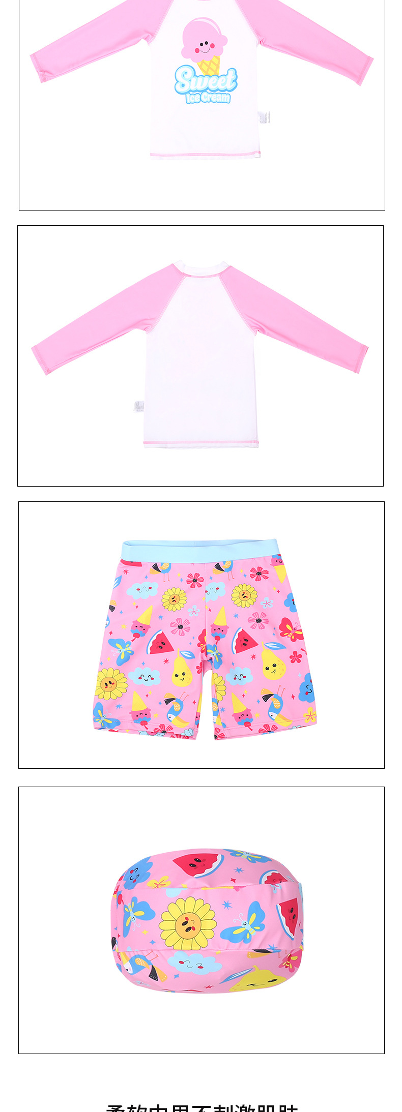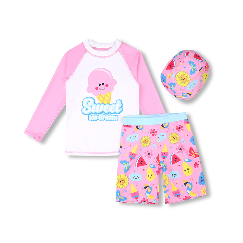 어린이 수영복, 수영모, 여아 수영복, 반팔, 속건, 패턴 세트, 중대형 어린이용, 자외선 차단, 분리형, 귀여운
