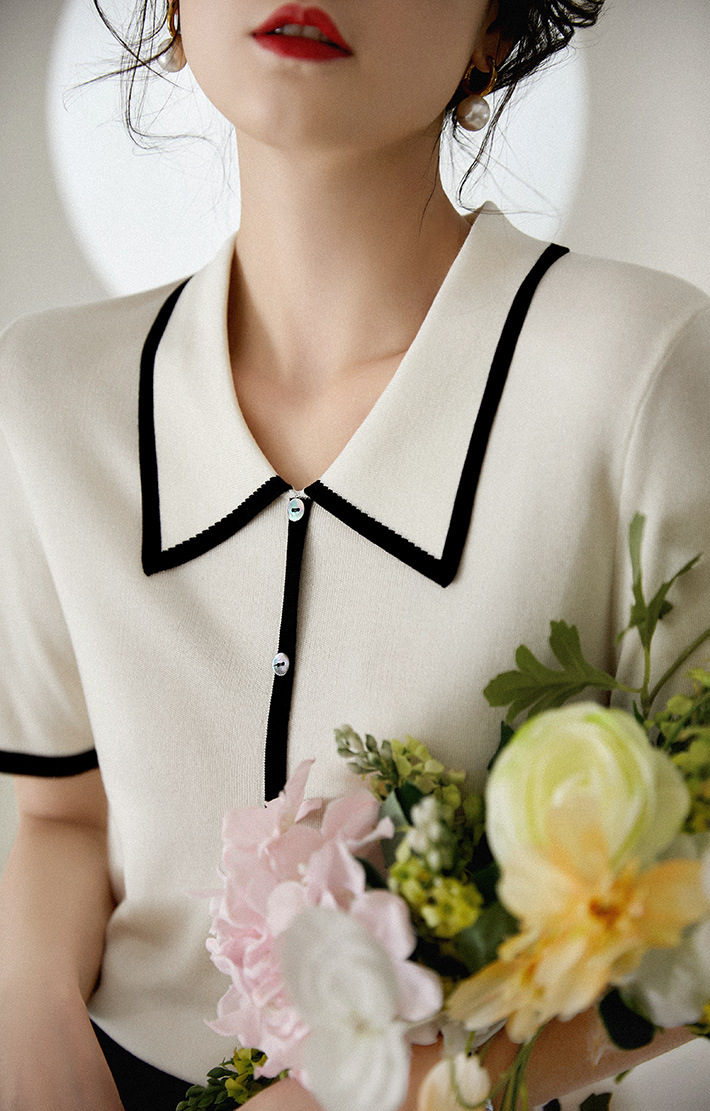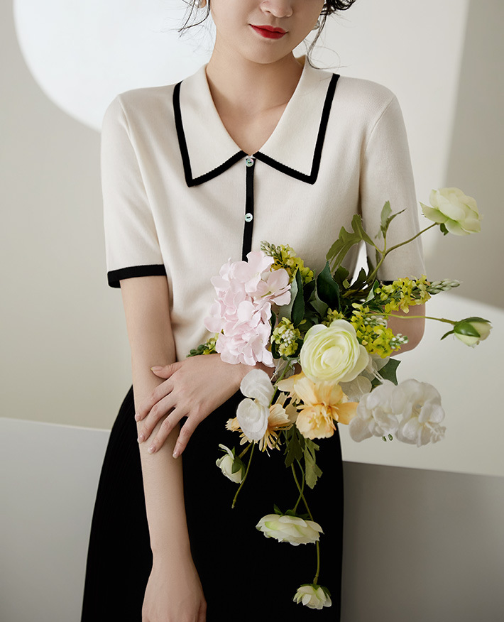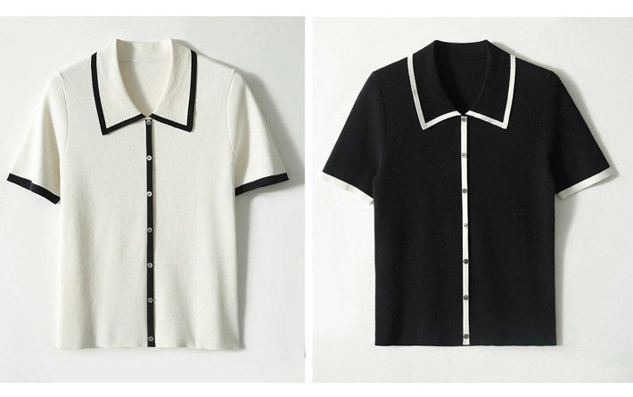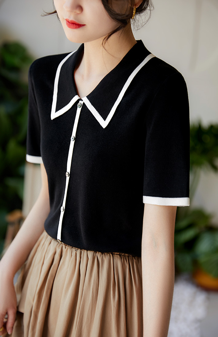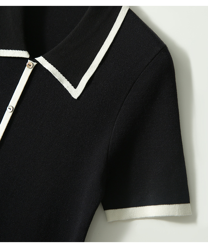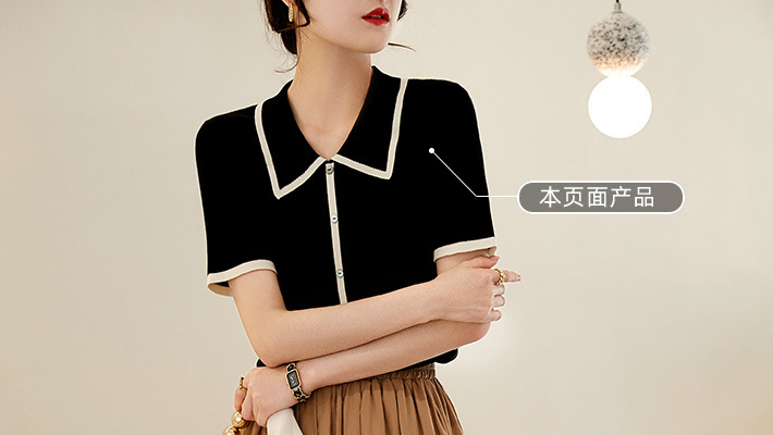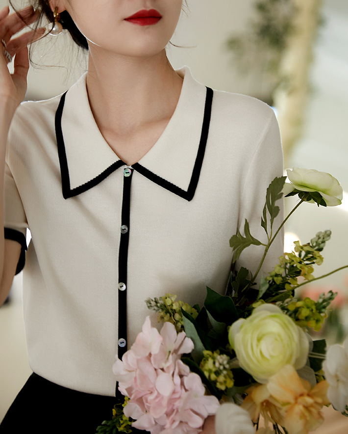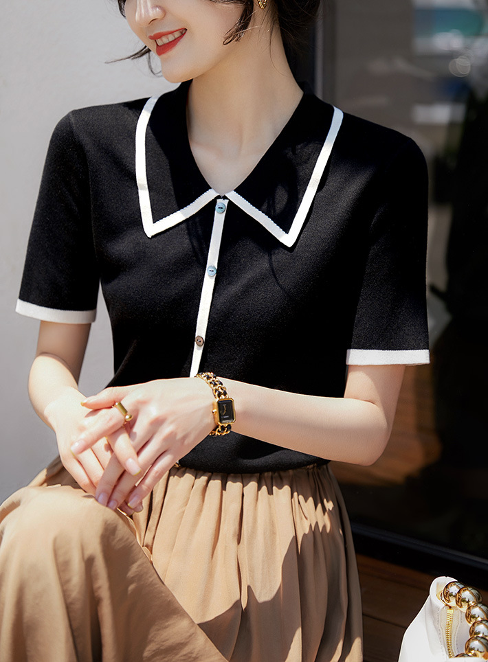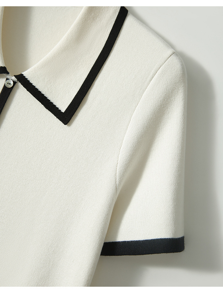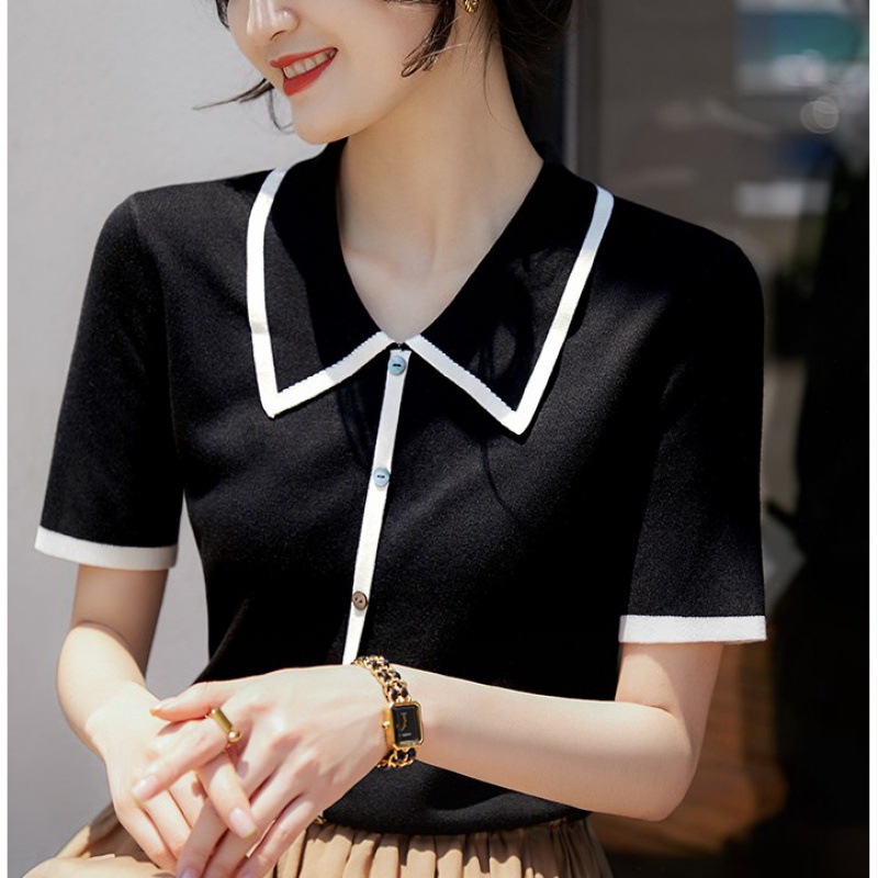 프랑스 우아한 우아한 반팔 포이오 셔츠 여성용 하이 엔드 여름 원피스 작은 샤넬 아이스 실크 니트 스웨터 렐탑스토어 가기