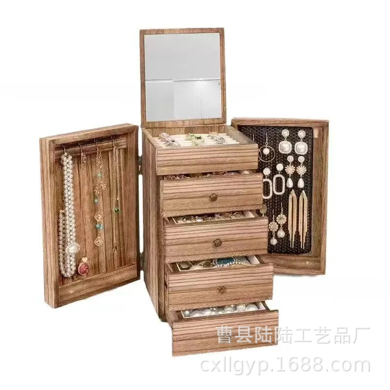 디스플레이 박스 나무 보석 보관함 데스크탑 귀걸이 목걸이 보석함 원목 보석 보관함
