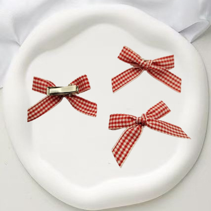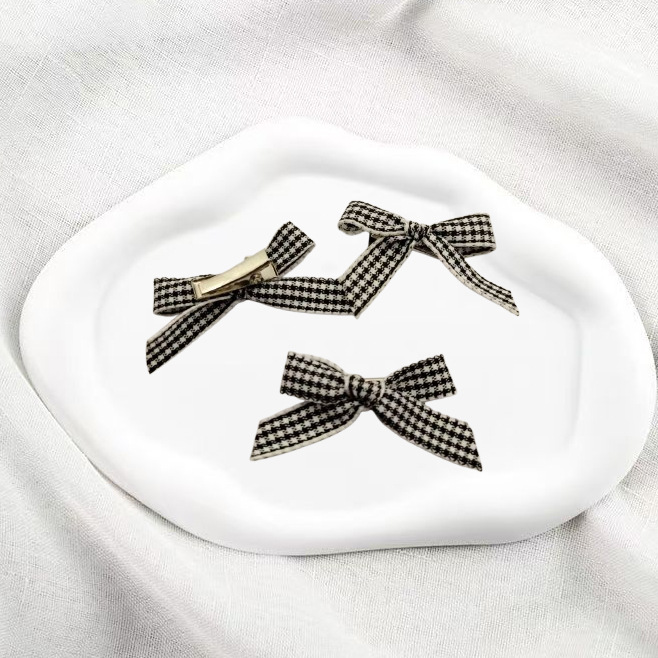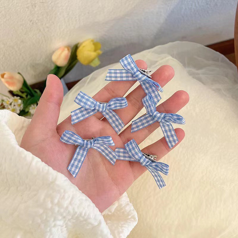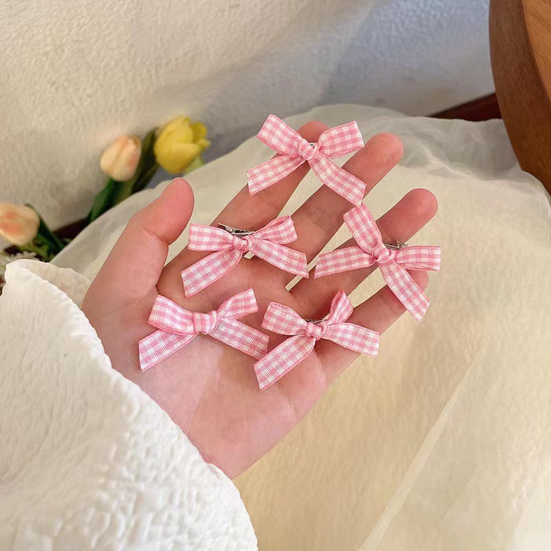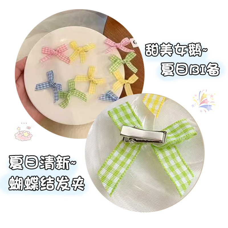 격자 무늬 활 작은 머리핀 소녀의 신선한 여름 새로운 사이드 클립 한국식 스몰 사이즈 덕빌 클립 헤드웨어