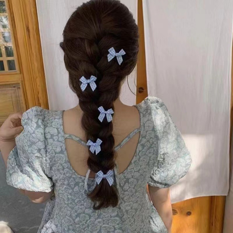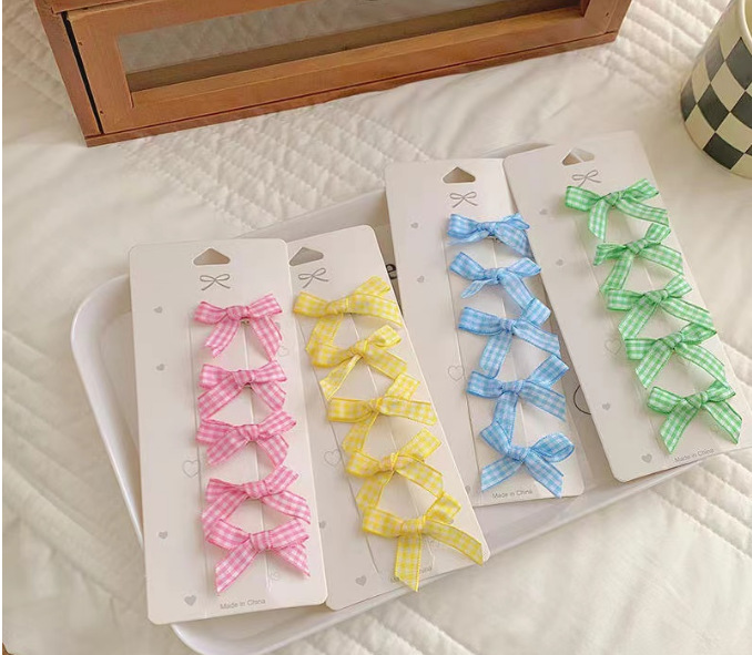 격자 무늬 활 작은 머리핀 소녀의 신선한 여름 새로운 사이드 클립 한국식 스몰 사이즈 덕빌 클립 헤드웨어스토어 가기