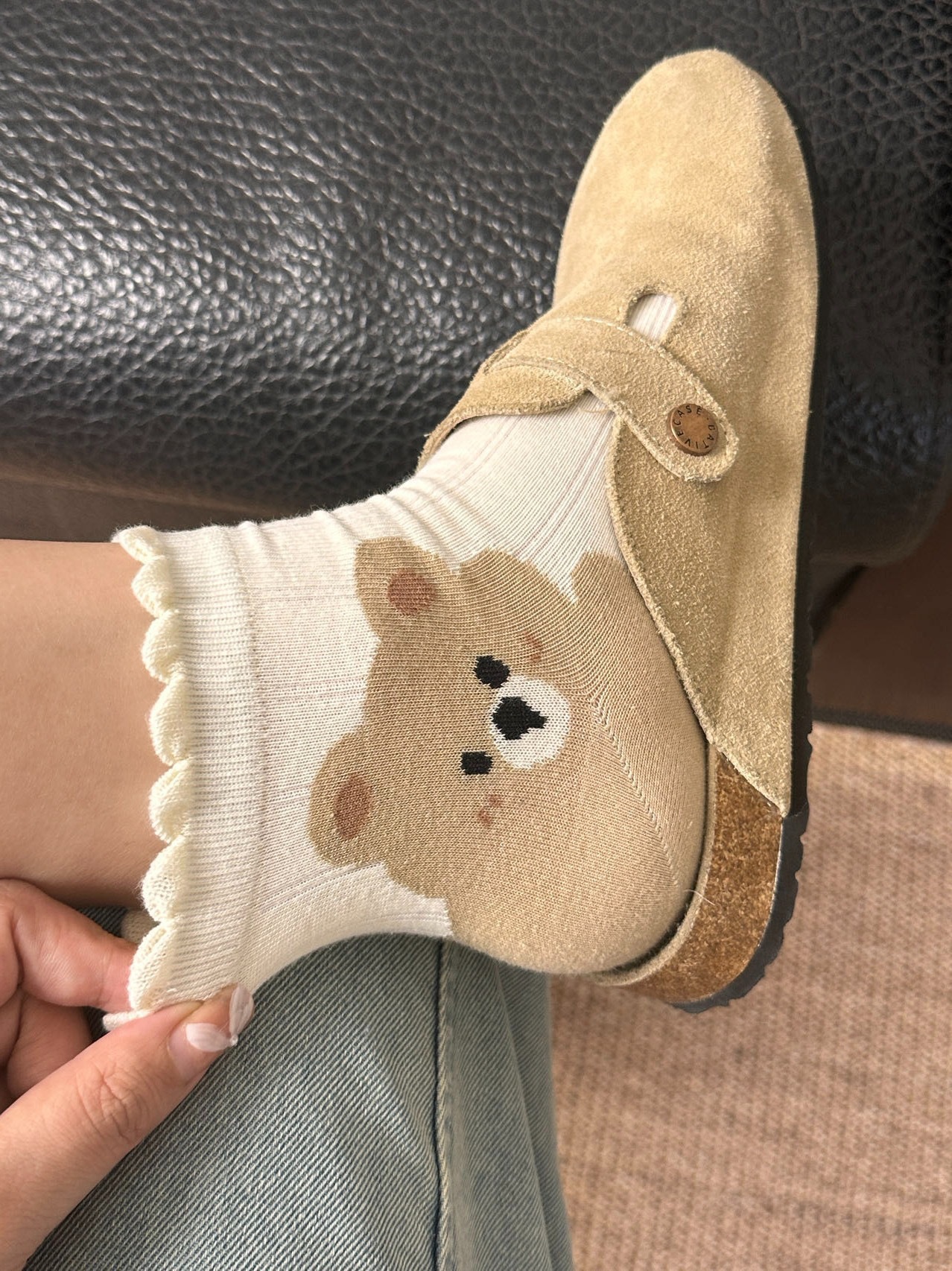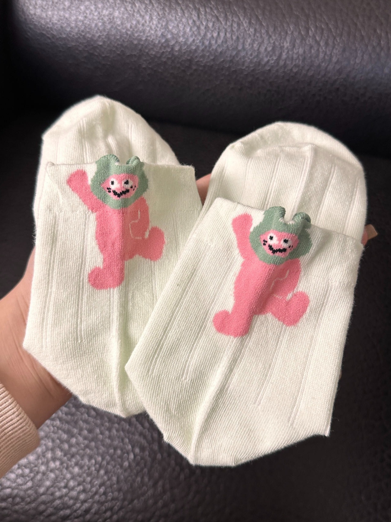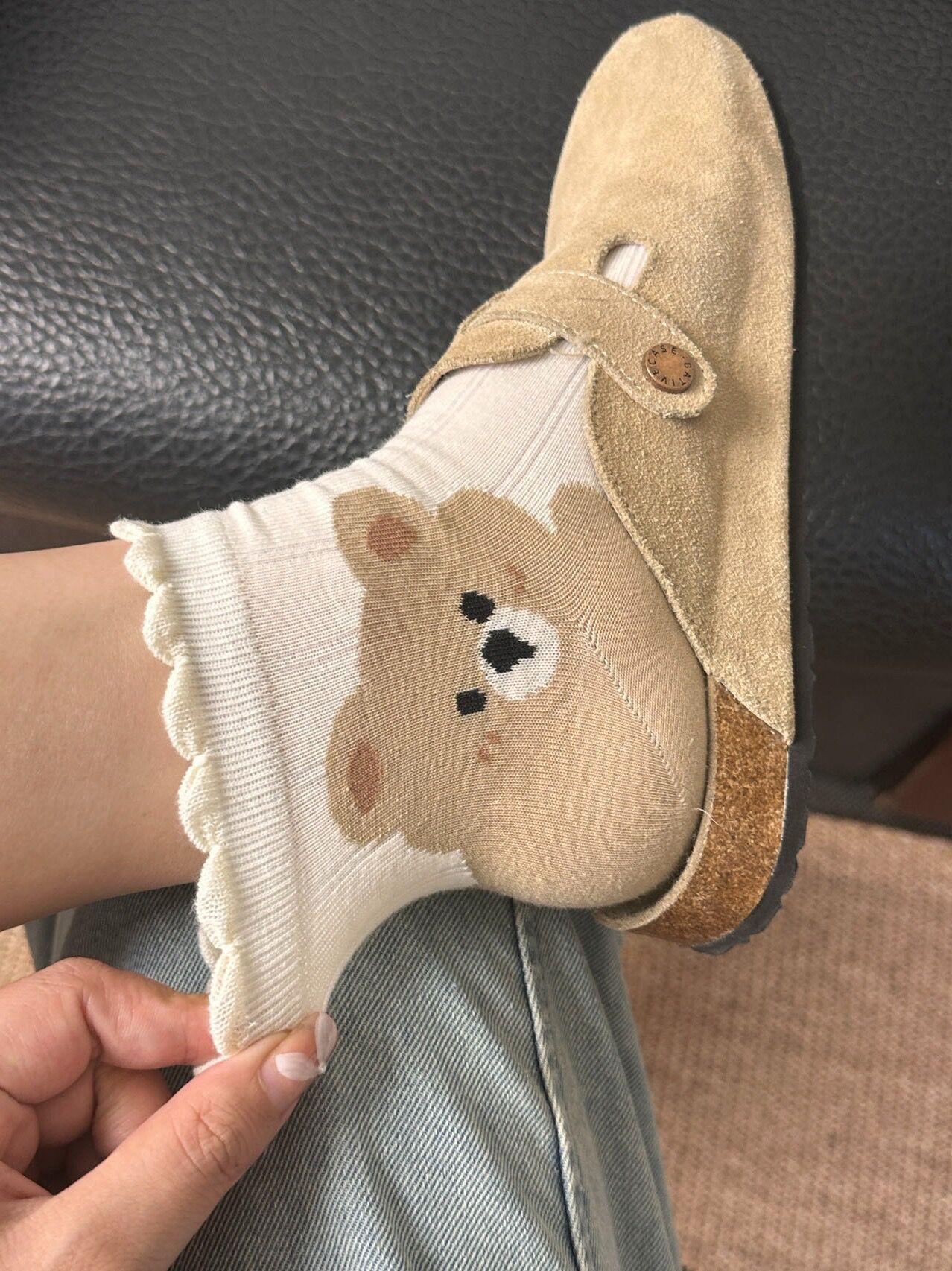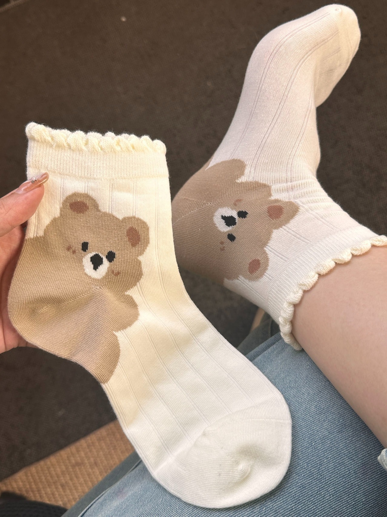 Yuanrun 가족 새로운 봄과 여름 얇은 곰 만화 양말 디자이너 마카롱 컬러 올 매치 코튼 양말 일본 스타일스토어 가기