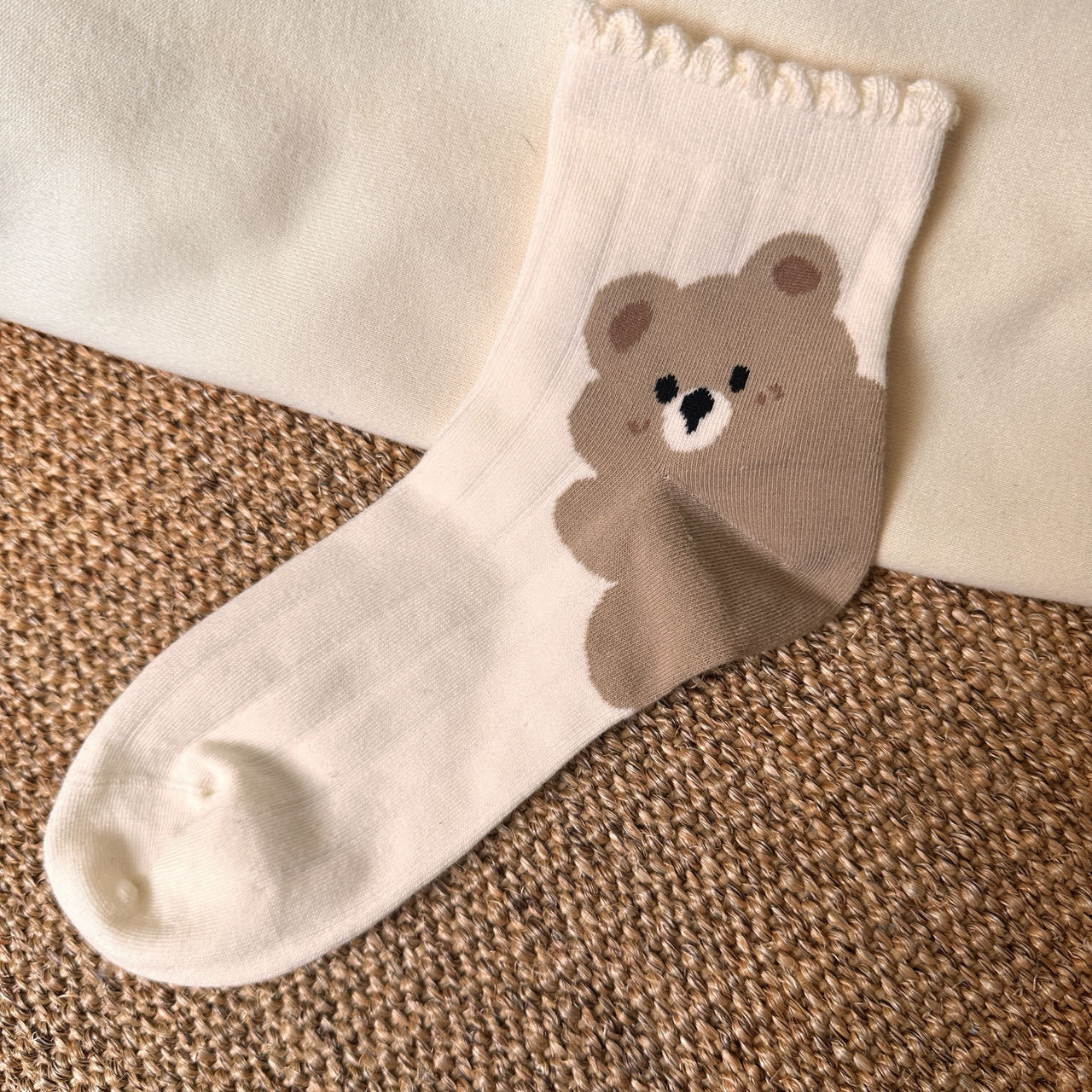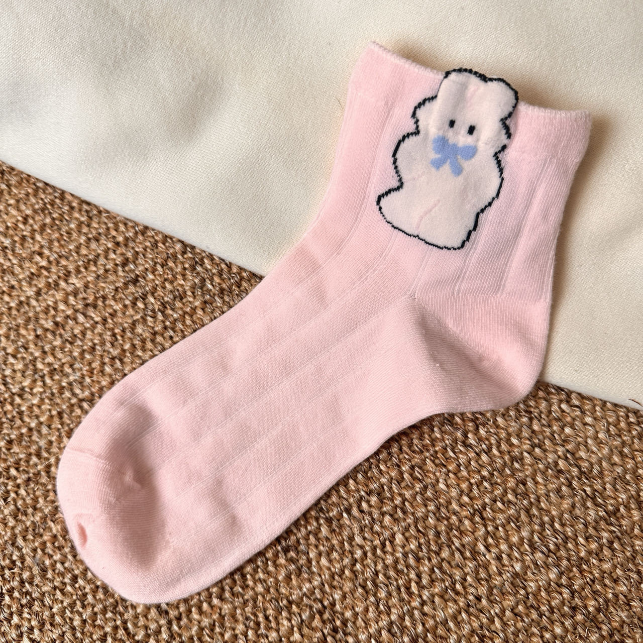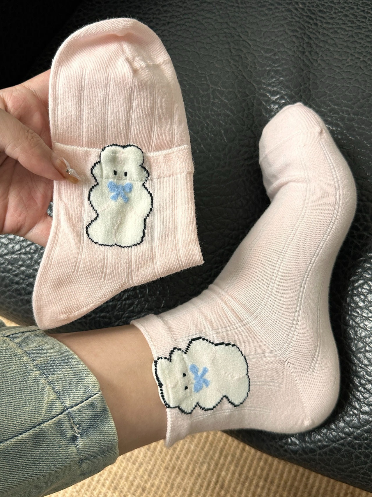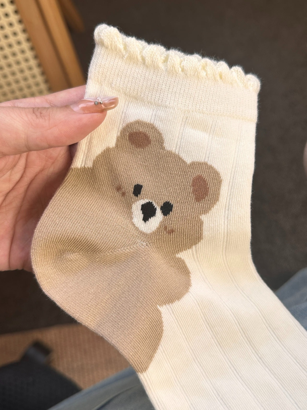 Yuanrun 가족 새로운 봄과 여름 얇은 곰 만화 양말 디자이너 마카롱 컬러 올 매치 코튼 양말 일본 스타일