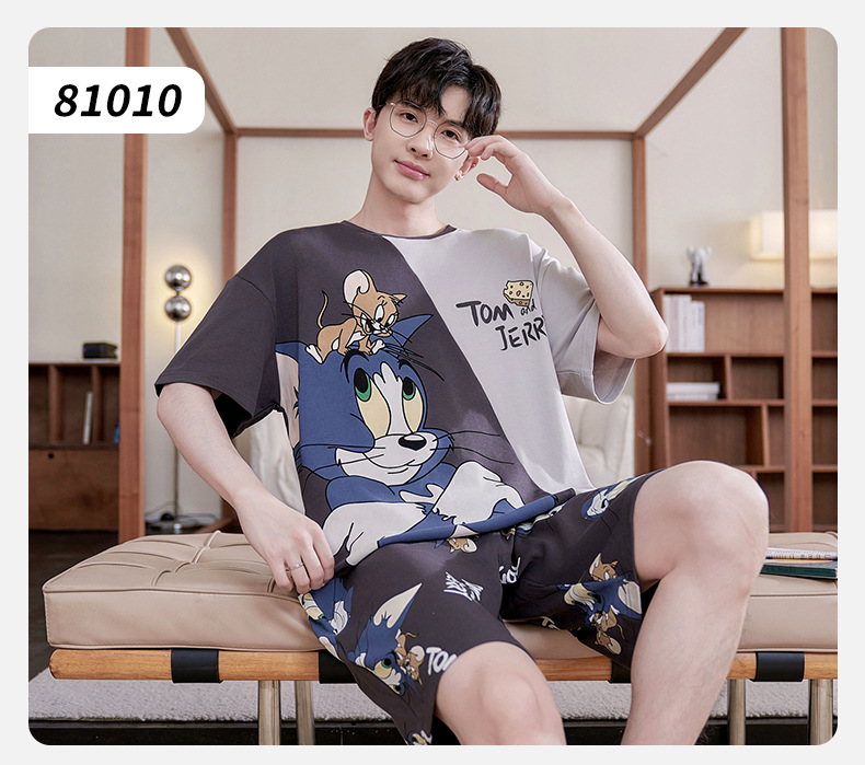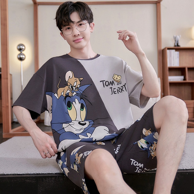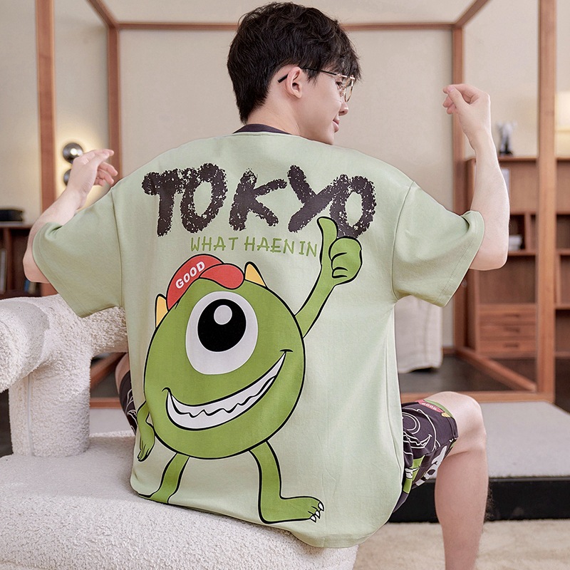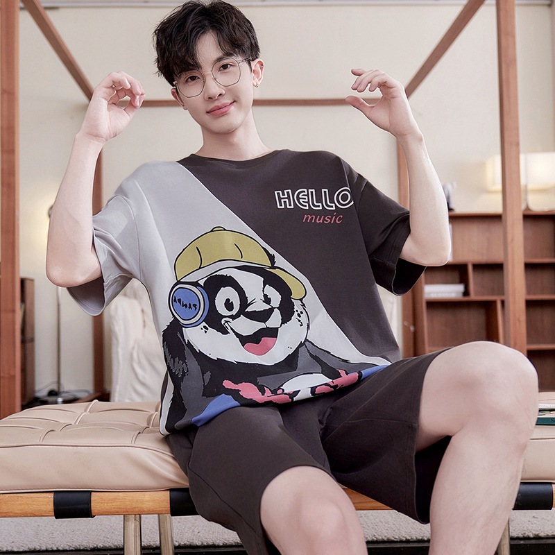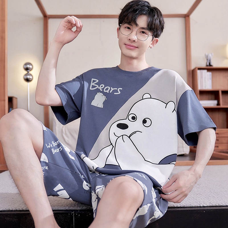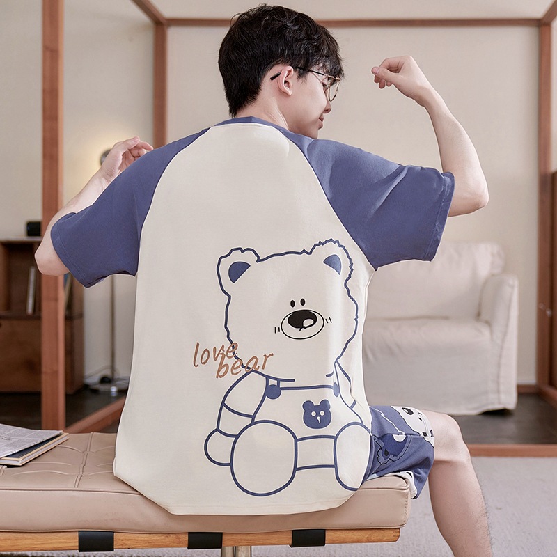 새로운 십대 잠옷 남자 여름 반팔 반바지 홈 옷 세트 얇은 외주 순수 코튼 고등학생스토어 가기