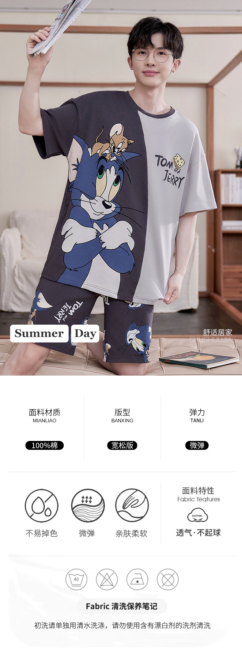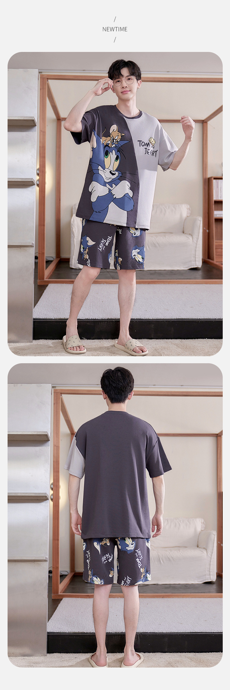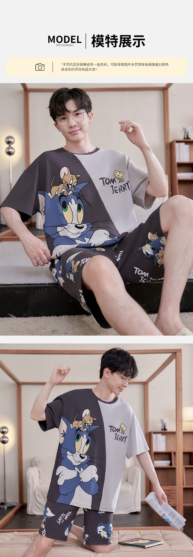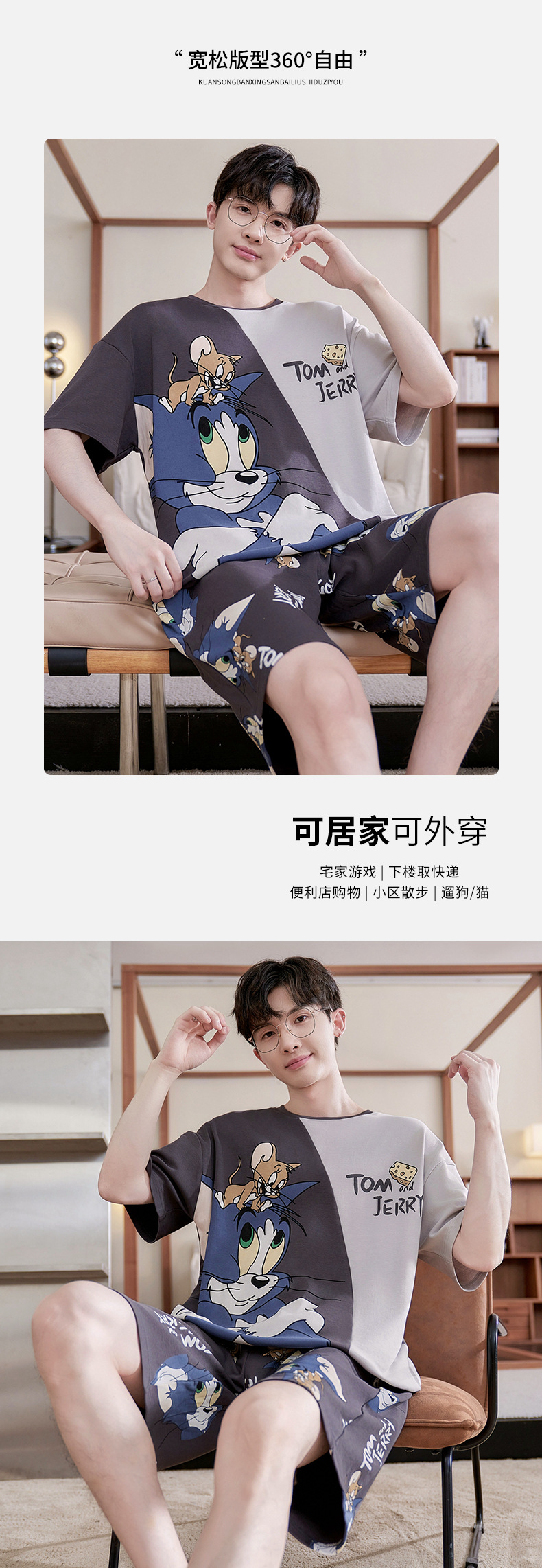 새로운 십대 잠옷 남자 여름 반팔 반바지 홈 옷 세트 얇은 외주 순수 코튼 고등학생스토어 가기