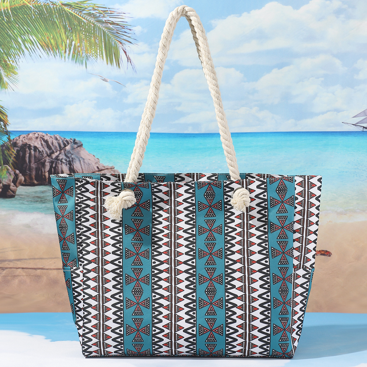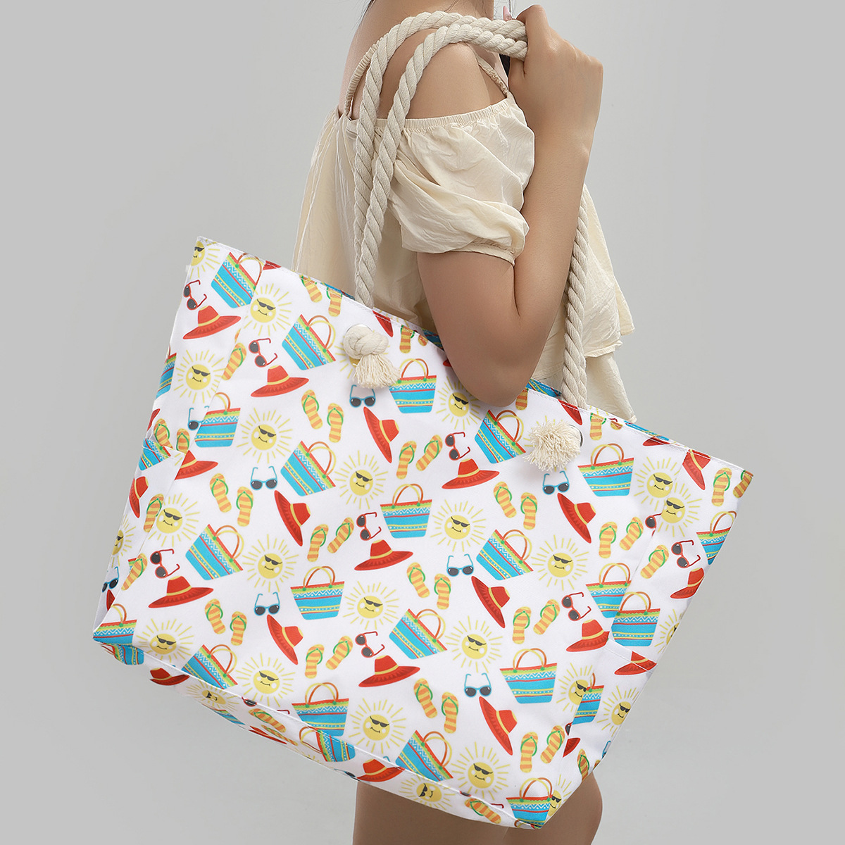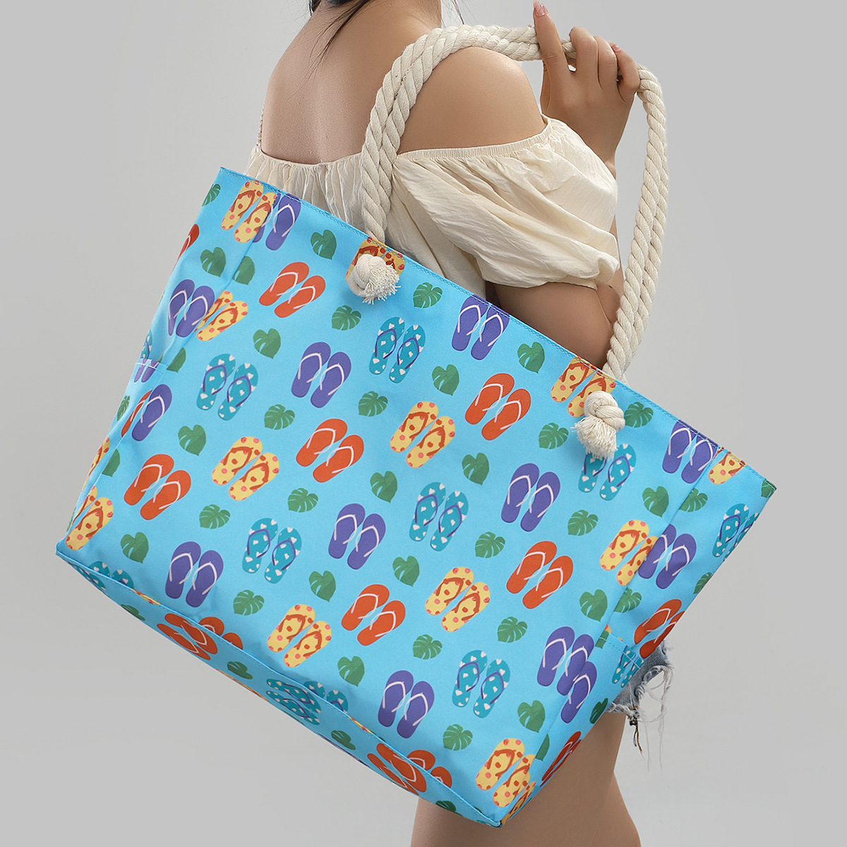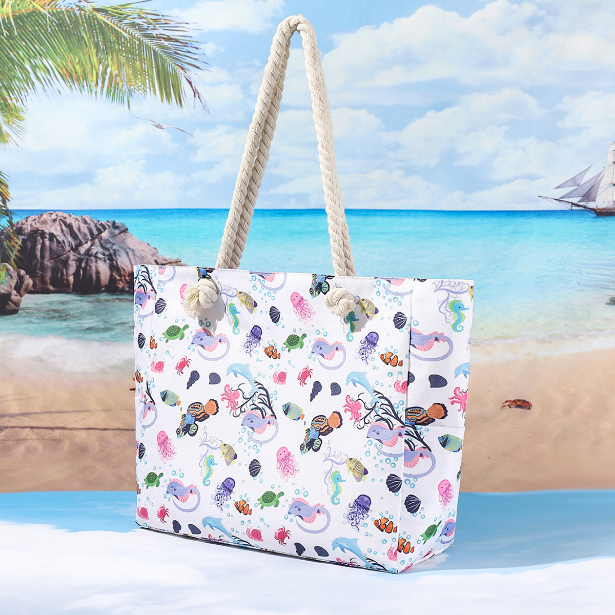 국경 새로운 인쇄 비치 백 대용량 캐주얼 어깨 핸드백 간단한 패션 여름 여행 토트 백