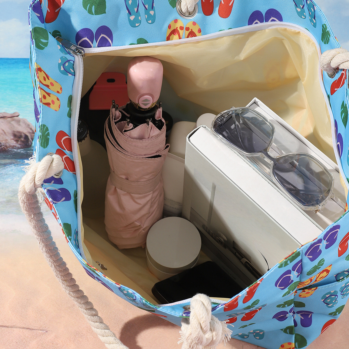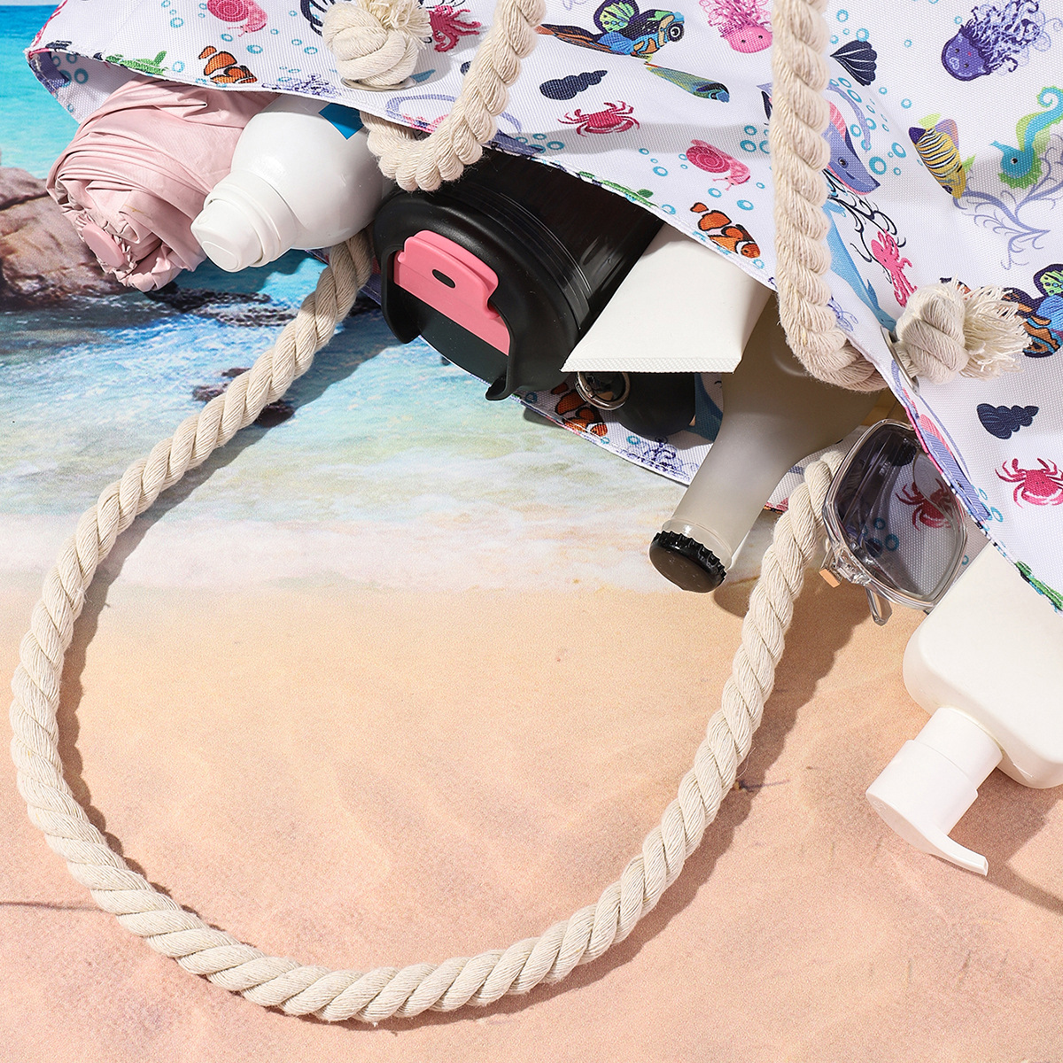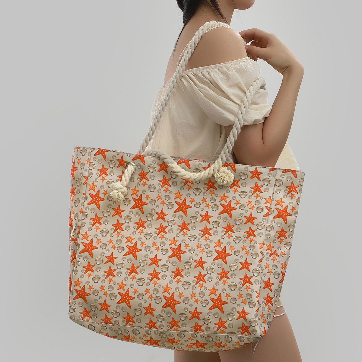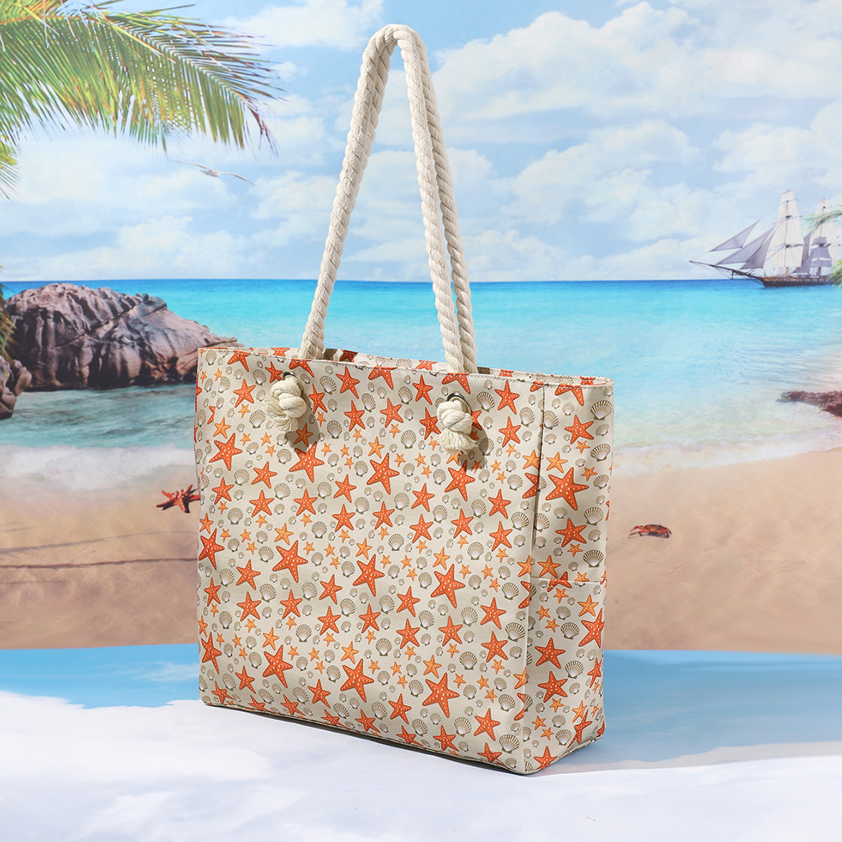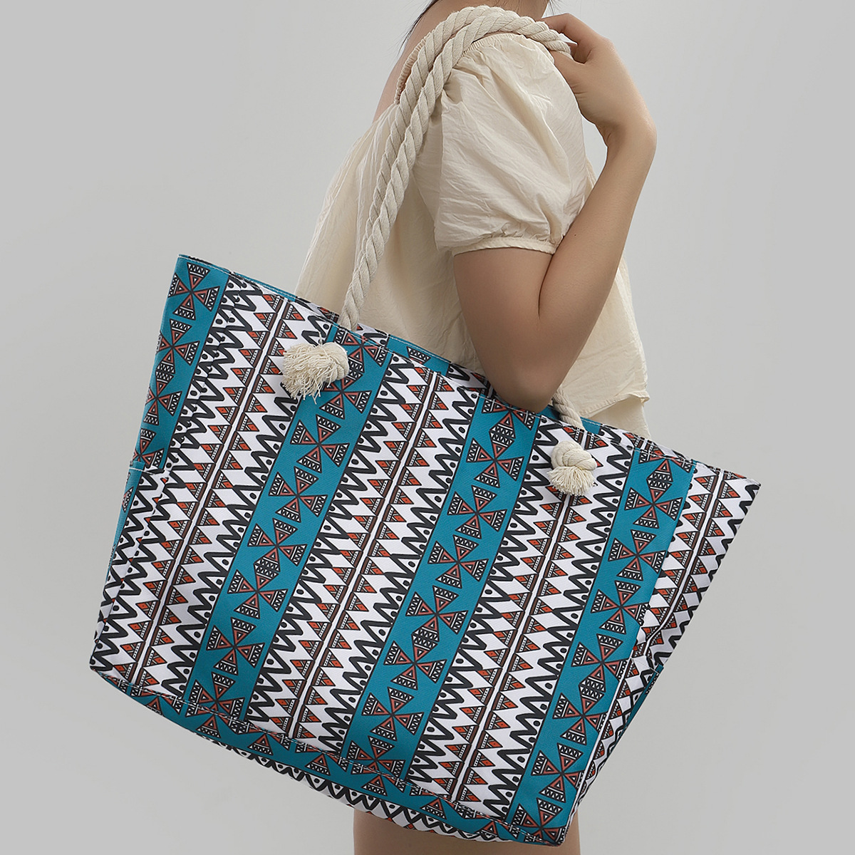 국경 새로운 인쇄 비치 백 대용량 캐주얼 어깨 핸드백 간단한 패션 여름 여행 토트 백