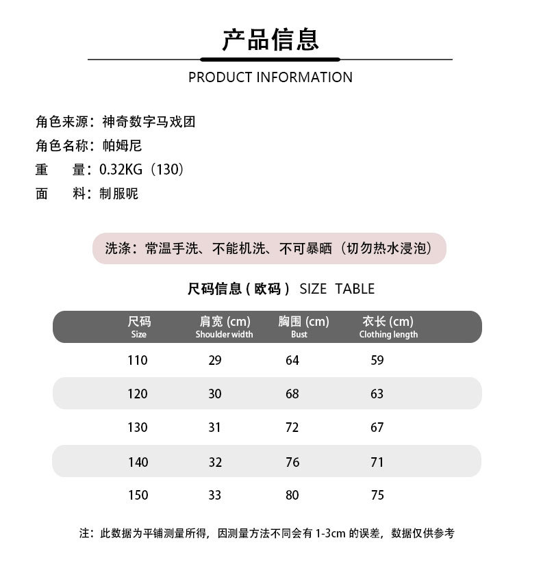 국경 간 매직 넘버 서커스 Pamni Pomni 어린이 원피스 코스프레 Clown Cos 세트스토어 가기