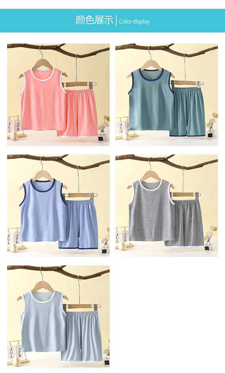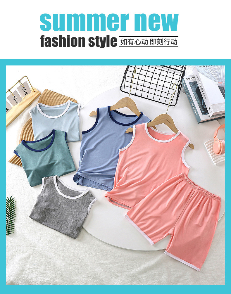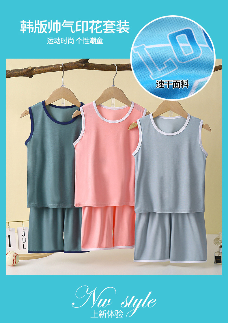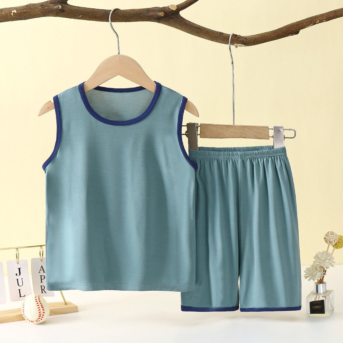 어린이 모달 A급 홈웨어 세트, 얇은 남아 여아용 민소매 아이스 실크 잠옷, 여아용 외출복으로도 착용 가능