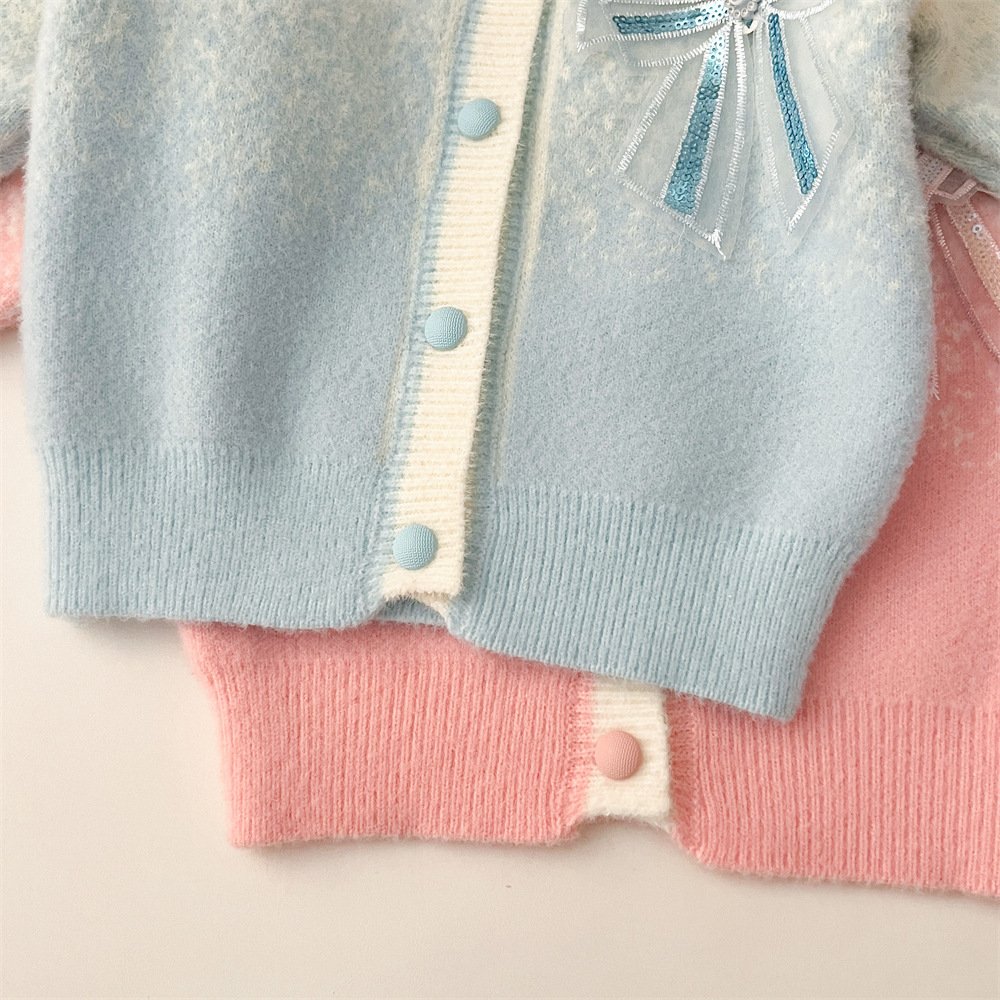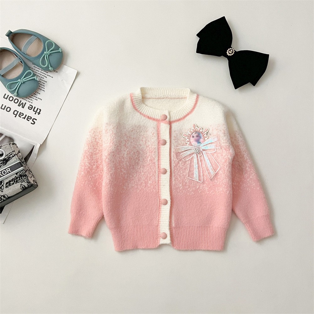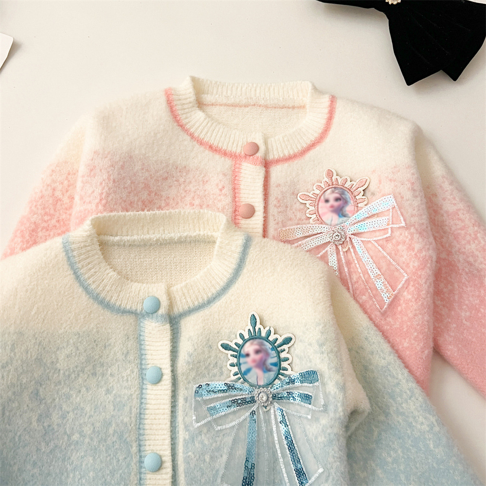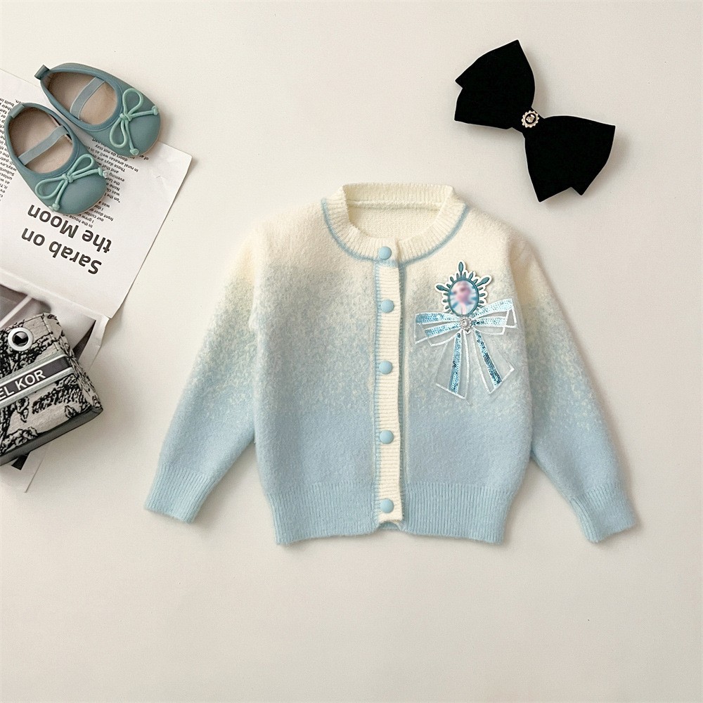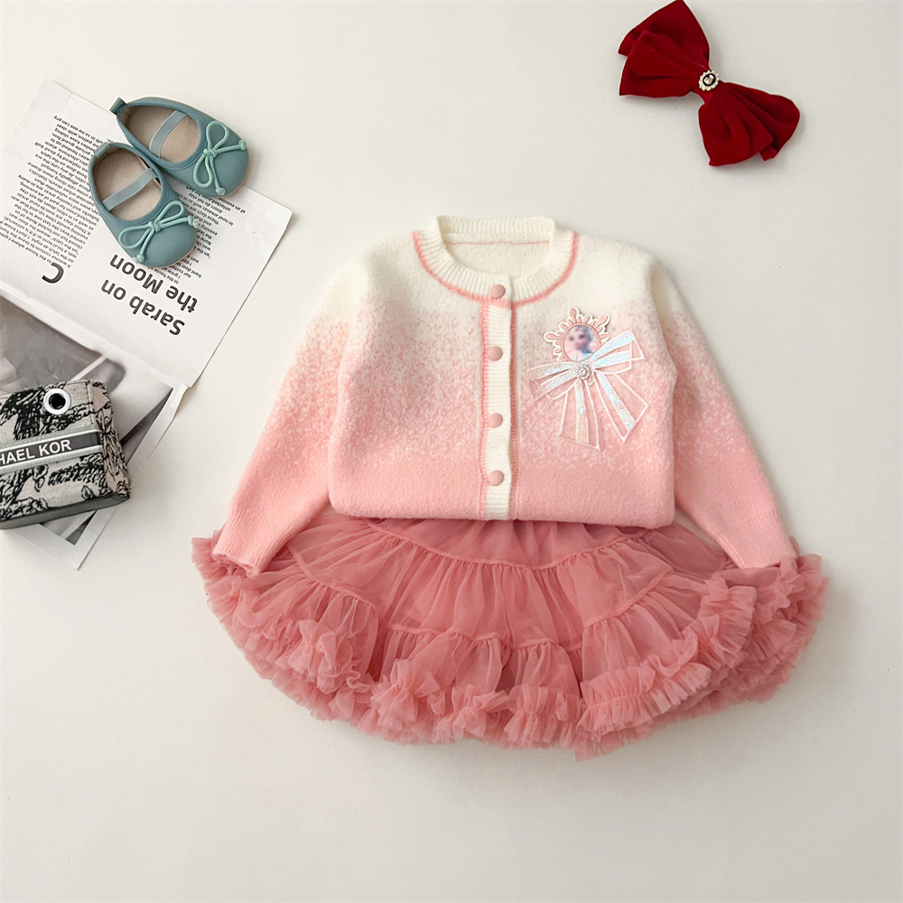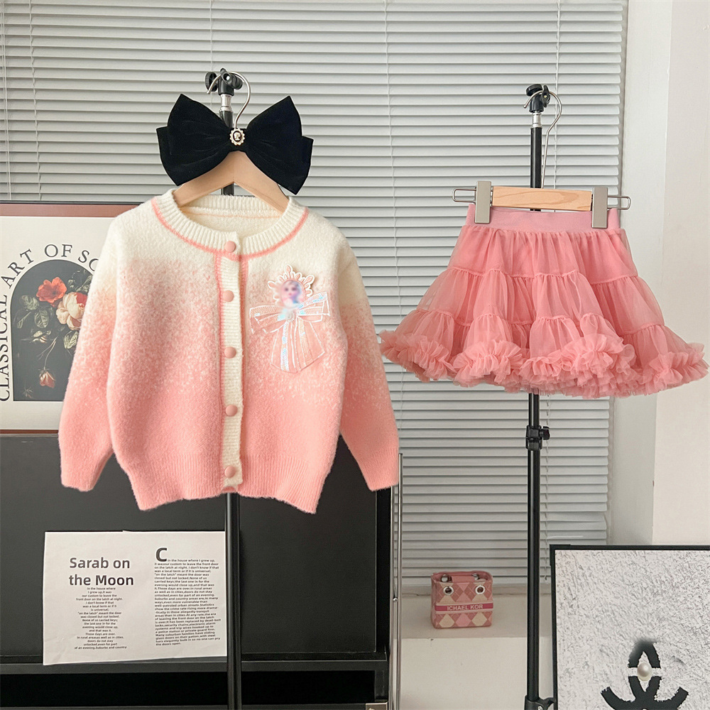 2024 가을과 겨울 새로운 교수형 염색 스웨터 코트 투투 스커트 세트 중소 어린이 그라디언트 공주 아이샤 스웨터 세트