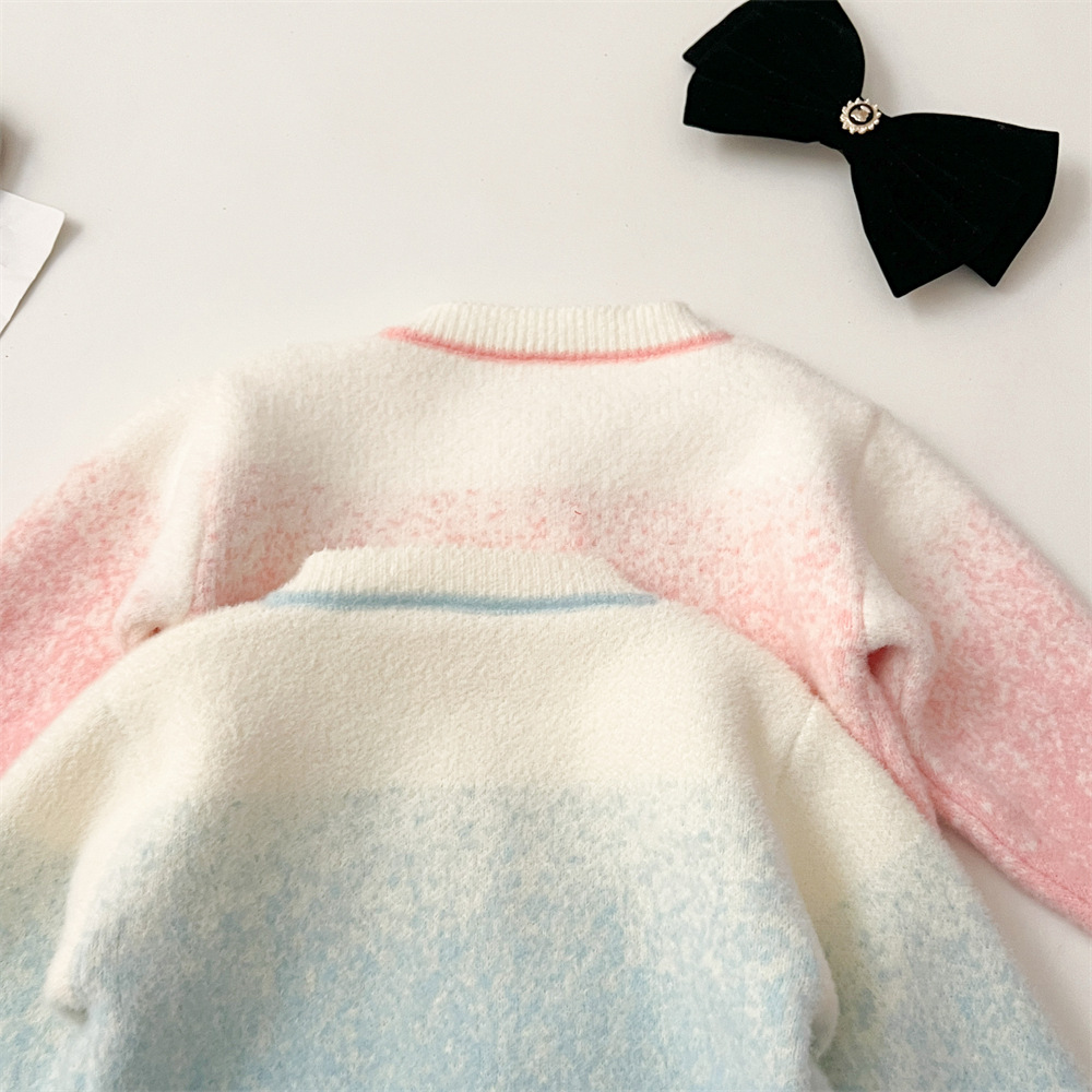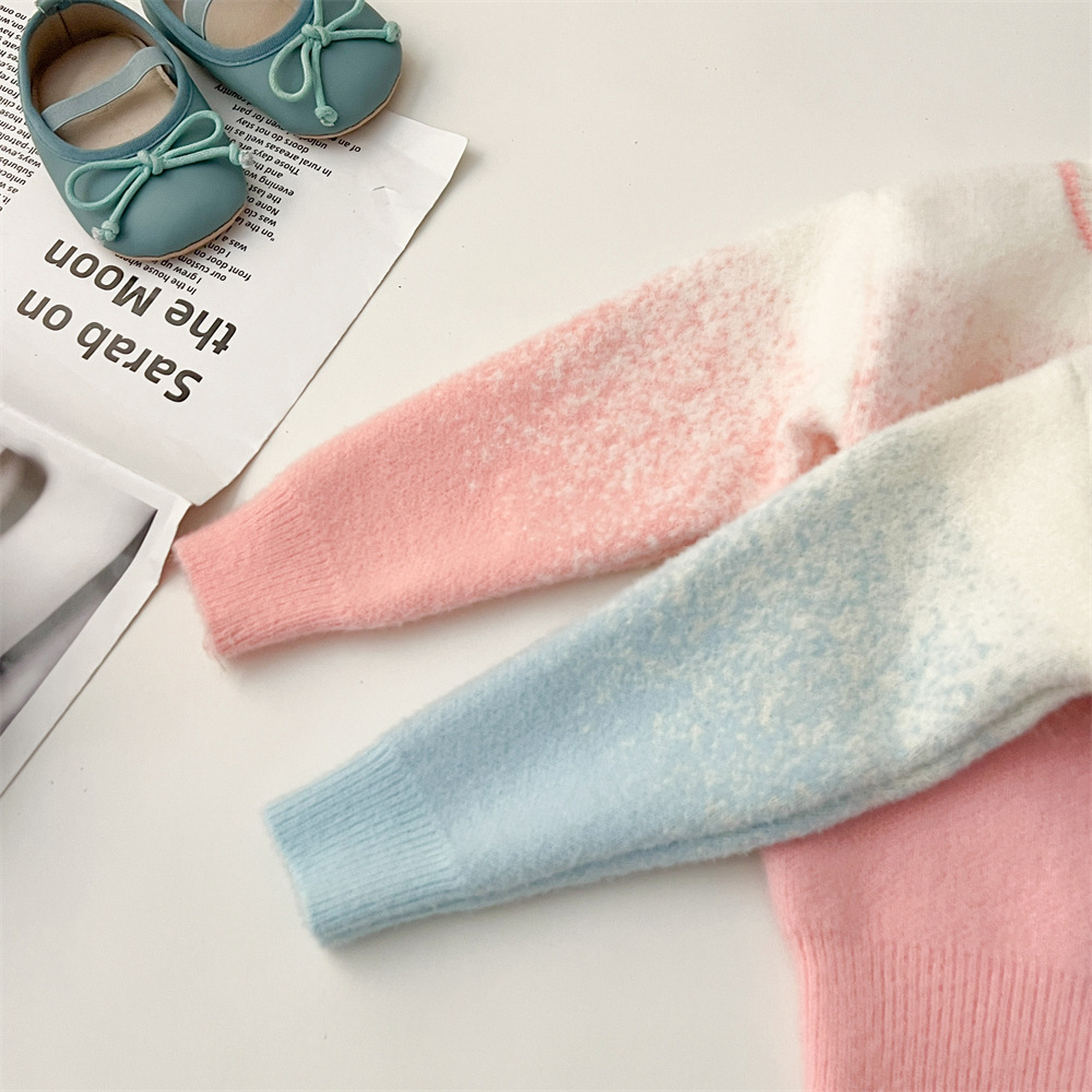 2024 가을과 겨울 새로운 교수형 염색 스웨터 코트 투투 스커트 세트 중소 어린이 그라디언트 공주 아이샤 스웨터 세트스토어 가기