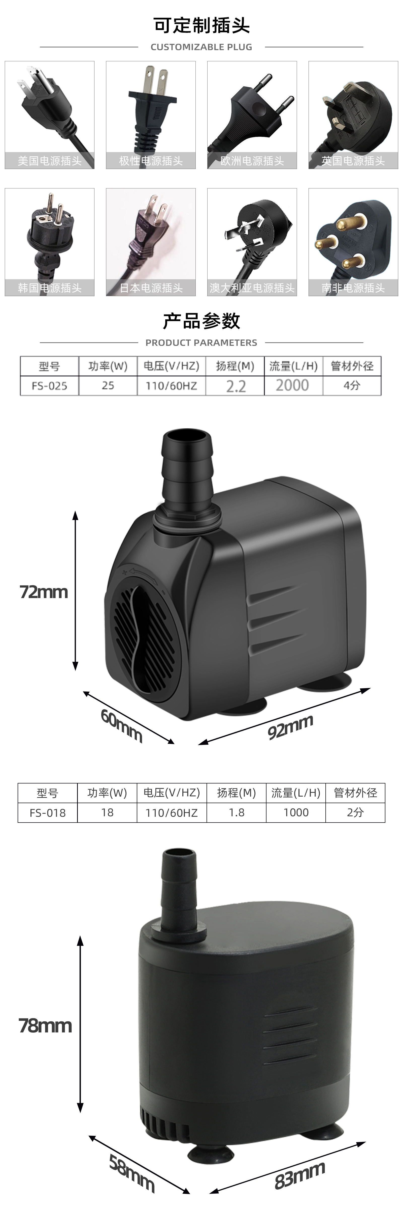 • 미국 표준 3 플러그 25w 워터 펌프 + 이중 스프레이 범용 튜브