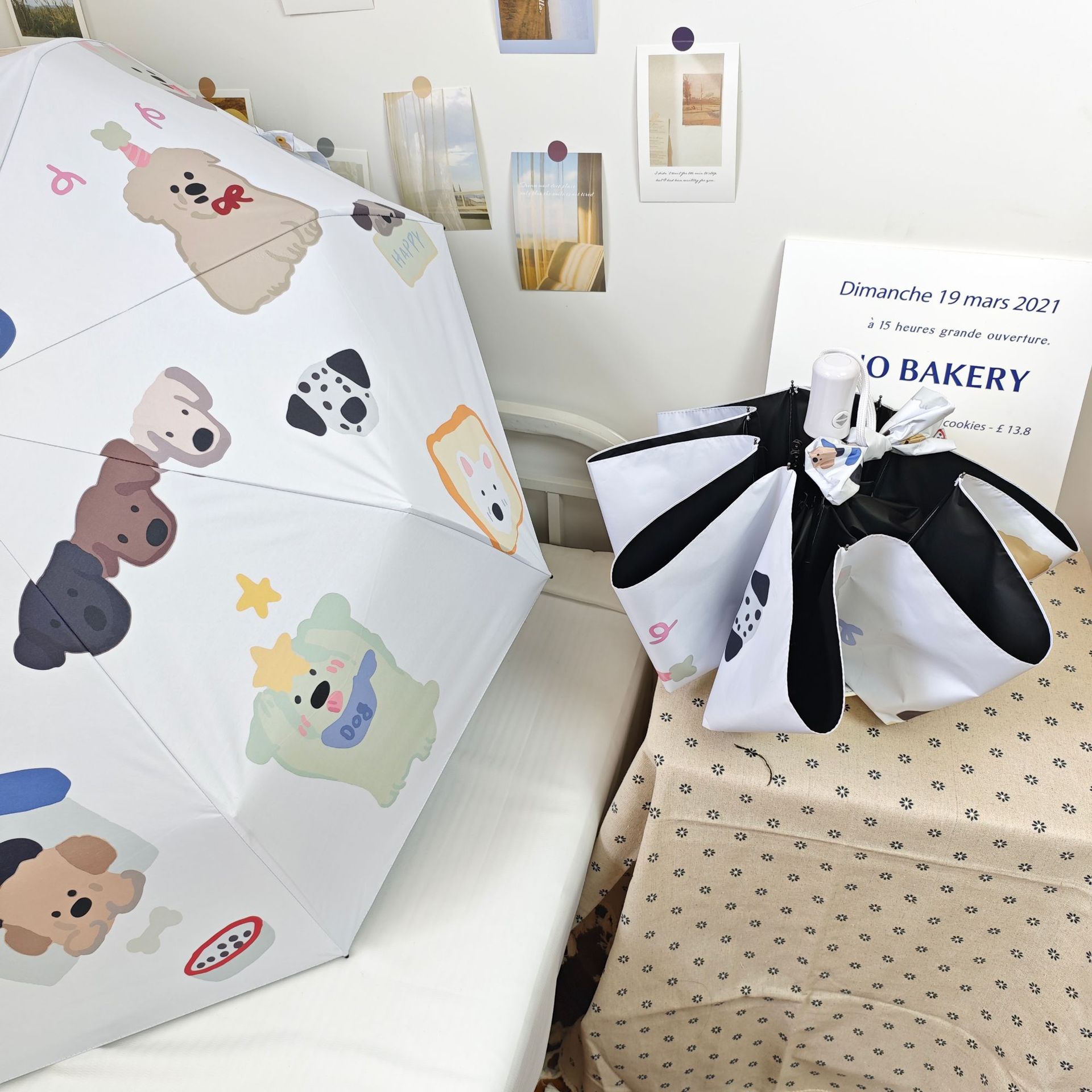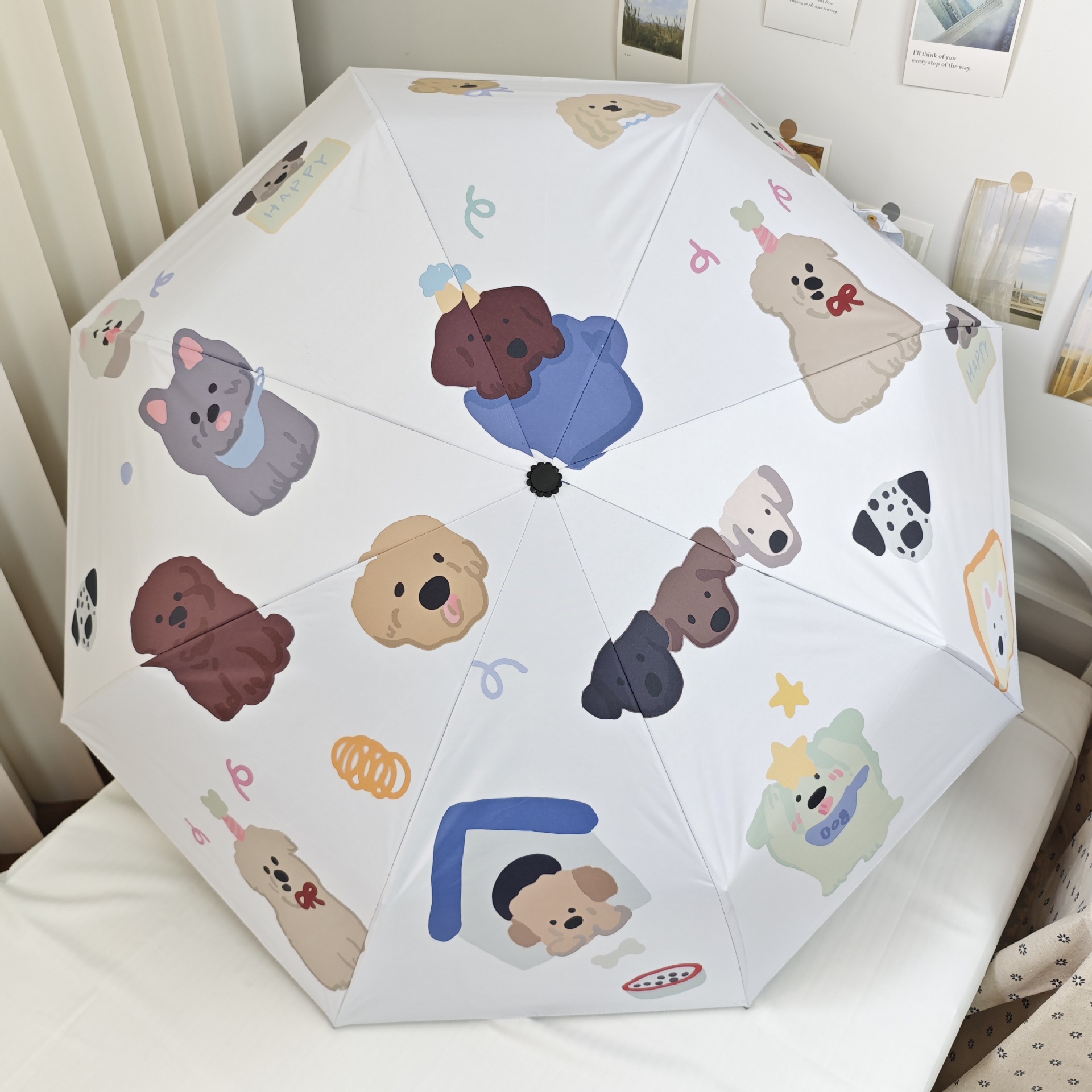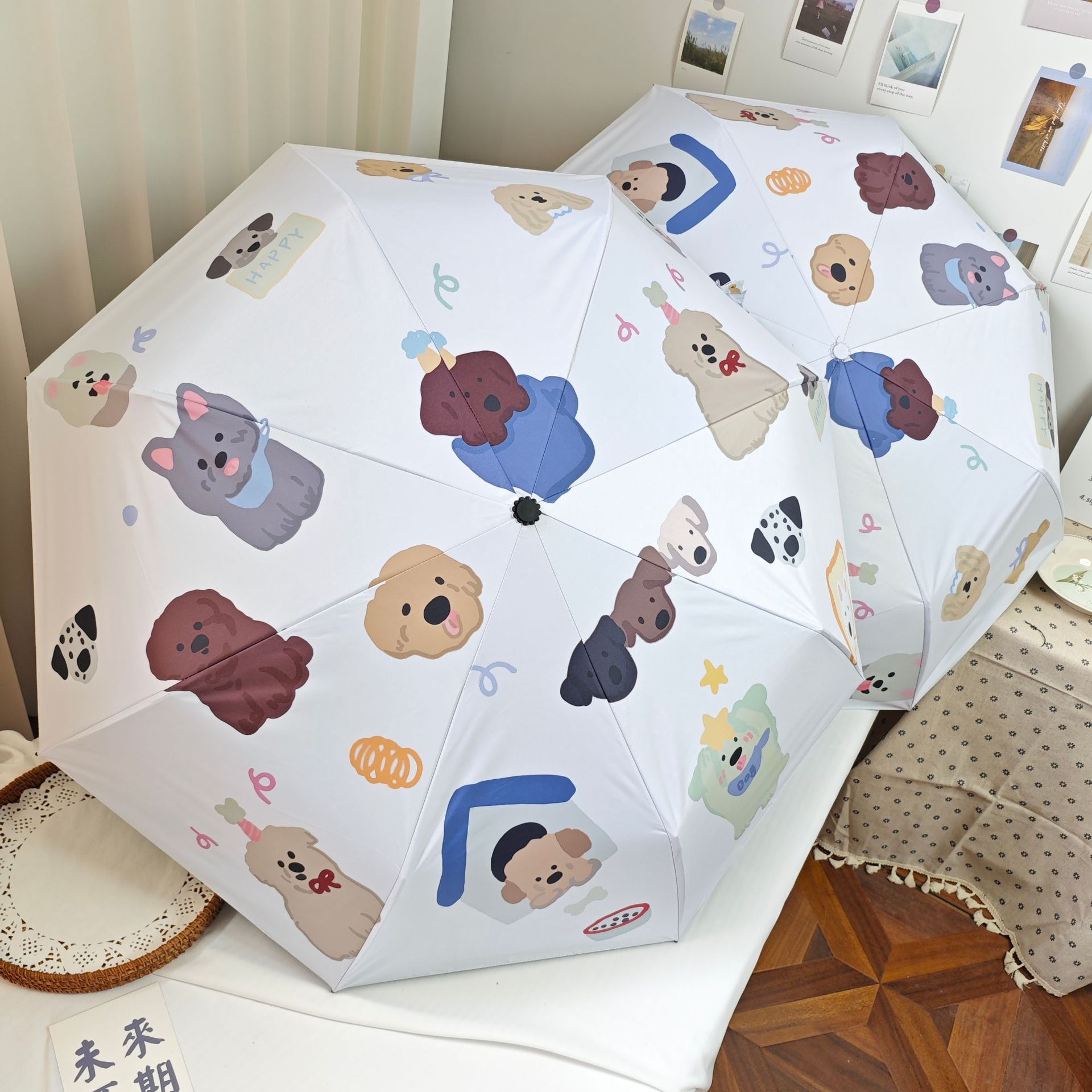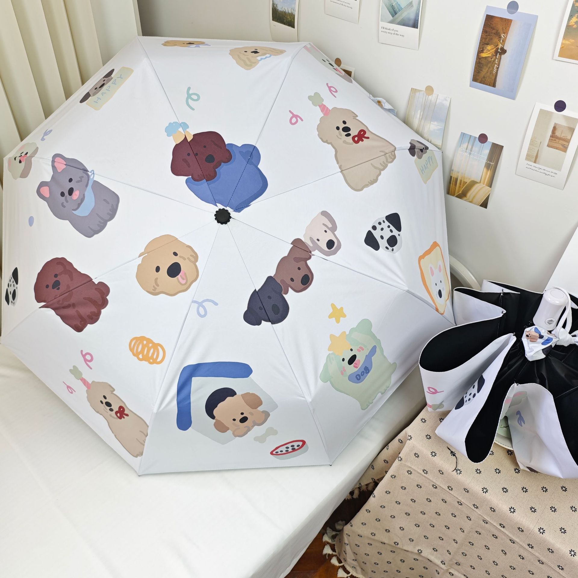 귀여운 강아지 만화 접는 우산 여성의 완전 자동 검은 고무 맑고 비 이중 목적 우산 선 스크린 자외선 보호 햇살 우산스토어 가기