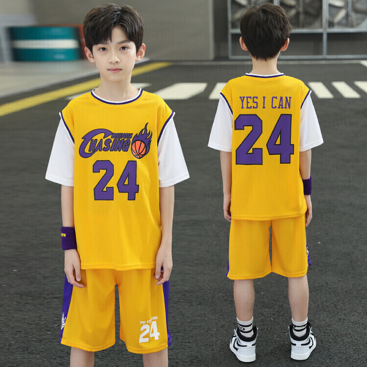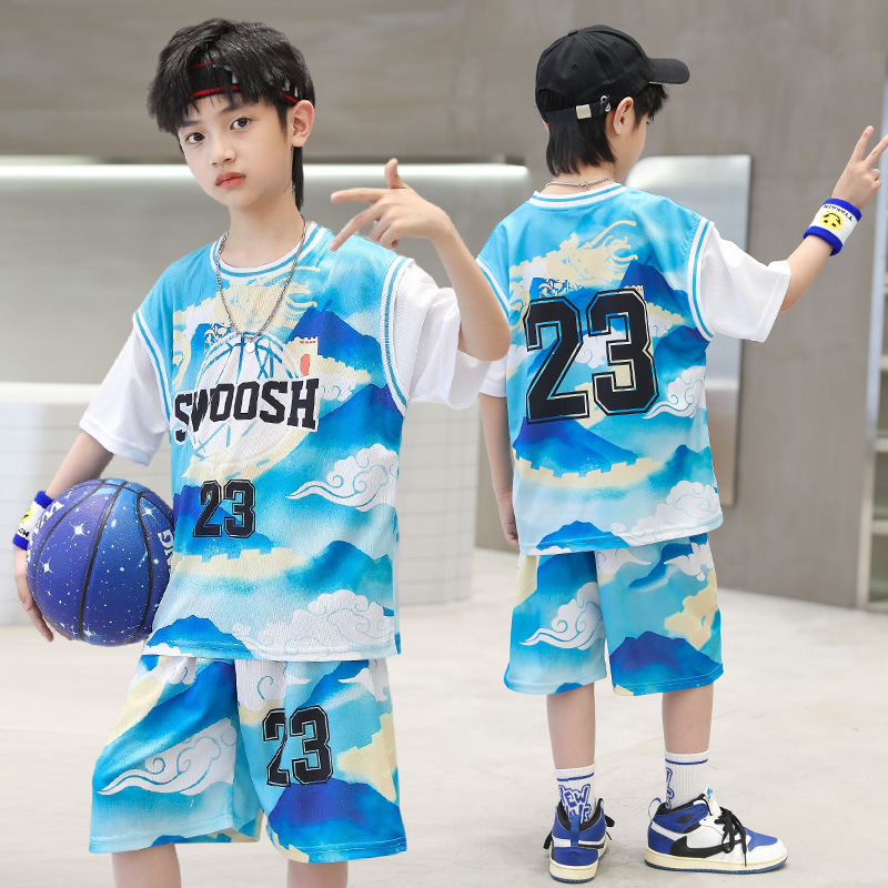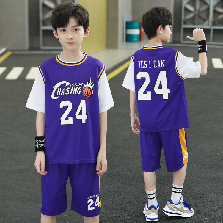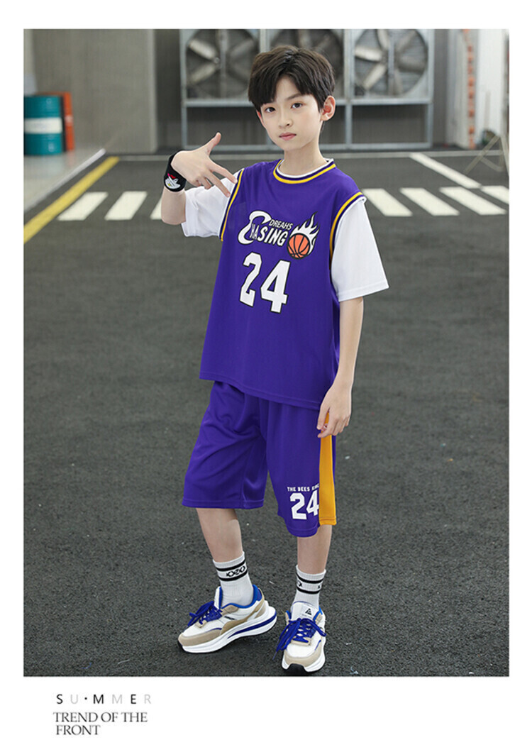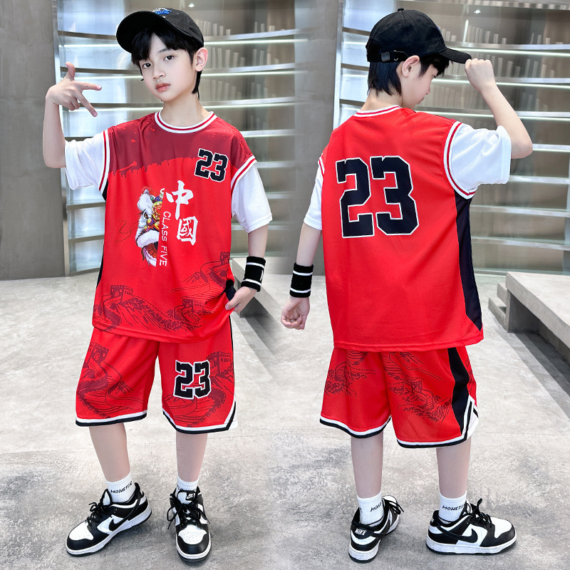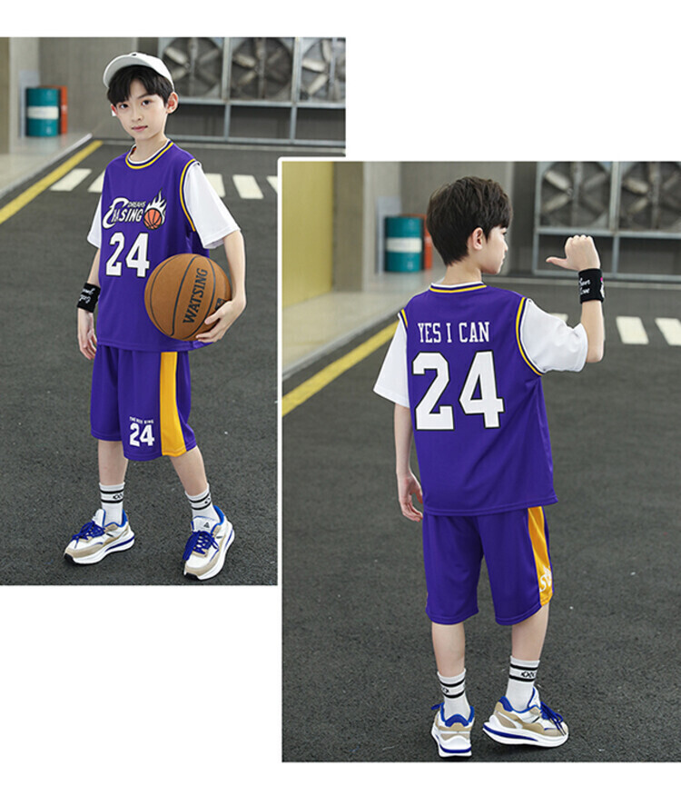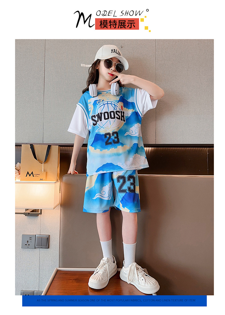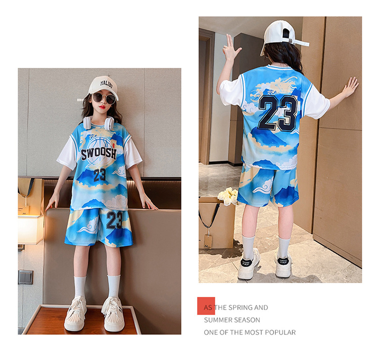 어린이 반팔 세트 2024 새 여름 중대형 어린이 농구 옷 스포츠 레저 여름 옷 소년 소녀 훈련 옷스토어 가기