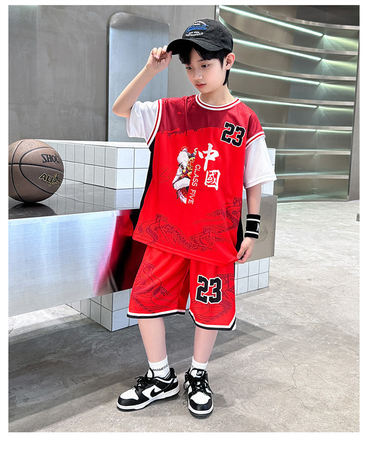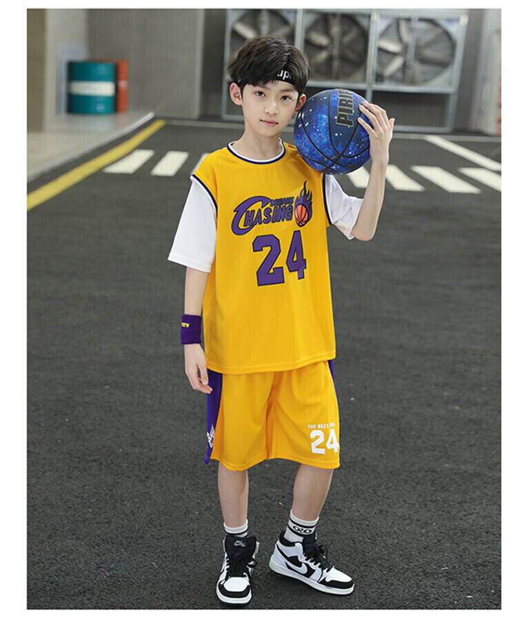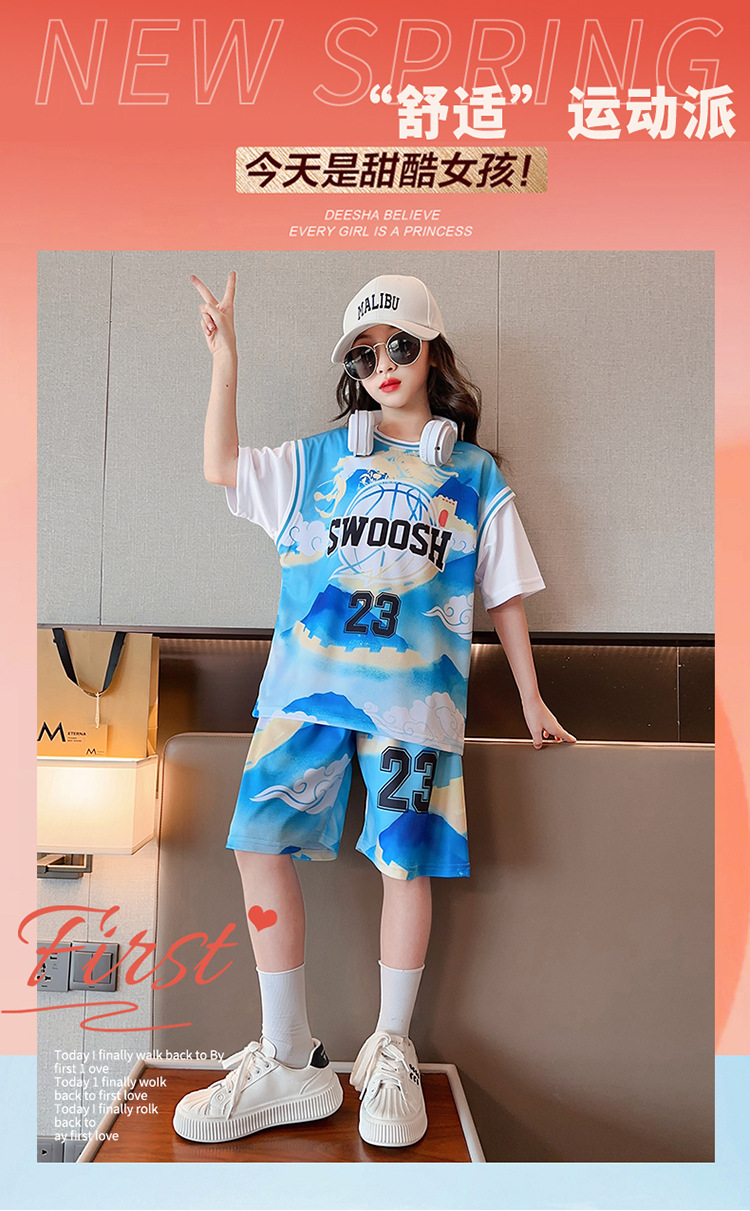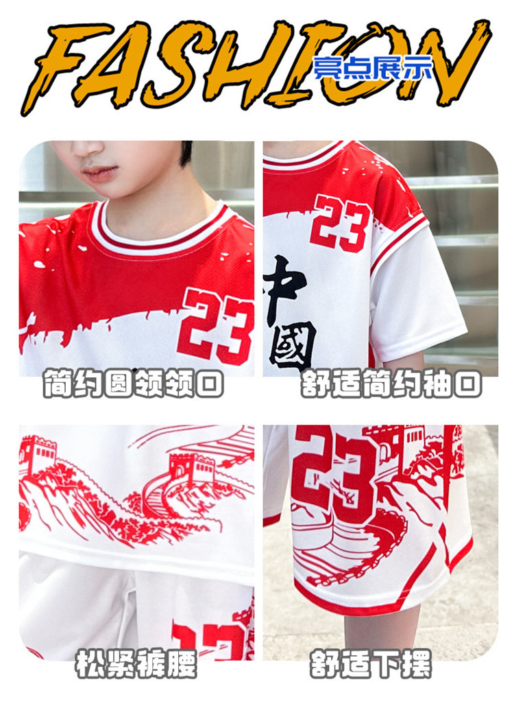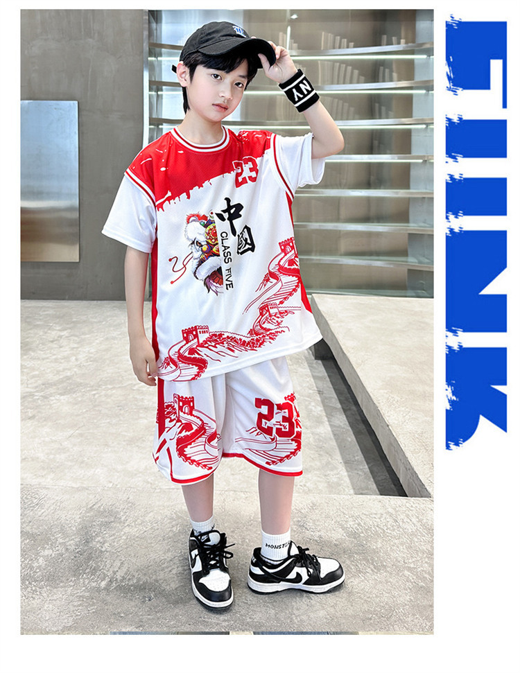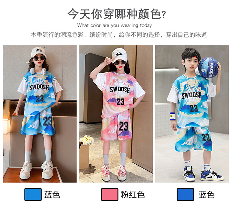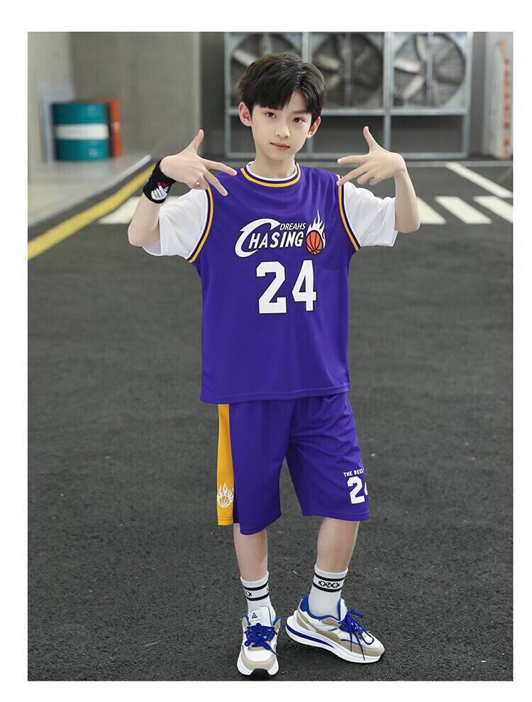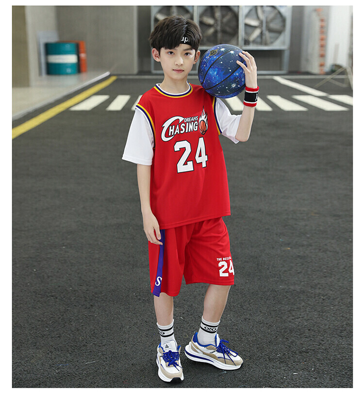 어린이 반팔 세트 2024 새 여름 중대형 어린이 농구 옷 스포츠 레저 여름 옷 소년 소녀 훈련 옷스토어 가기