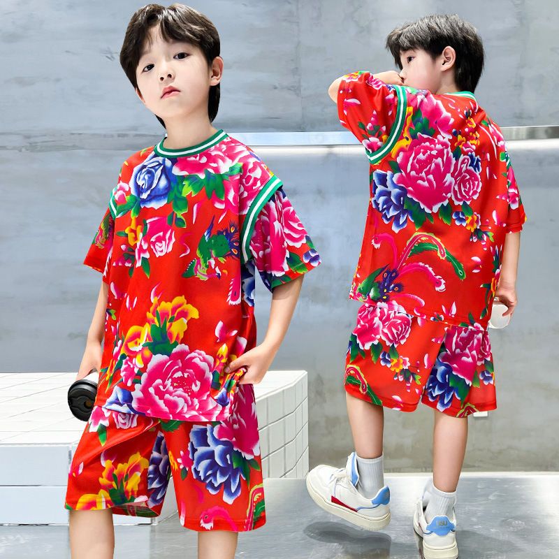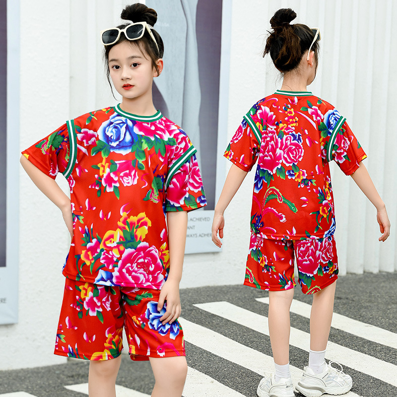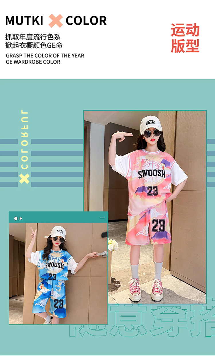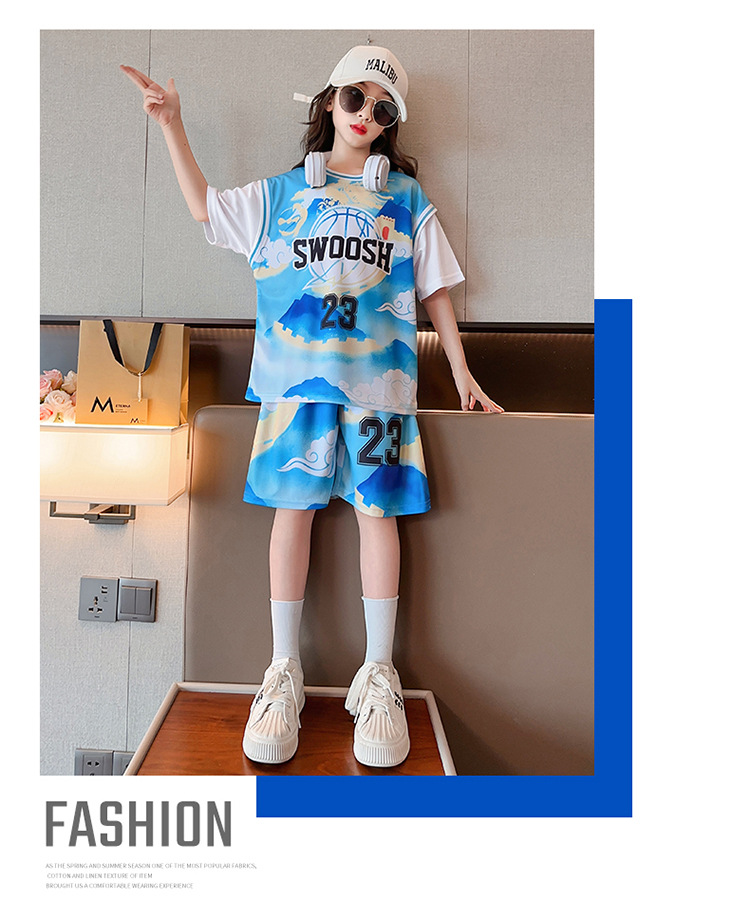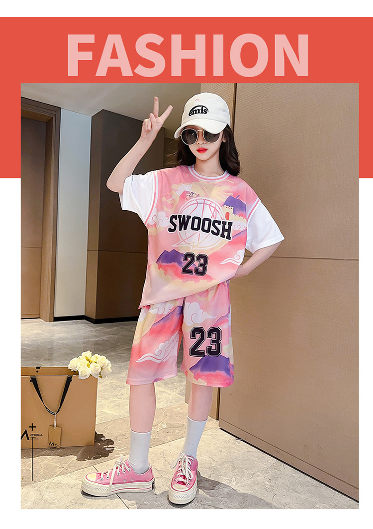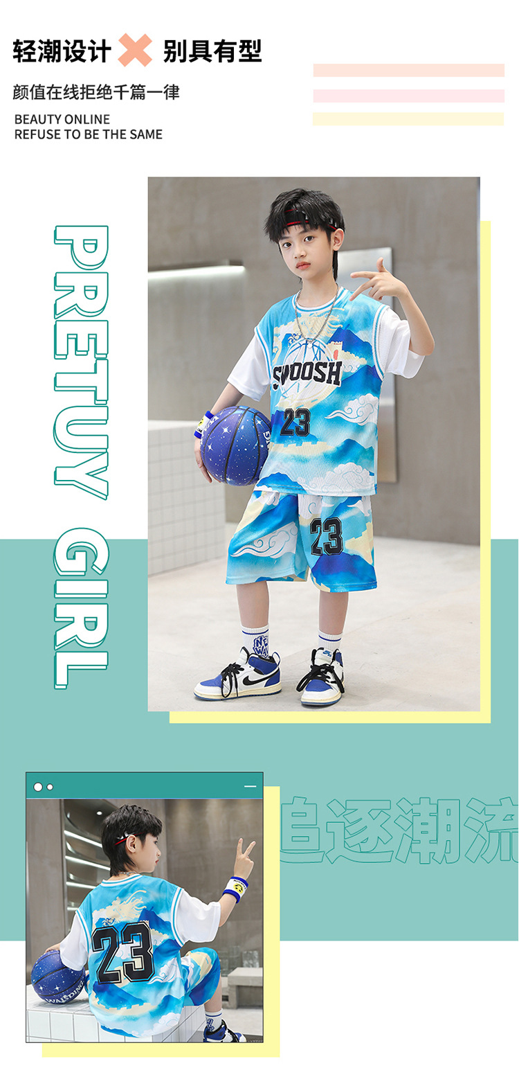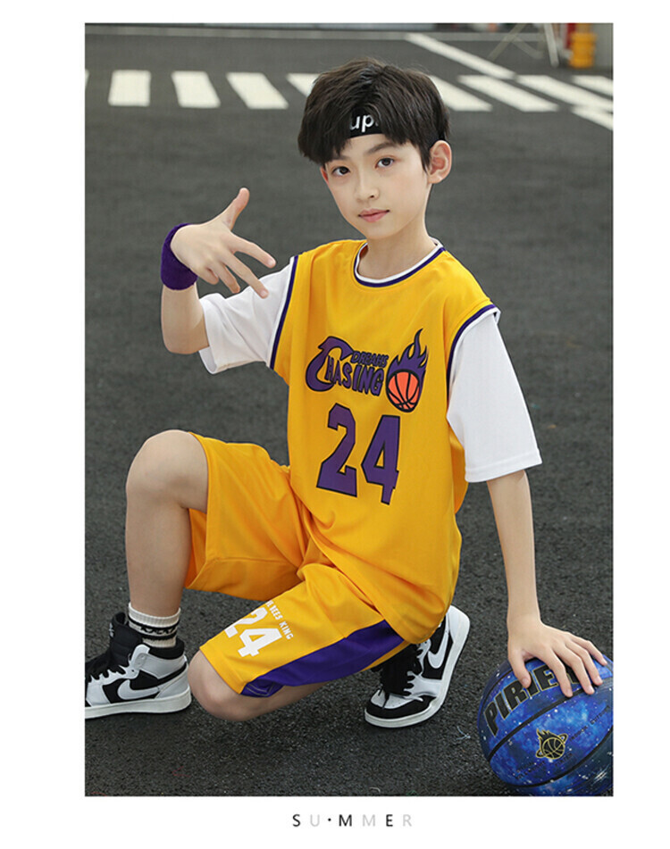 어린이 반팔 세트 2024 새 여름 중대형 어린이 농구 옷 스포츠 레저 여름 옷 소년 소녀 훈련 옷스토어 가기