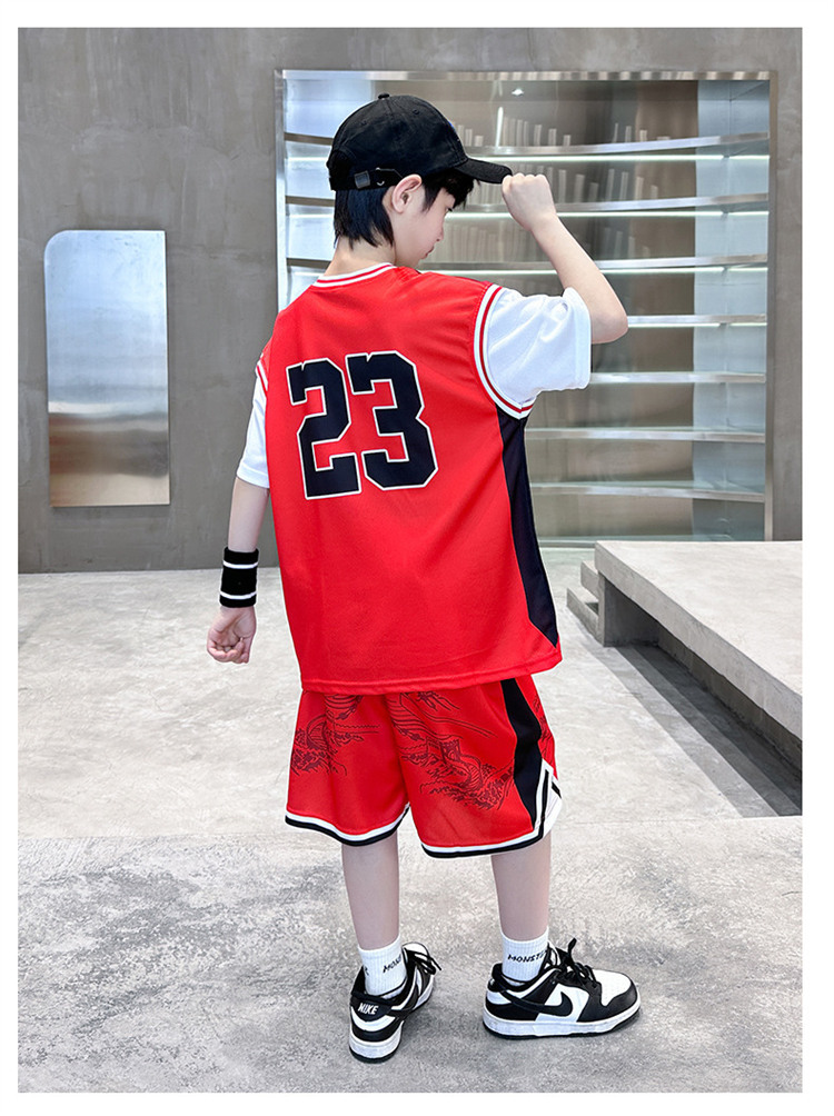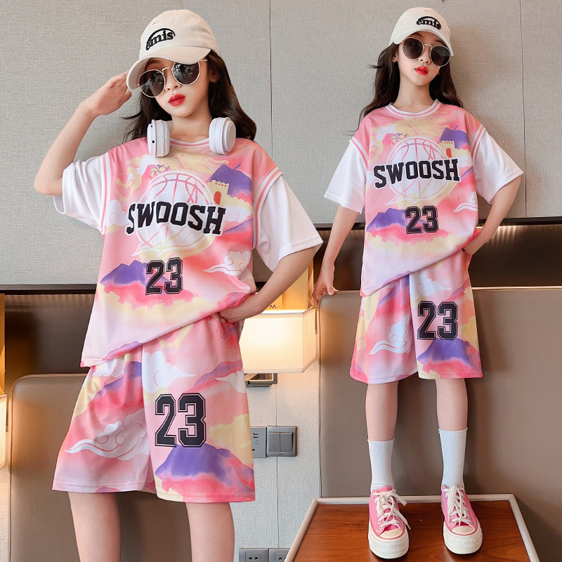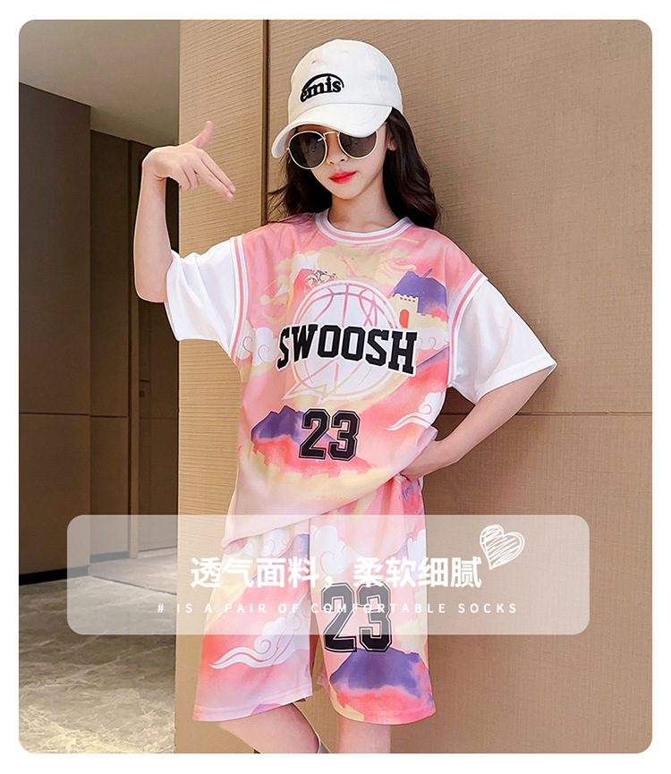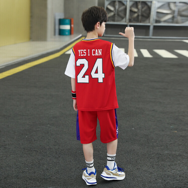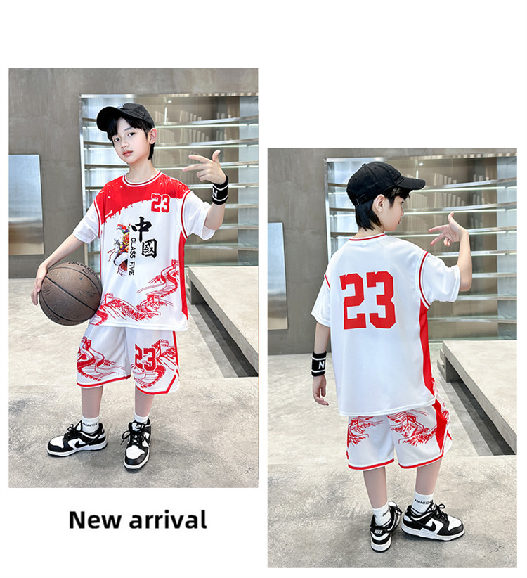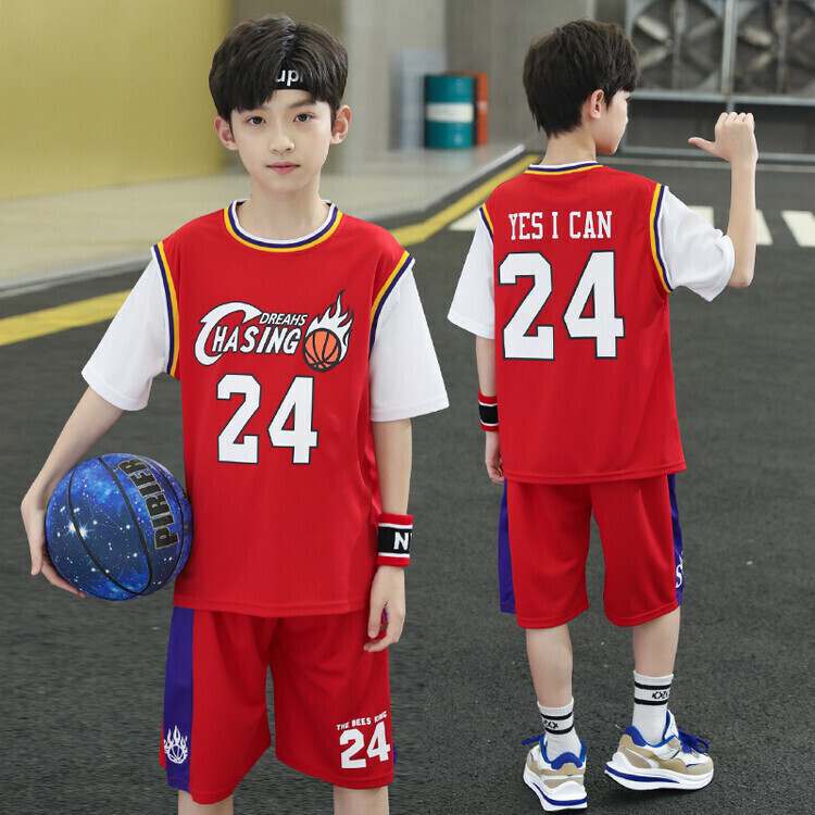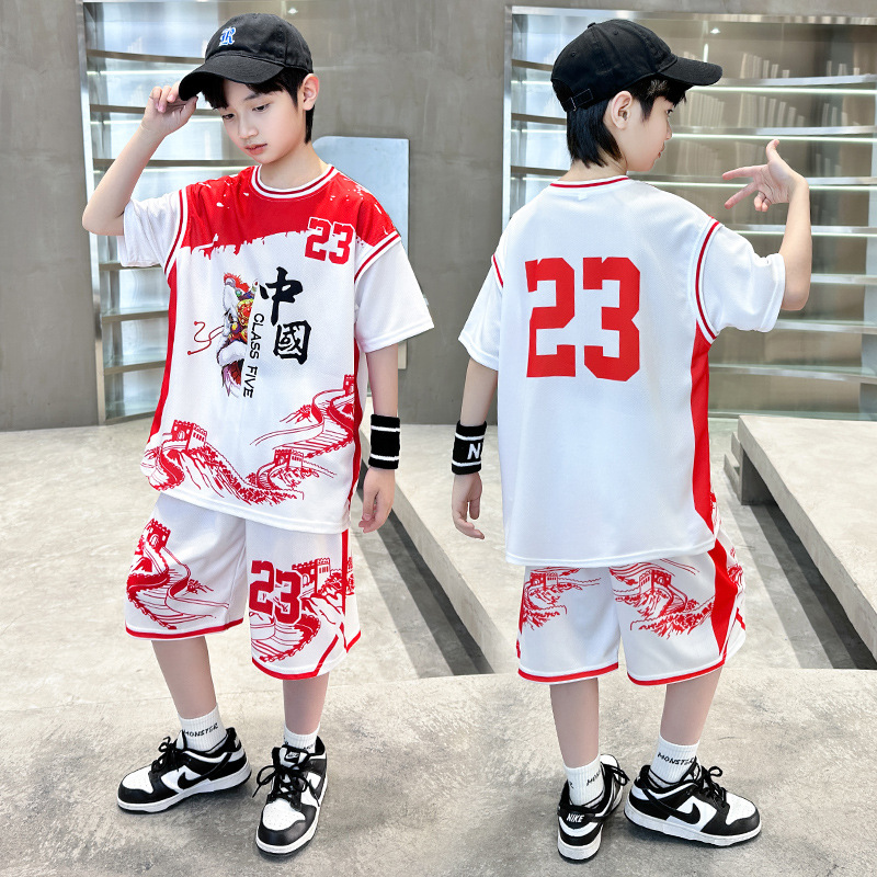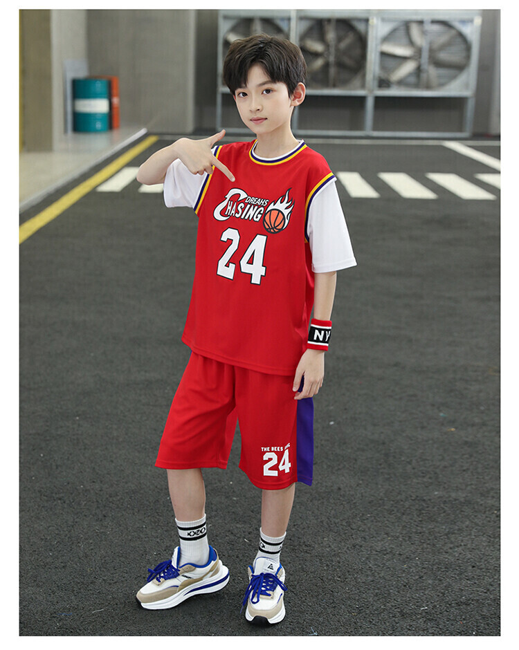 어린이 반팔 세트 2024 새 여름 중대형 어린이 농구 옷 스포츠 레저 여름 옷 소년 소녀 훈련 옷