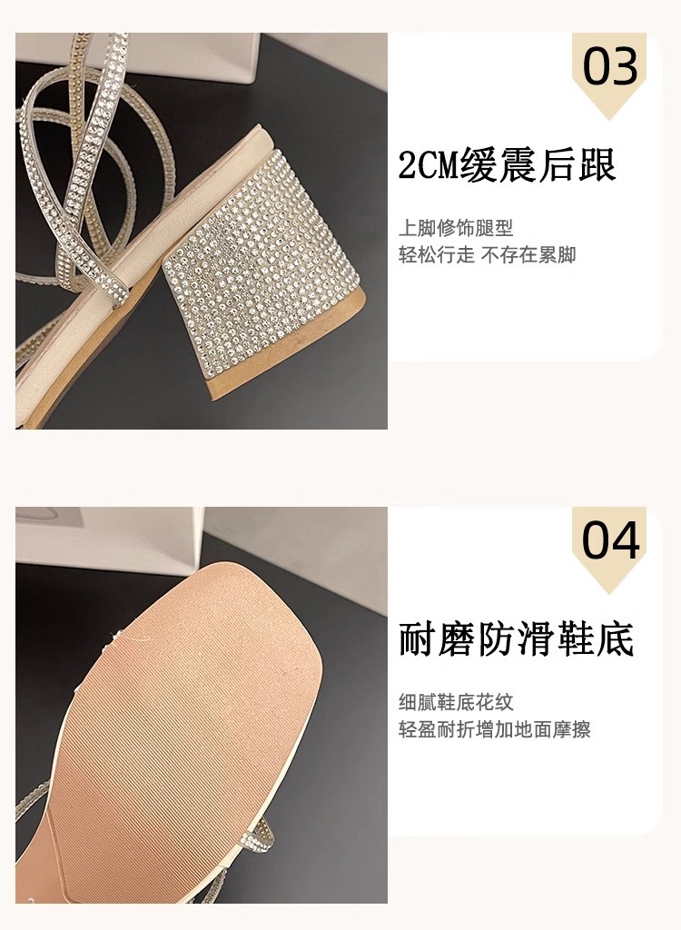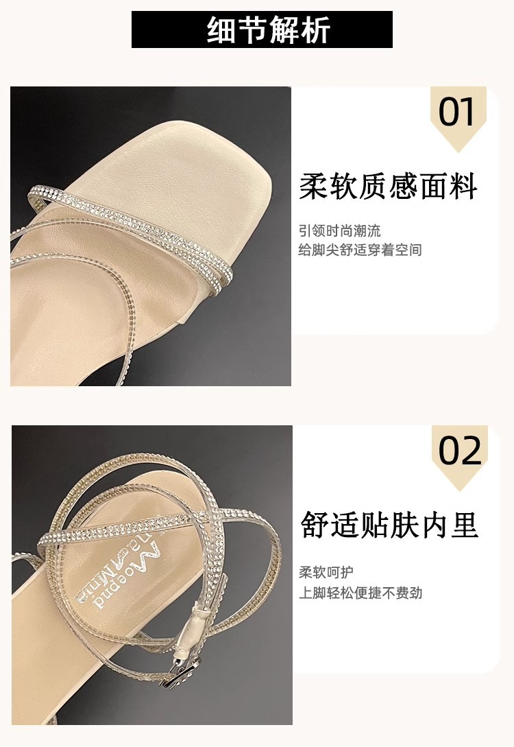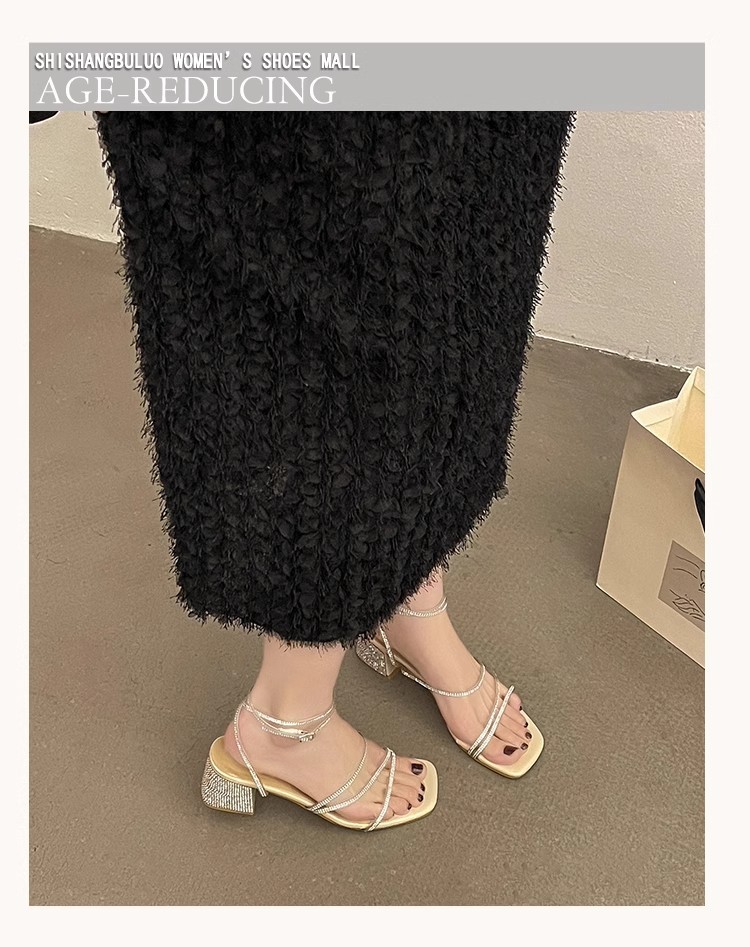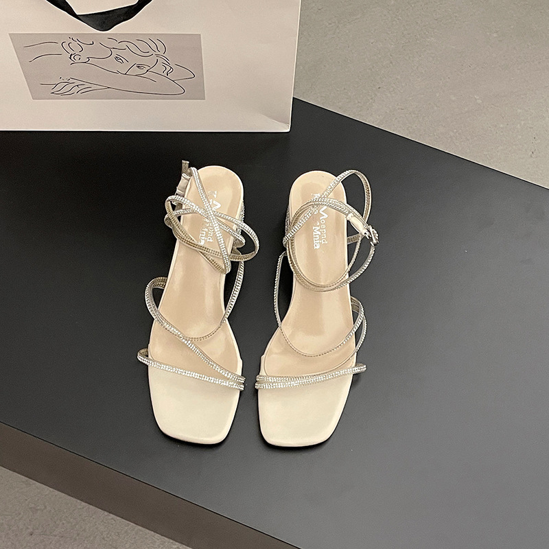 페어리 스타일 오픈 발가락 버클 매일 라인스톤 젠틀 샌들 여성 봄/여름 2024 새로운 한국 스타일 패션 로마 신발스토어 가기