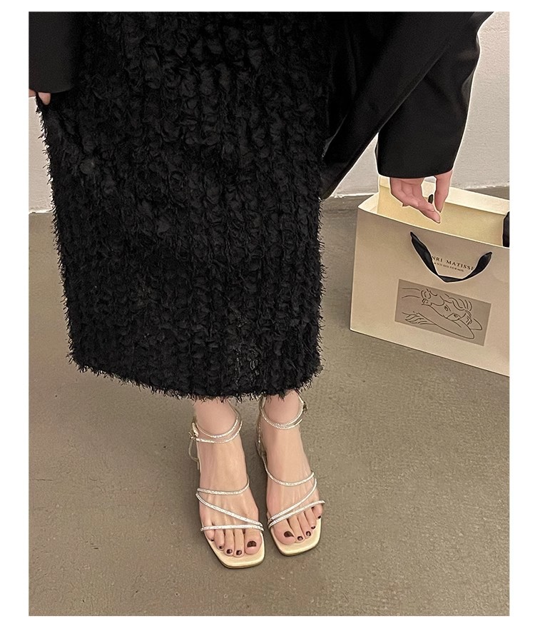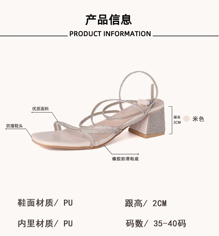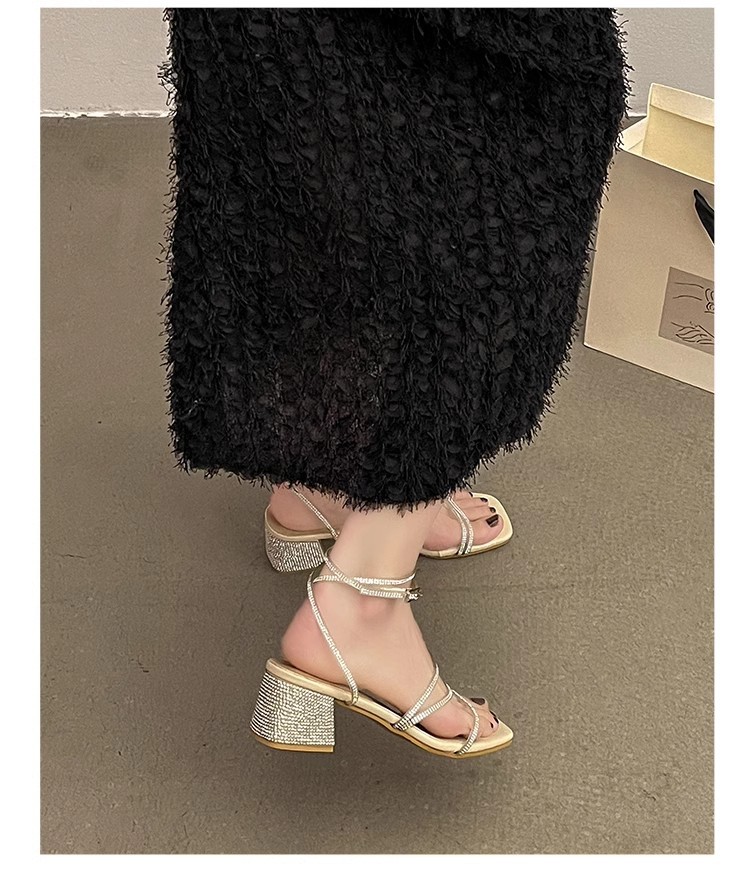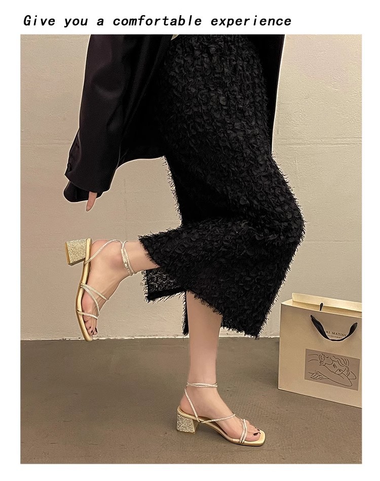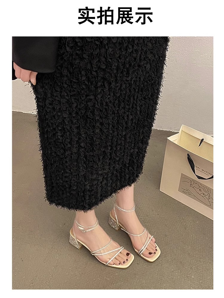 페어리 스타일 오픈 발가락 버클 매일 라인스톤 젠틀 샌들 여성 봄/여름 2024 새로운 한국 스타일 패션 로마 신발스토어 가기