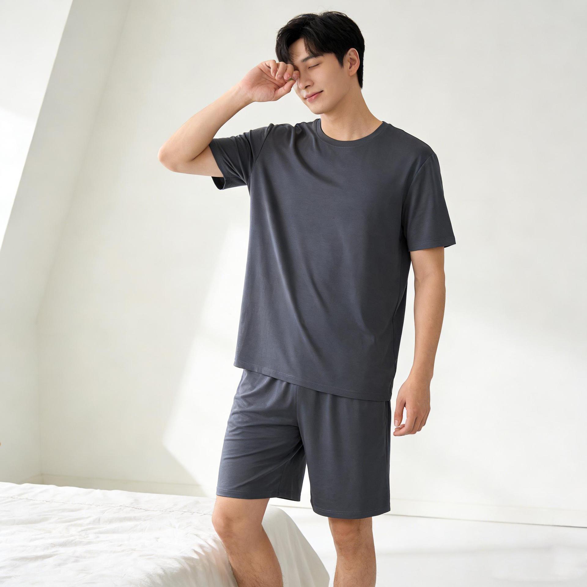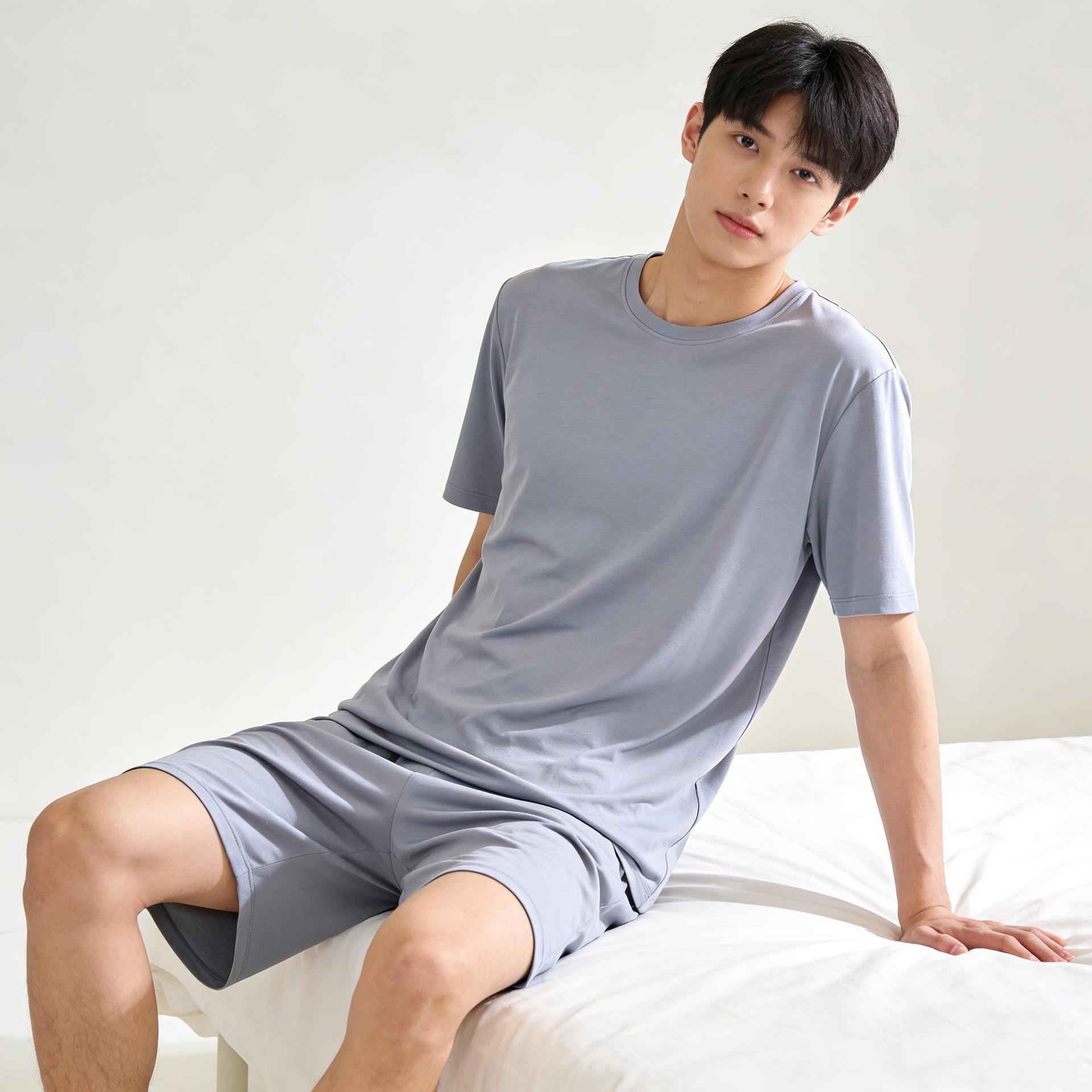 시원하고 부드러운 남성 여름 반팔 반바지 파자마 쇼핑몰 공급 느슨하고 편안한 가정용 옷은 외부에서 착용 할 수 있습니다.