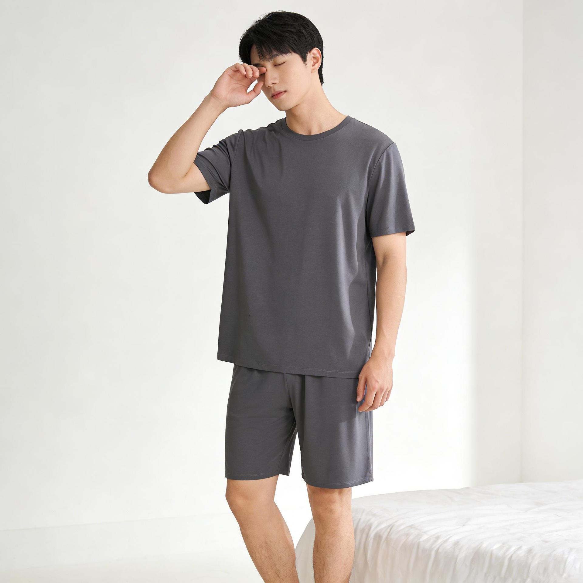 시원하고 부드러운 남성 여름 반팔 반바지 파자마 쇼핑몰 공급 느슨하고 편안한 가정용 옷은 외부에서 착용 할 수 있습니다.스토어 가기