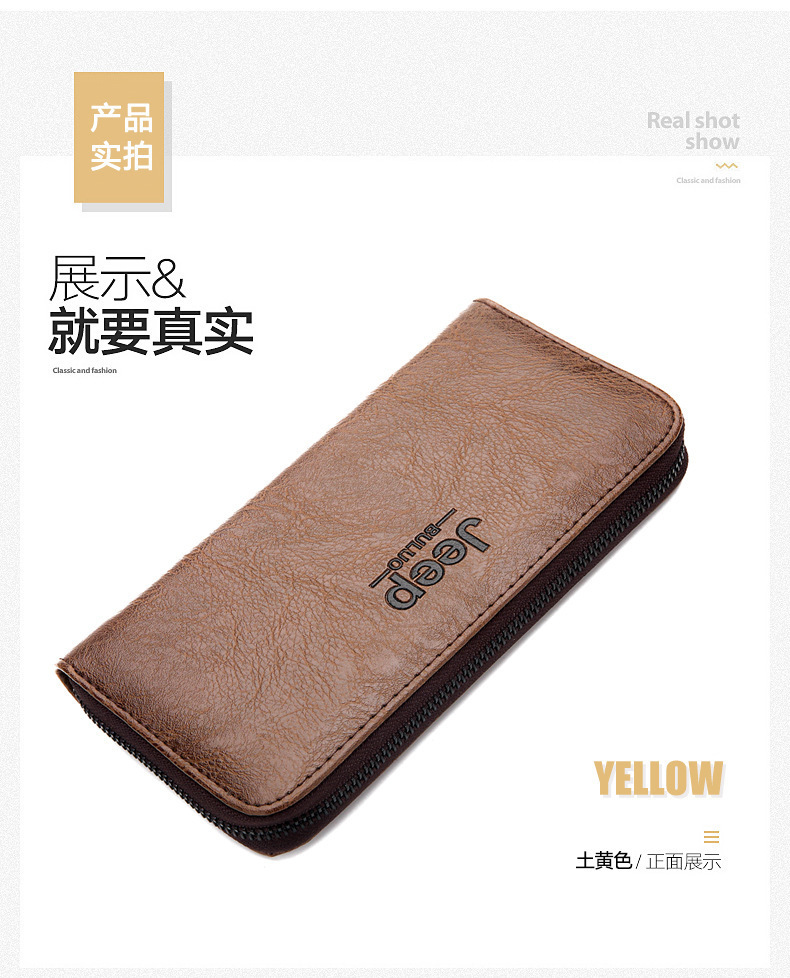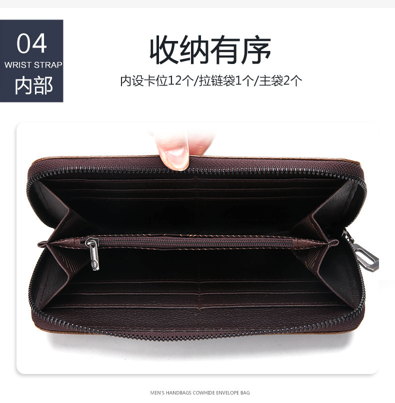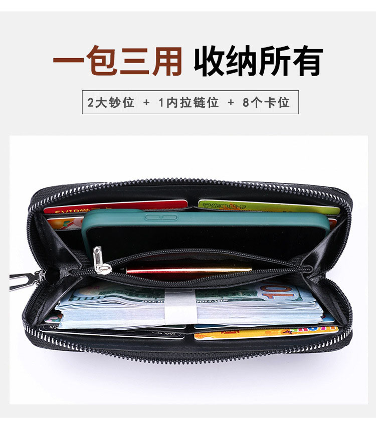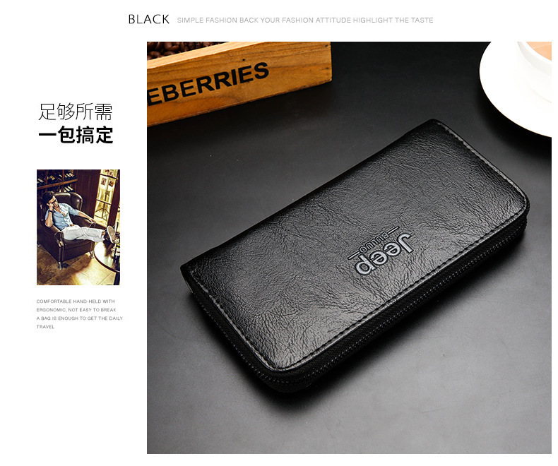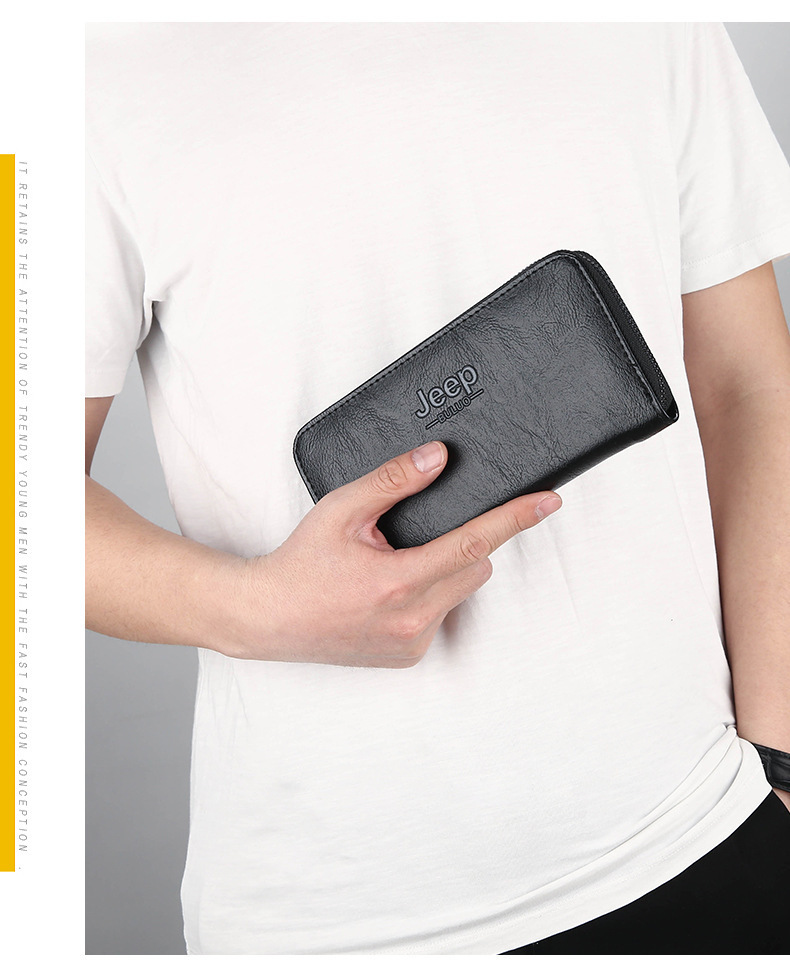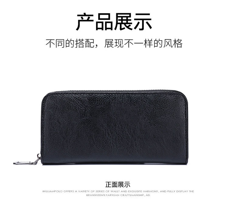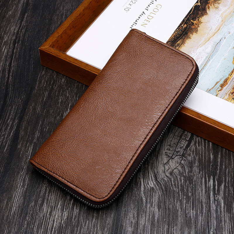 새로운 남성 비즈니스 지퍼 다기능 남성 지갑 긴 지갑 멀티 카드 지갑 단색 동전 가방