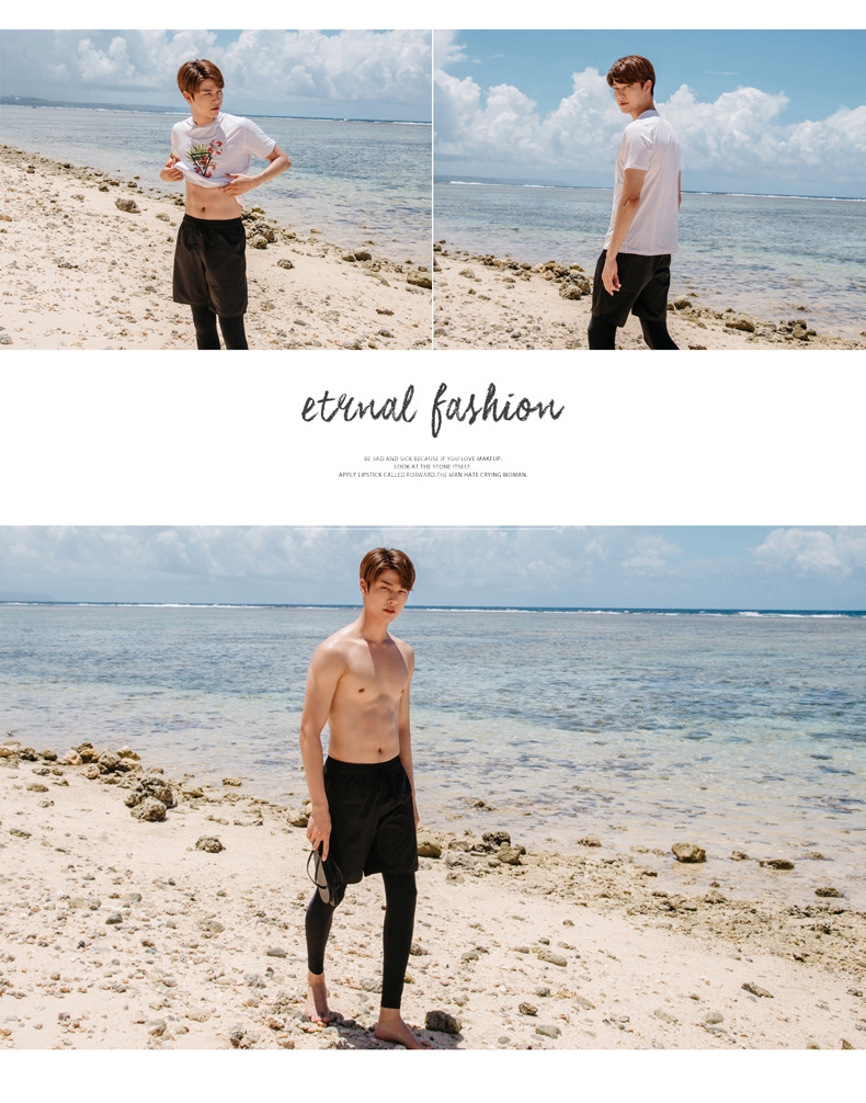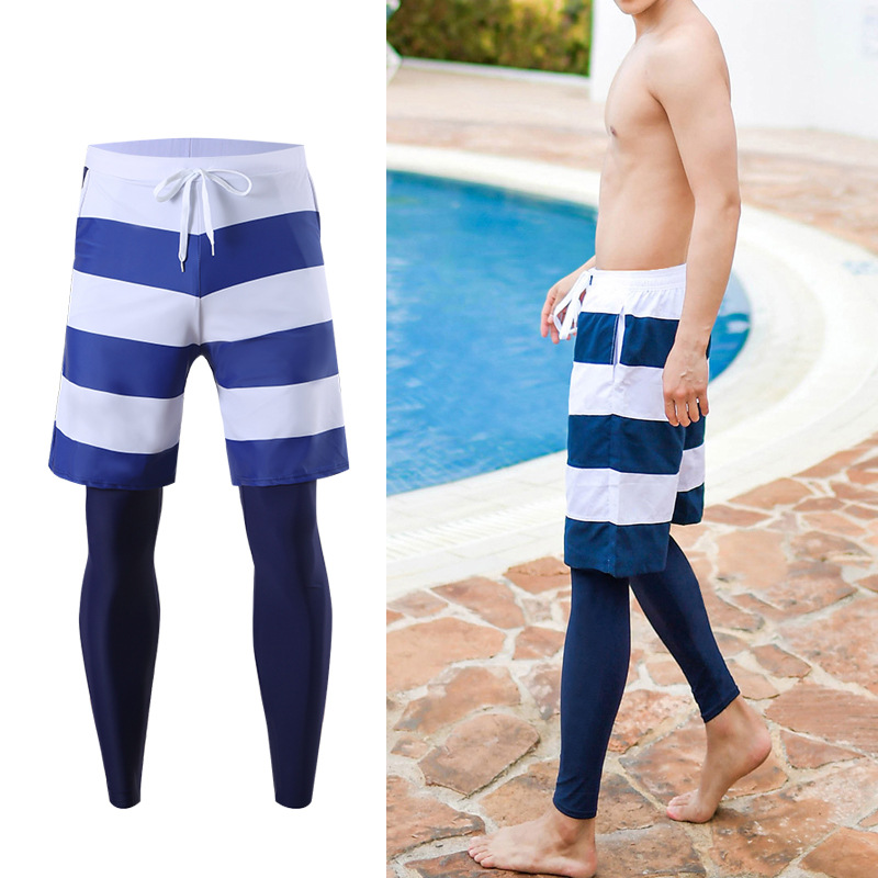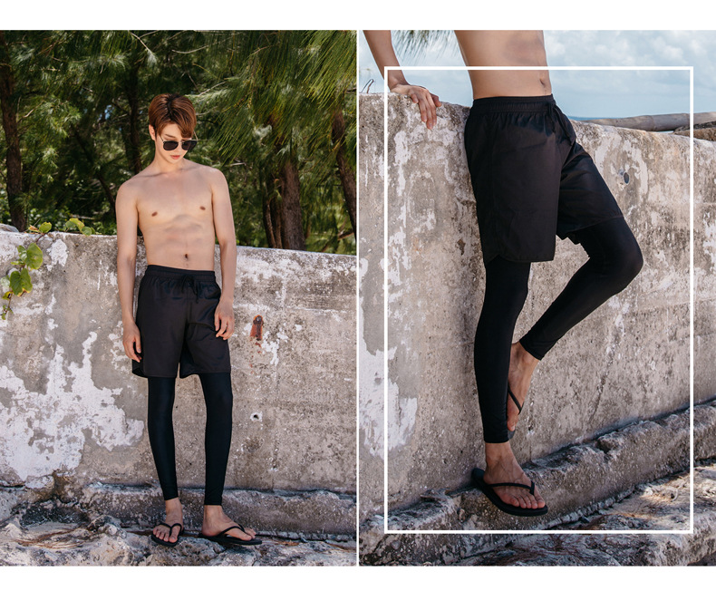 다이빙 바지 남성 분할 바지 태양 저항 빠른 건조 타이트 수영 트렁크 스노클링 서핑 가짜 투피스 플러스 사이즈 스트레치 비치 바지