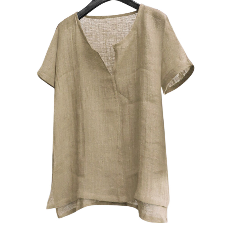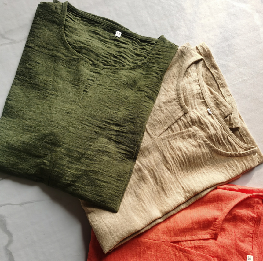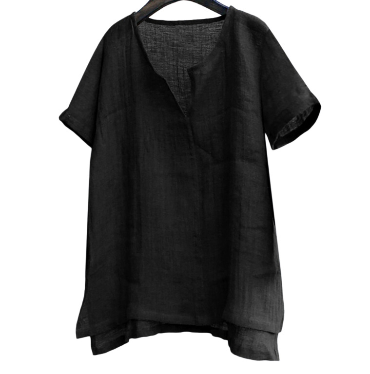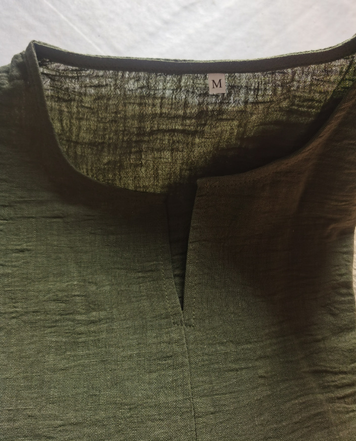 2024 남성과 여성의 청소년 중국 T 스타일 코튼 및 리넨 단색 느슨한 옷 중국 스타일 V 넥 긴 소매 셔츠