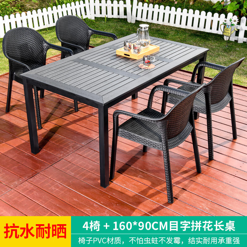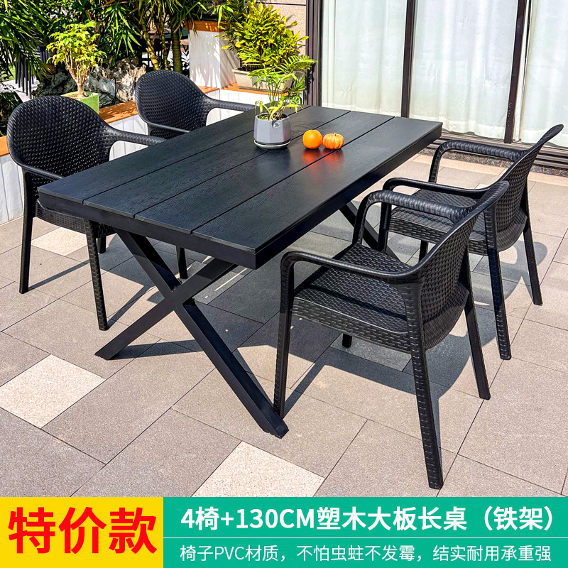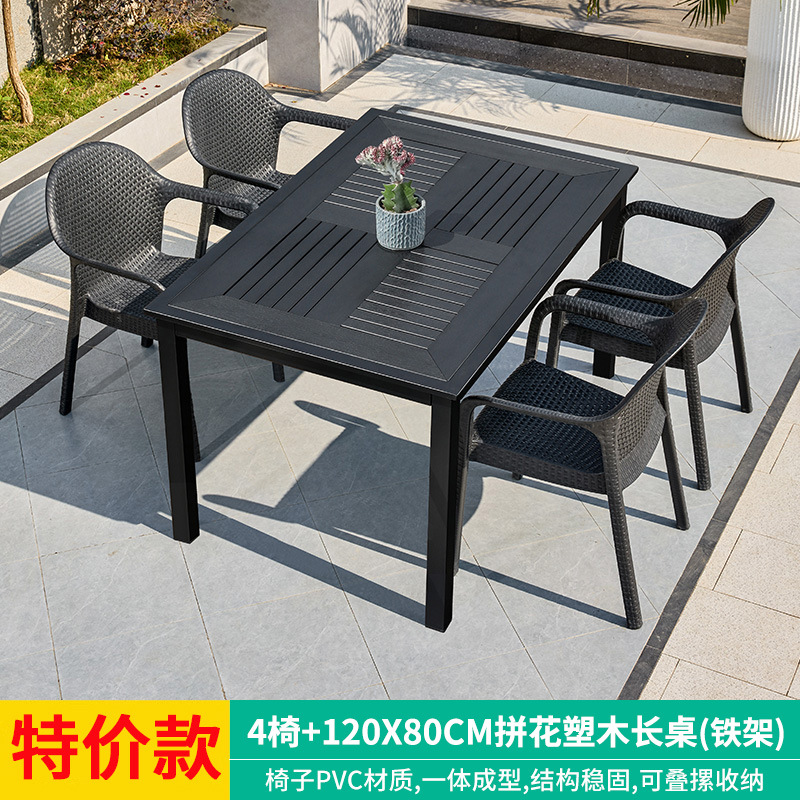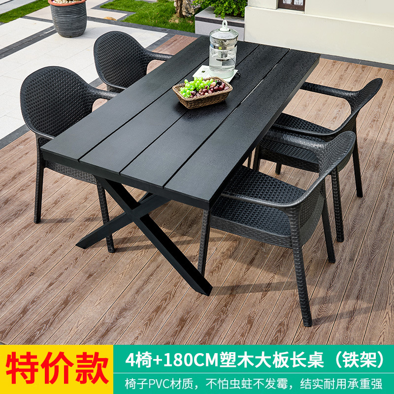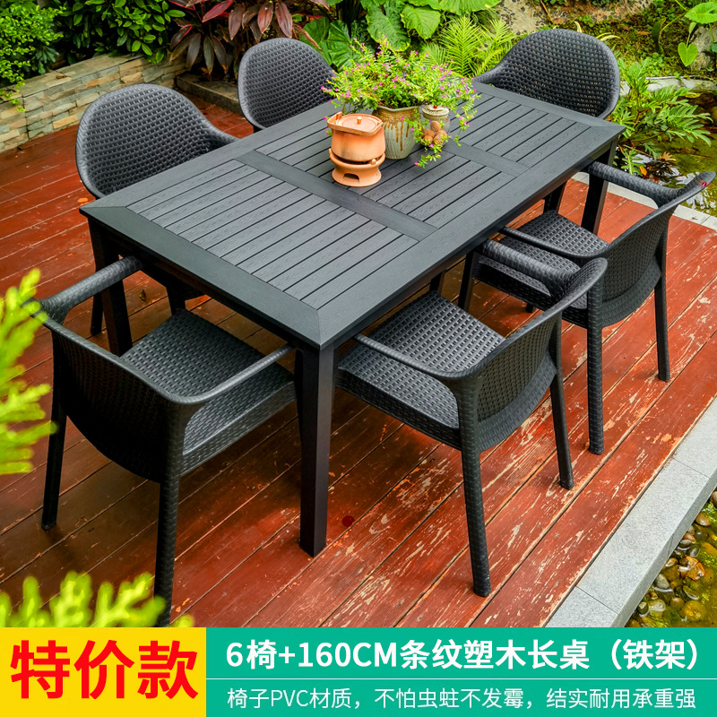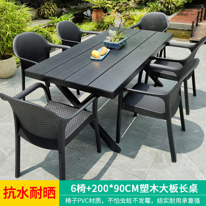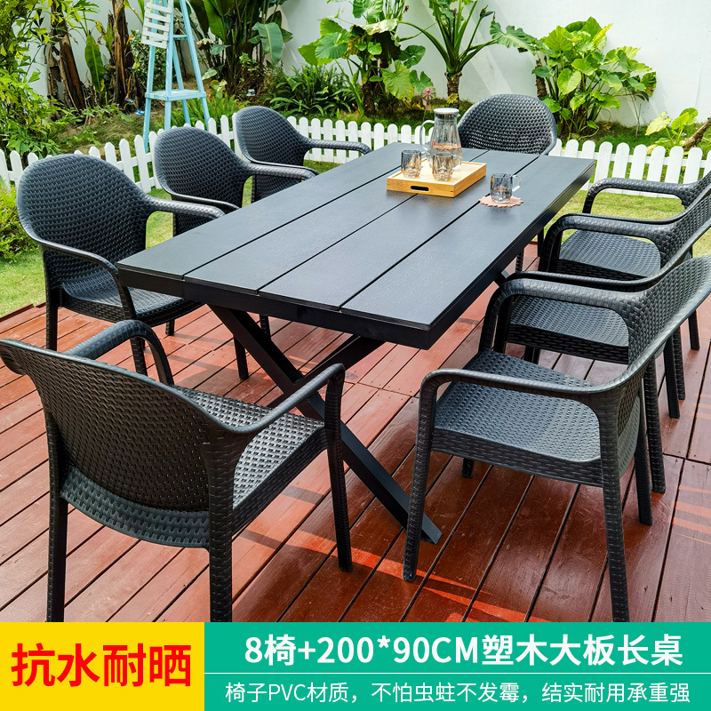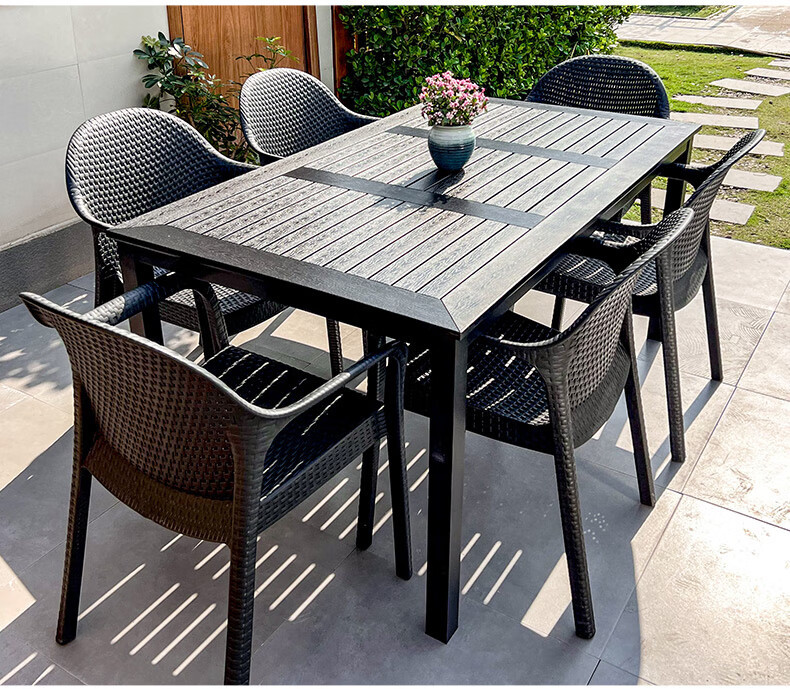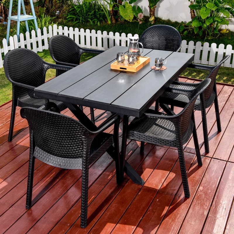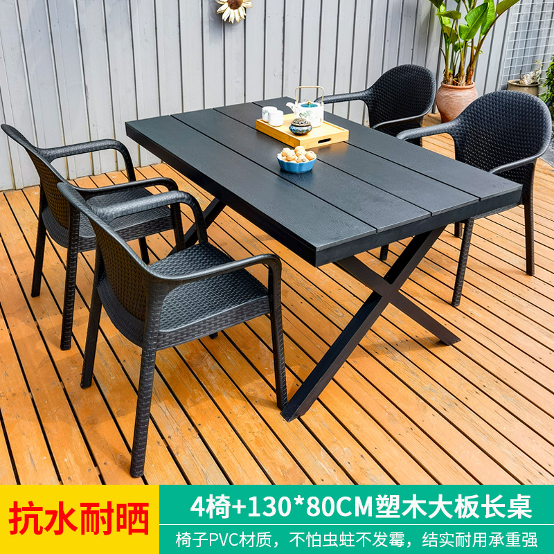 야외 테이블과 의자, 안뜰 레저용 플라스틱 목재 빌라, 야외 테라스 정원, 야외 B&B 마당, 방수 모조 등나무 플라스틱 의자