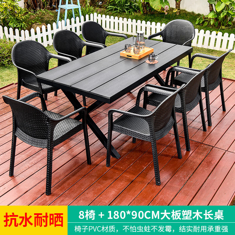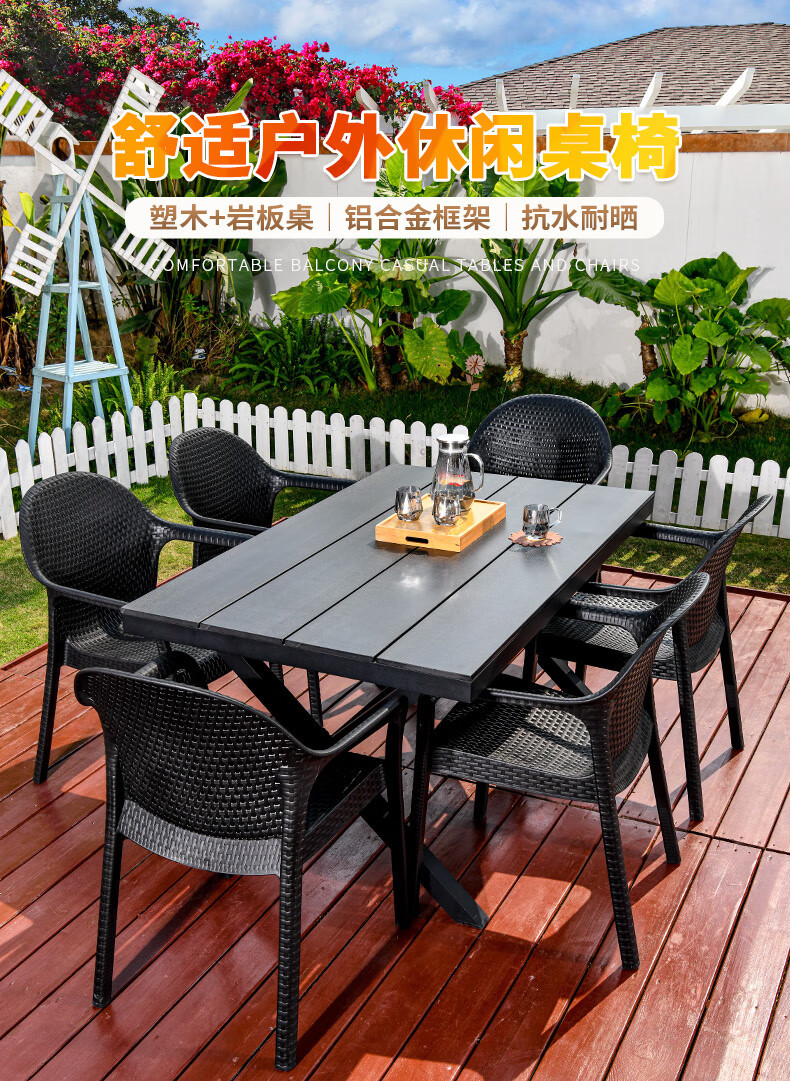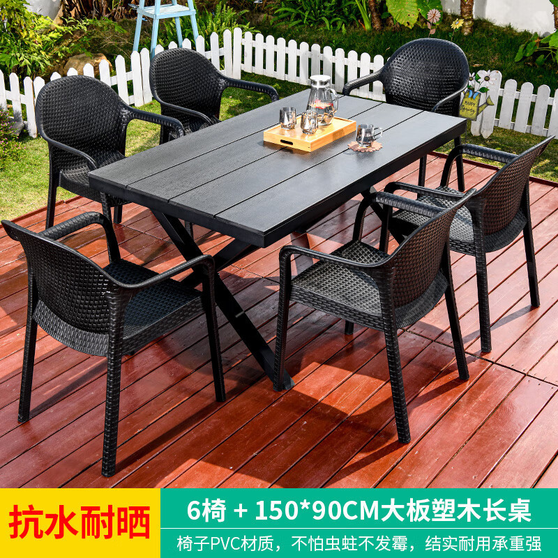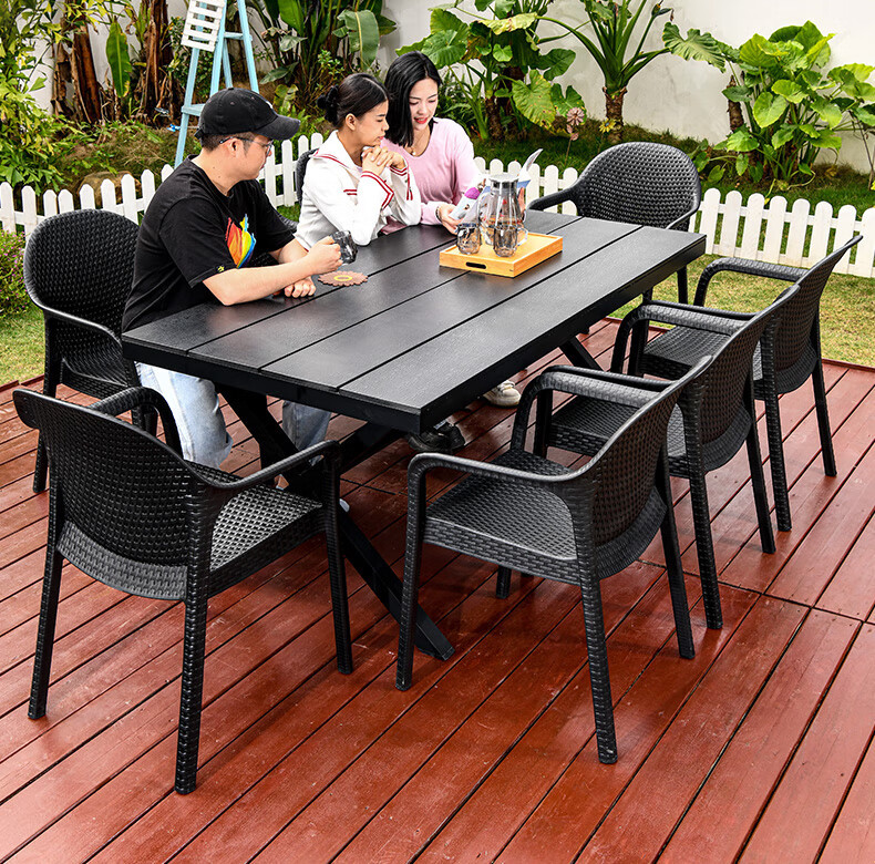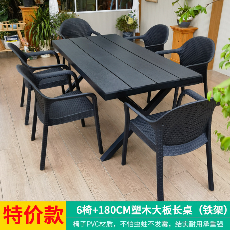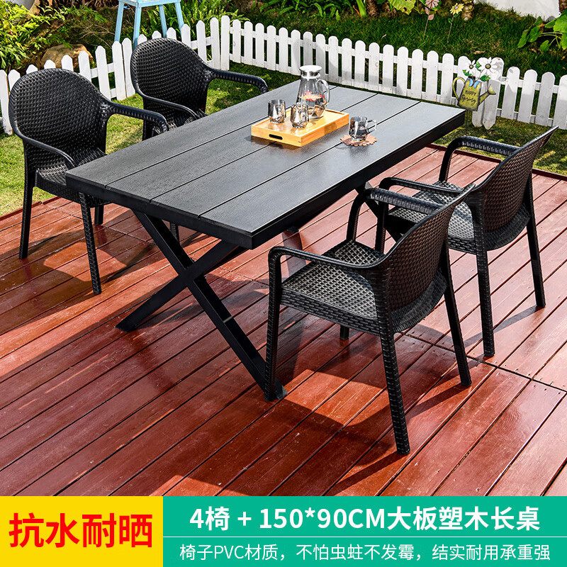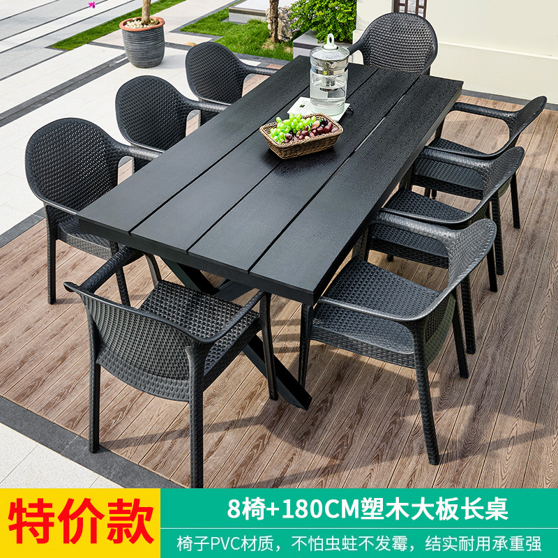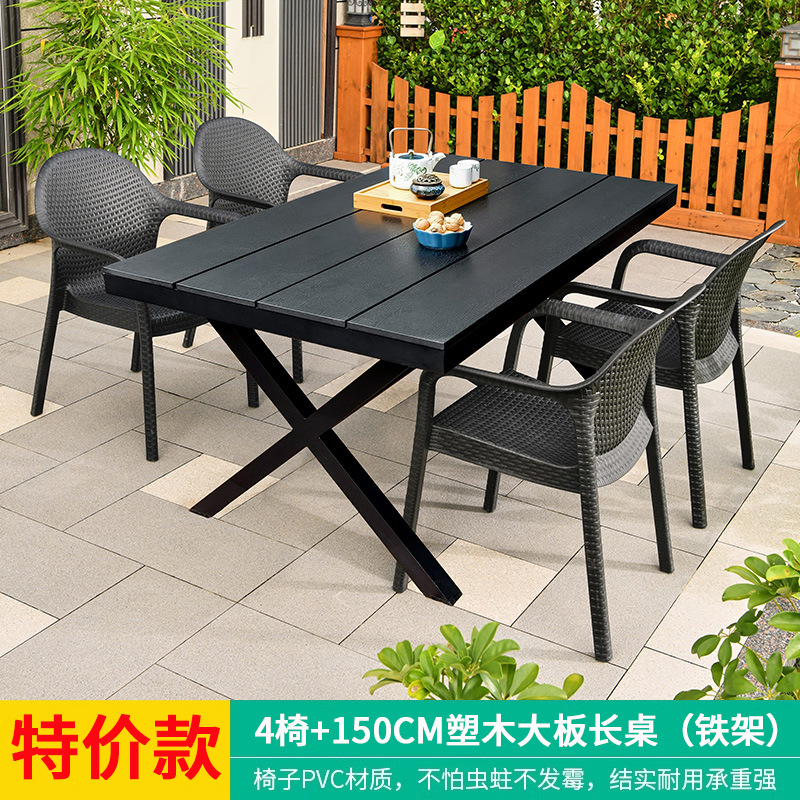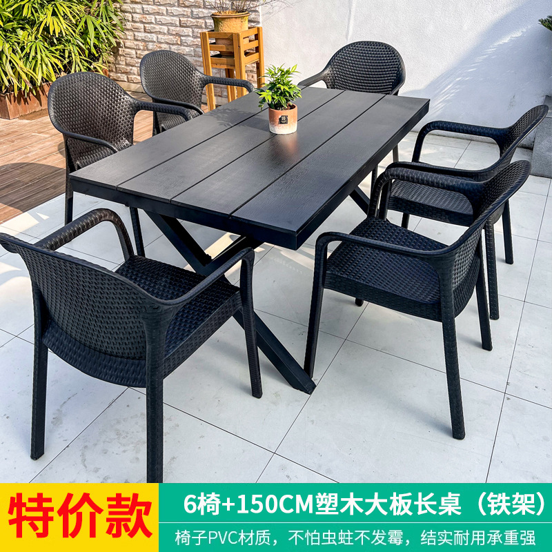 야외 테이블과 의자, 안뜰 레저용 플라스틱 목재 빌라, 야외 테라스 정원, 야외 B&B 마당, 방수 모조 등나무 플라스틱 의자