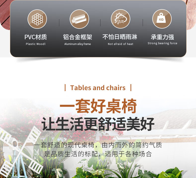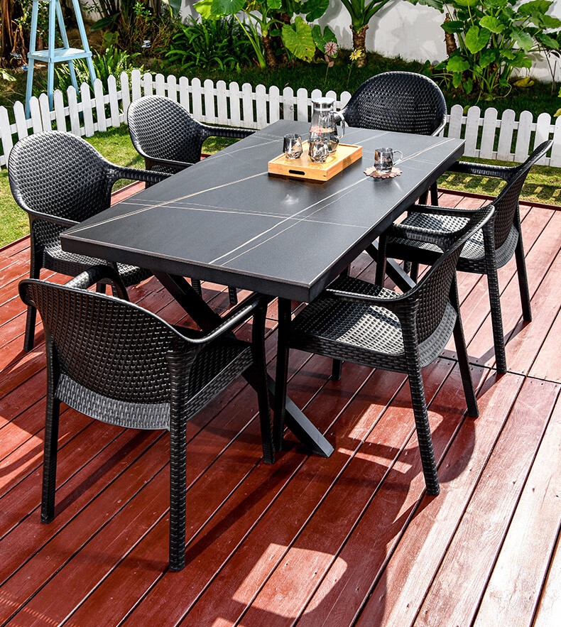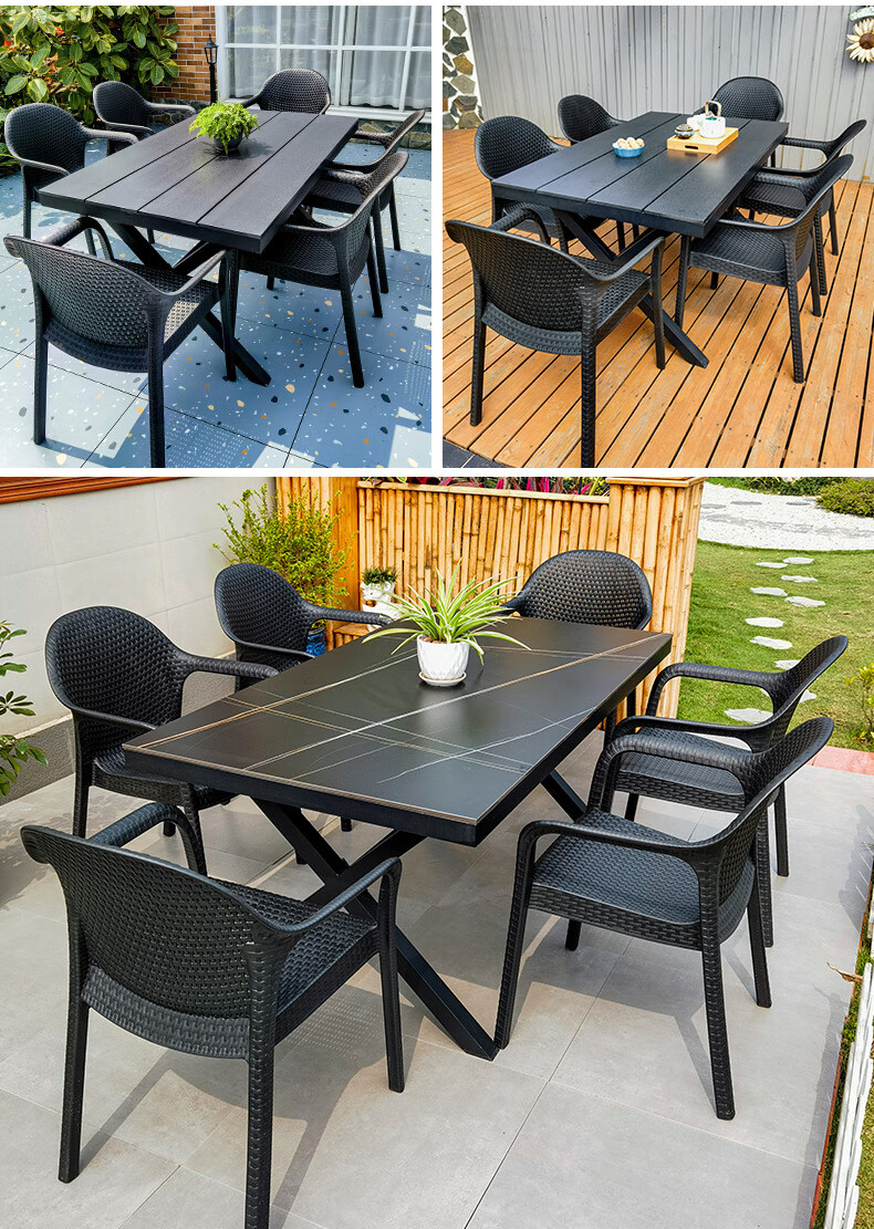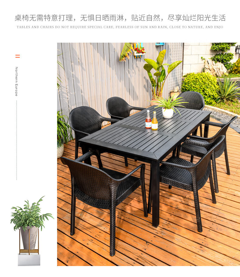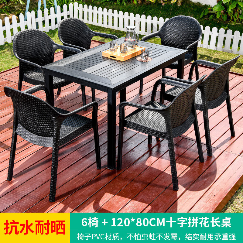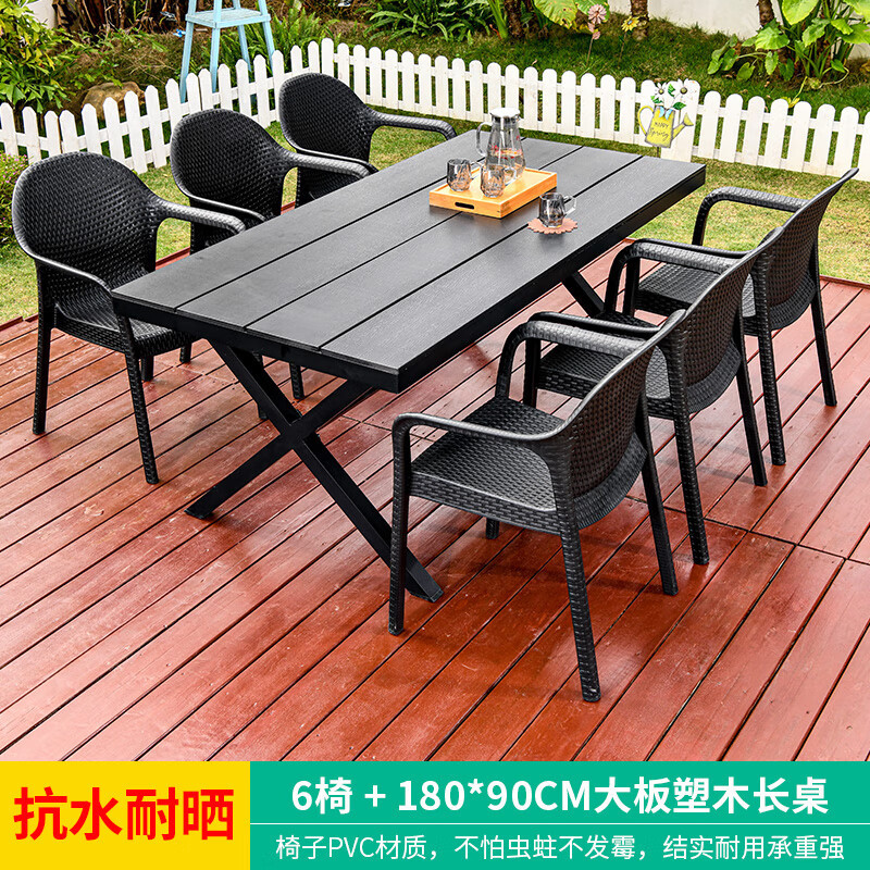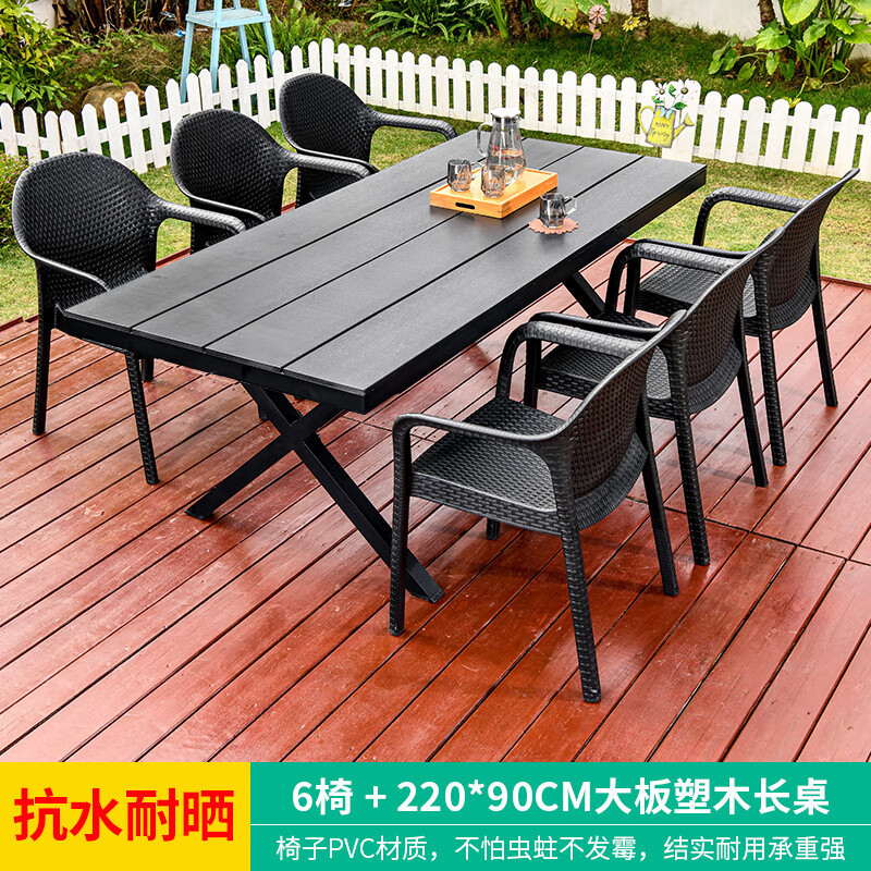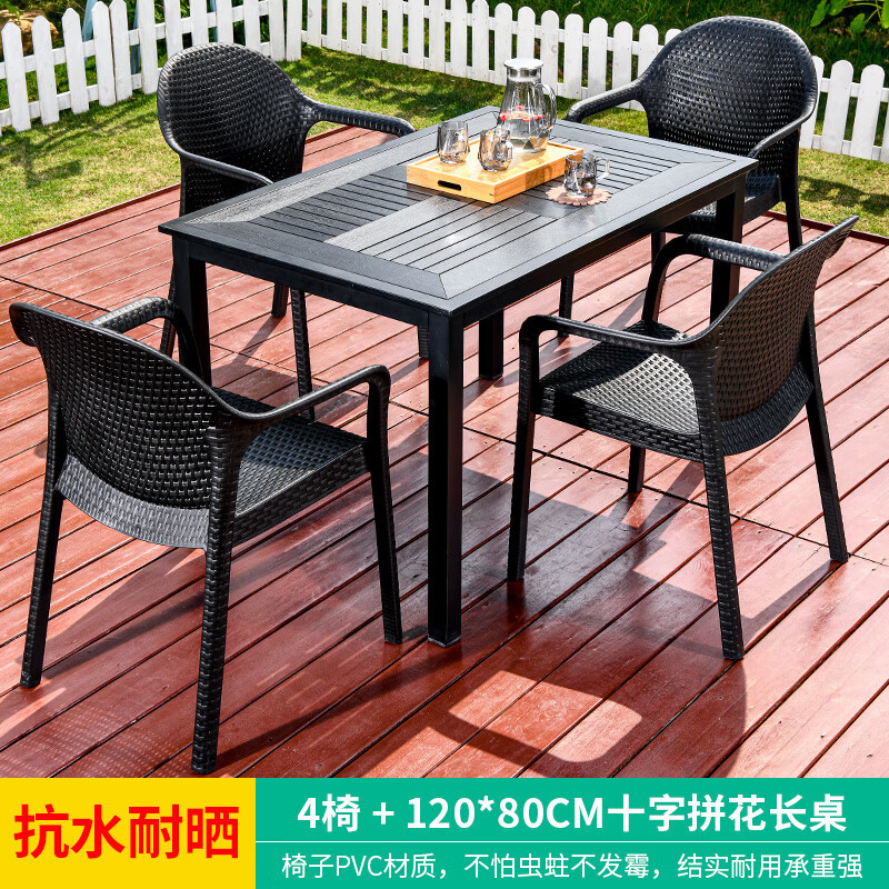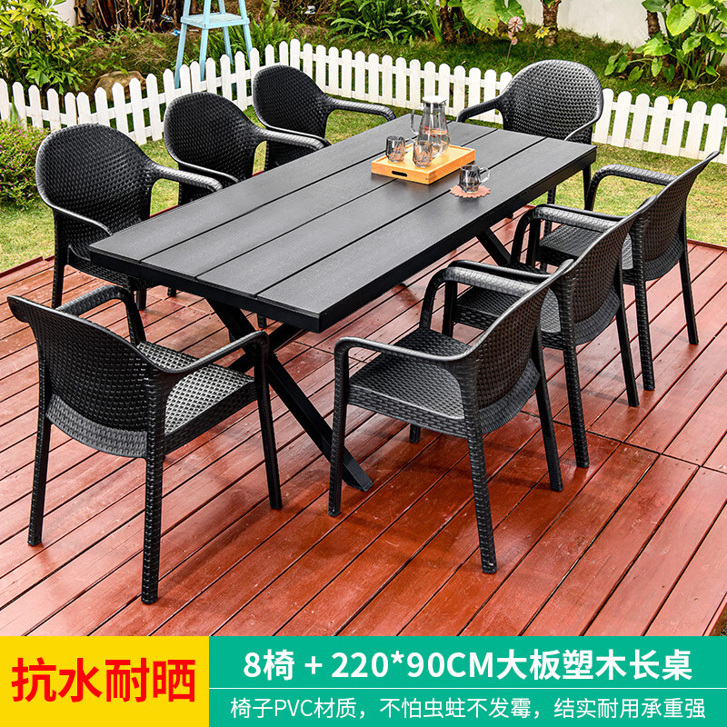 야외 테이블과 의자, 안뜰 레저용 플라스틱 목재 빌라, 야외 테라스 정원, 야외 B&B 마당, 방수 모조 등나무 플라스틱 의자