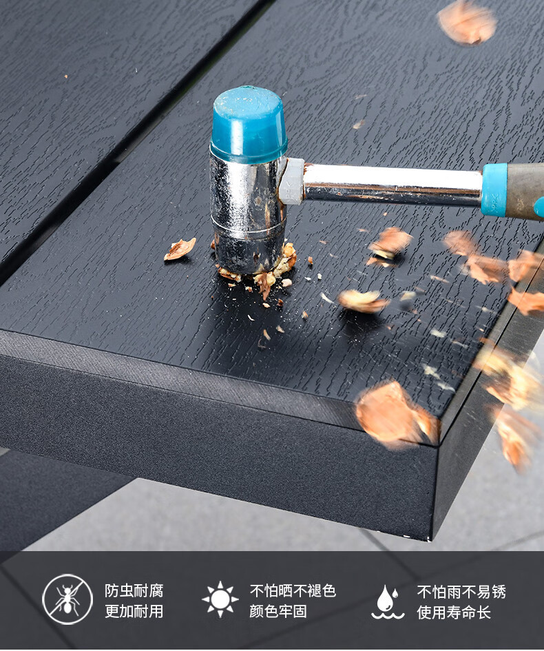 • 의자 6개 + 180CM 플라스틱 목재 대형 테이블(철 프레임)