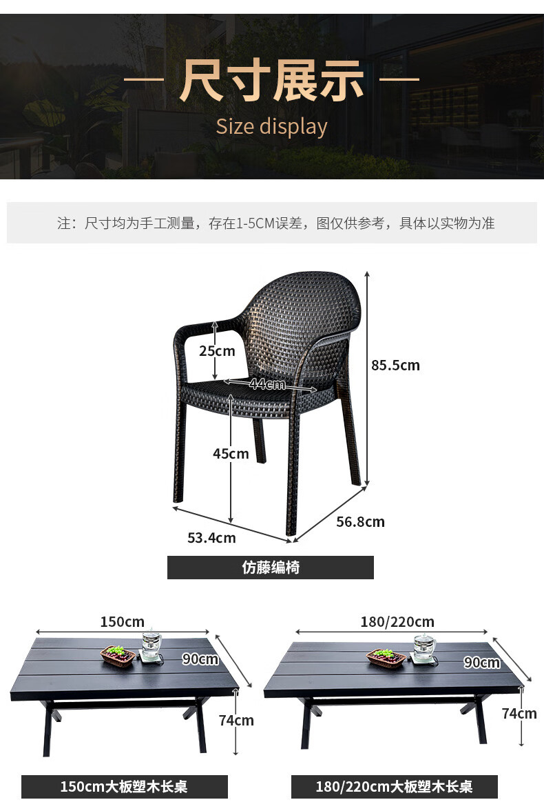 • 6+220CM 대형 플라스틱 목재 긴 테이블 [알루미늄 합금 프레임]