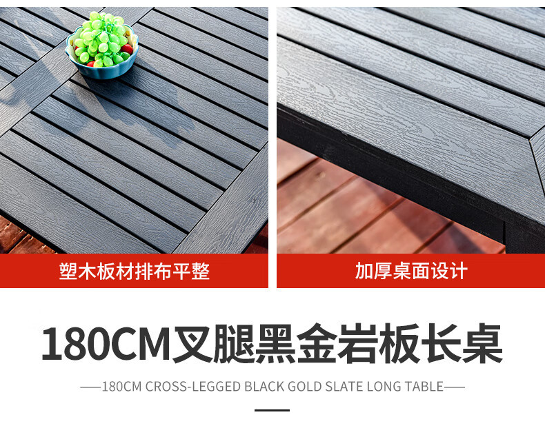 • 6+180CM 대형 플라스틱 목재 긴 테이블 [알루미늄 합금 프레임]