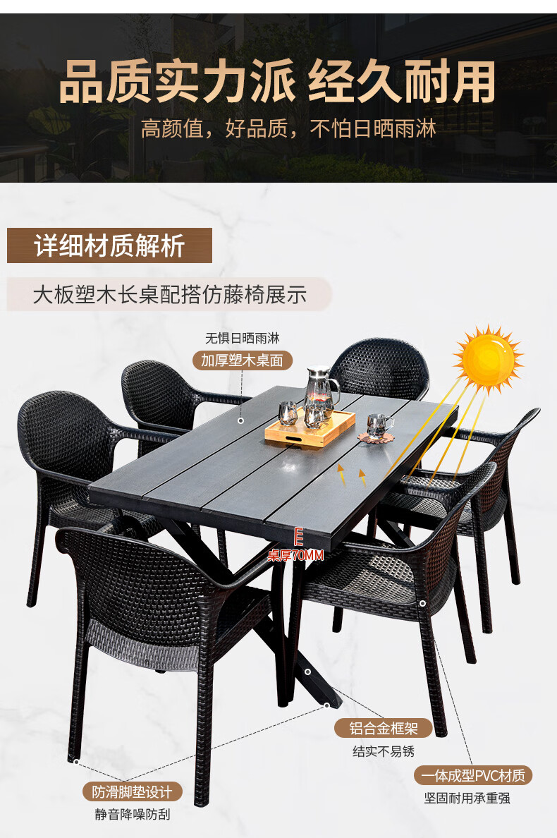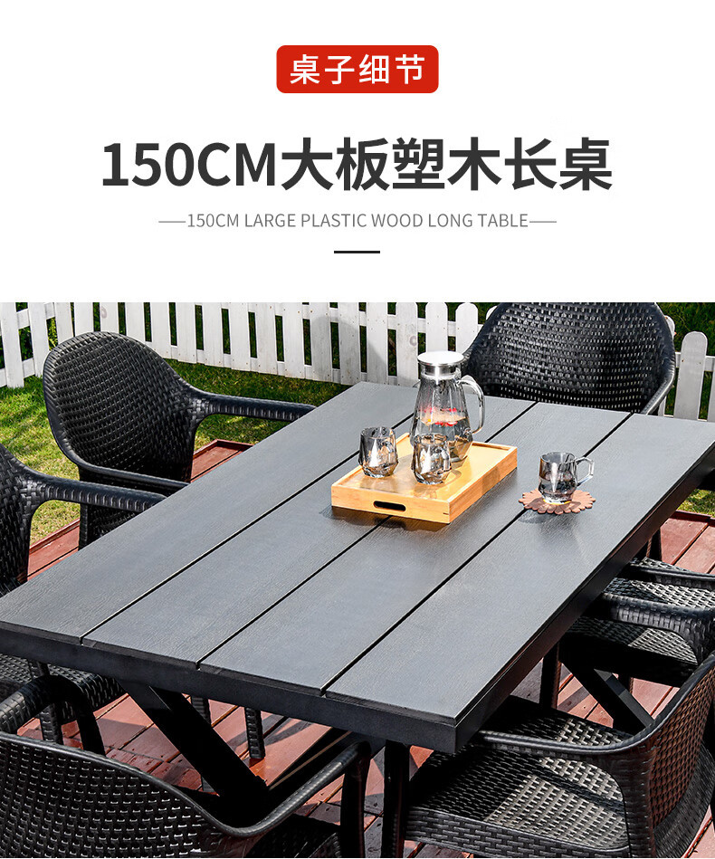 • 6+150CM 대형 플라스틱 목재 긴 테이블 [알루미늄 합금 프레임]