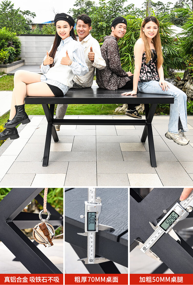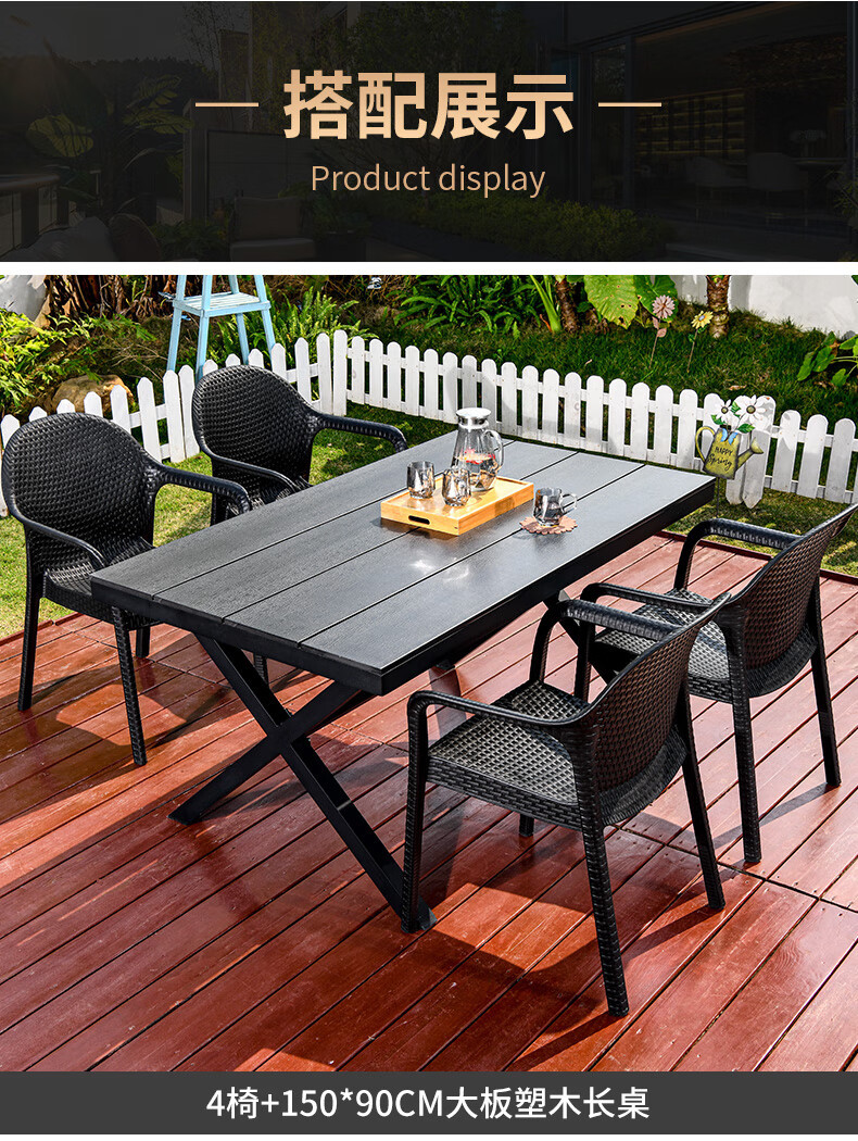 • 4+150CM 대형 플라스틱 목재 긴 테이블 [알루미늄 합금 프레임]