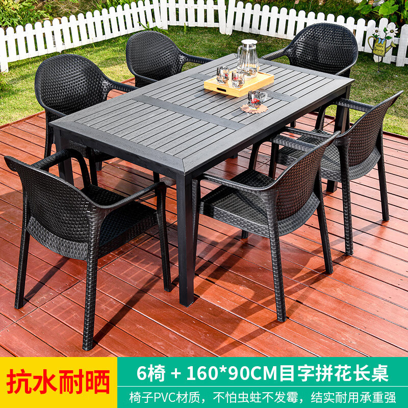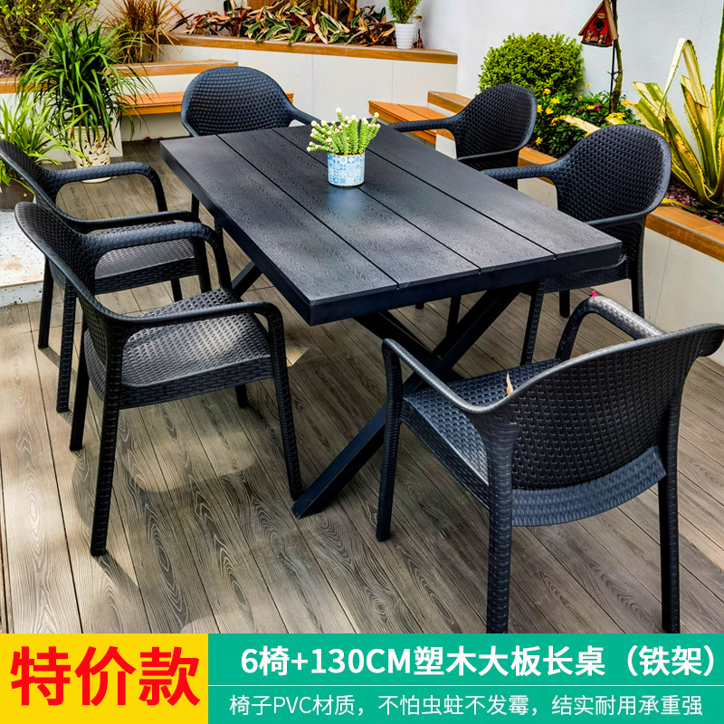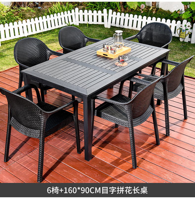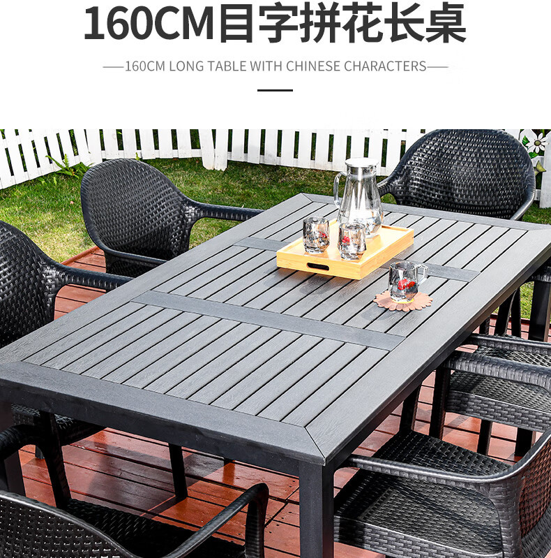 • 의자 6개 + 160CM 패치워크 플라스틱 목재 긴 테이블(철 프레임)