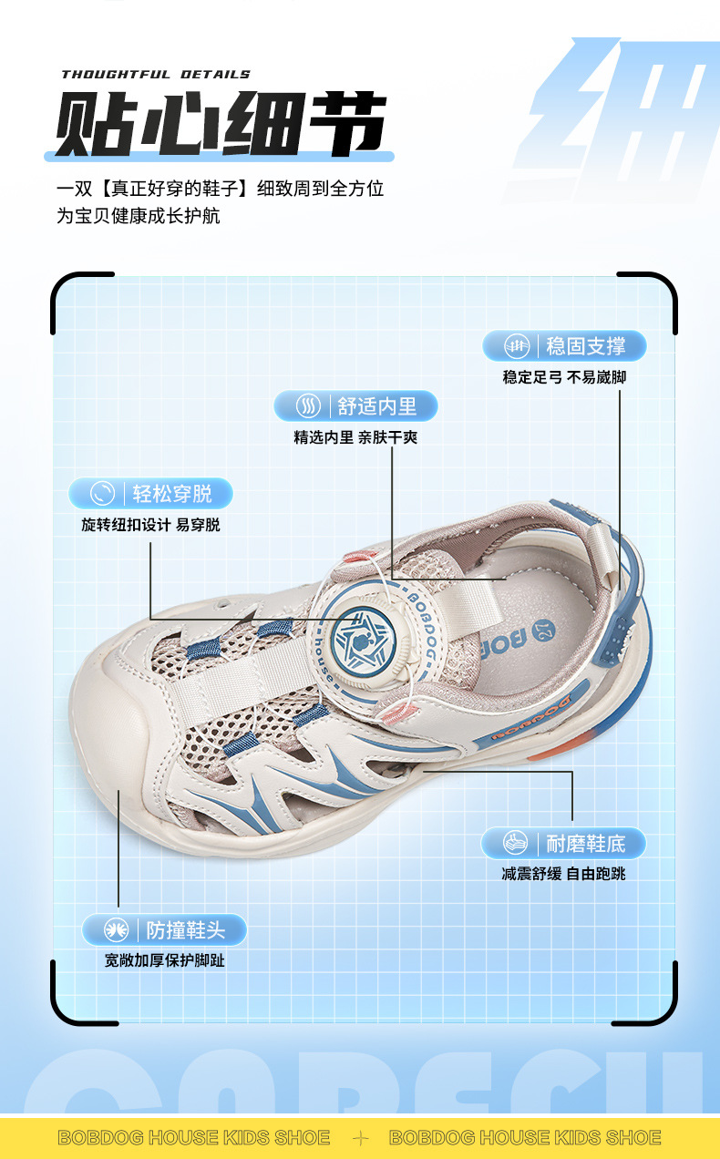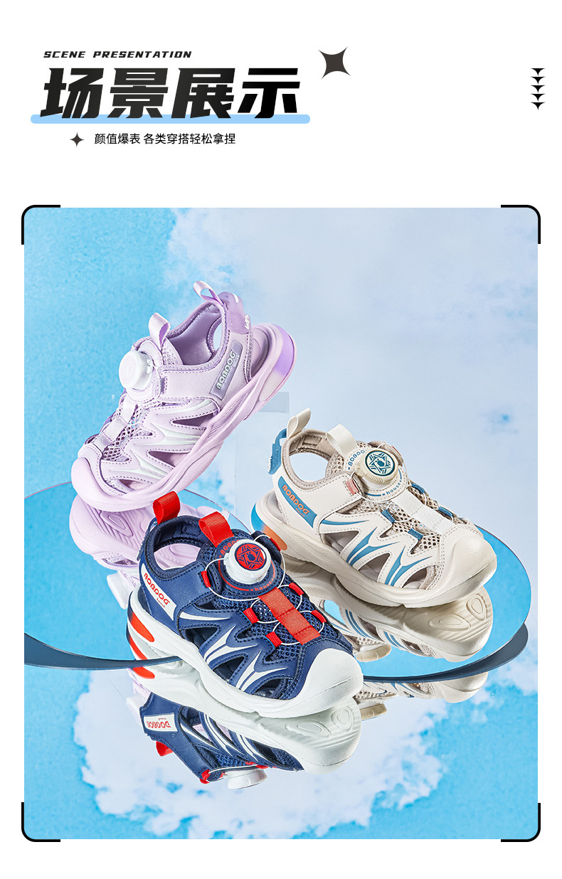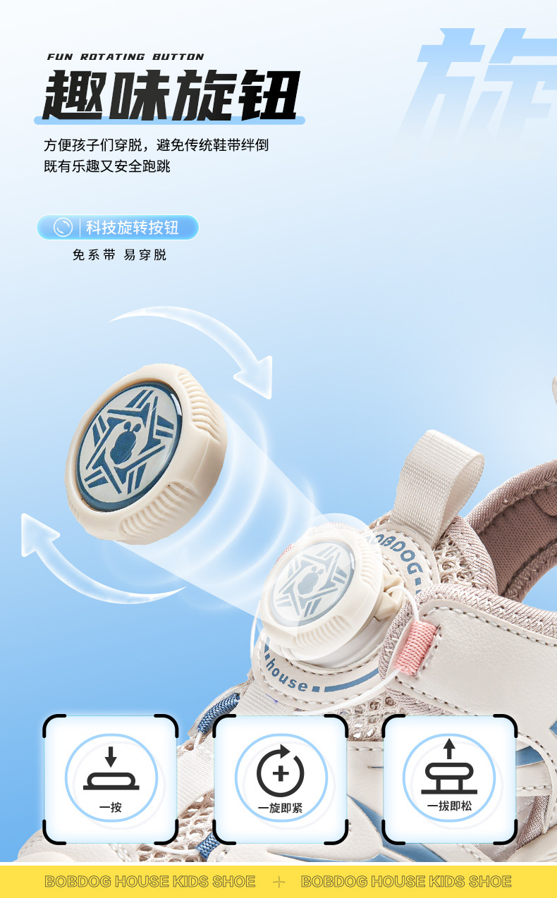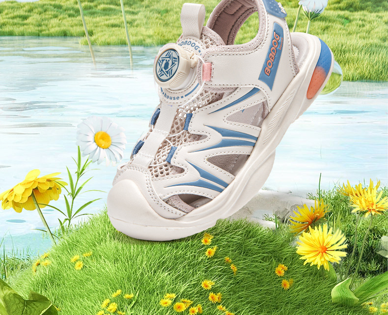 Babu bean 어린이 신발 공장 직접 여름 새로운 회전 버튼 큰 어린이 레저 통기성 소년 소녀 Baotou 쿨