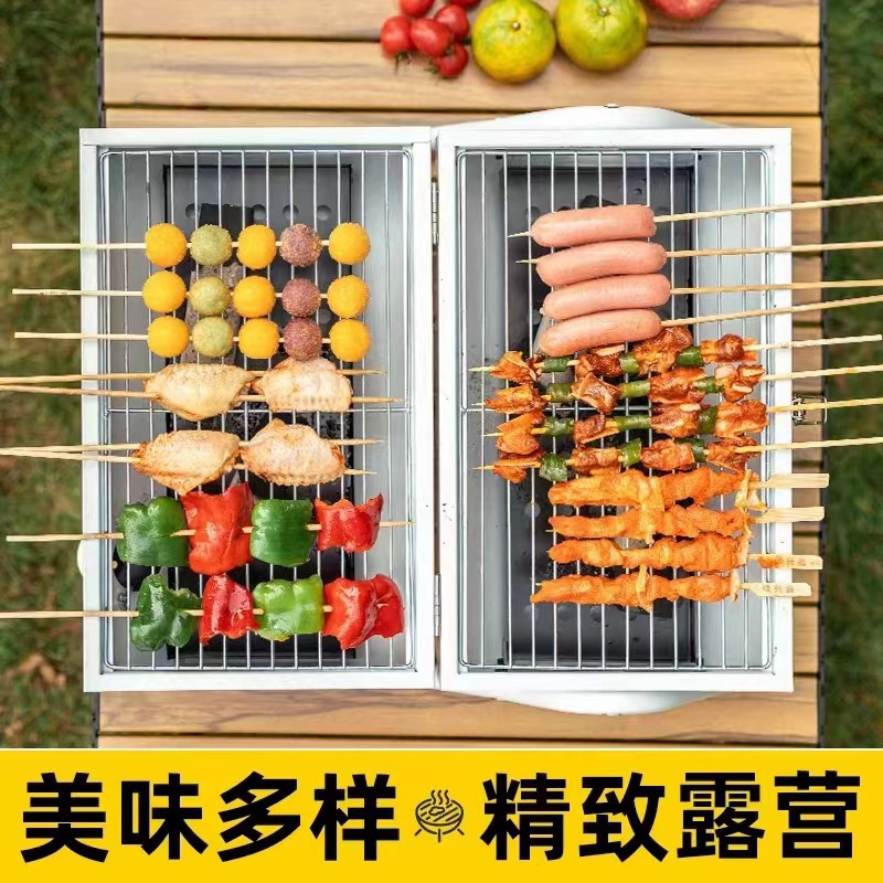새로운 팔각형 굴뚝 스토브 야외 편리한 탄소 그릴 가정용 휴대용 양면 바베큐 그릴 바베큐 그릴