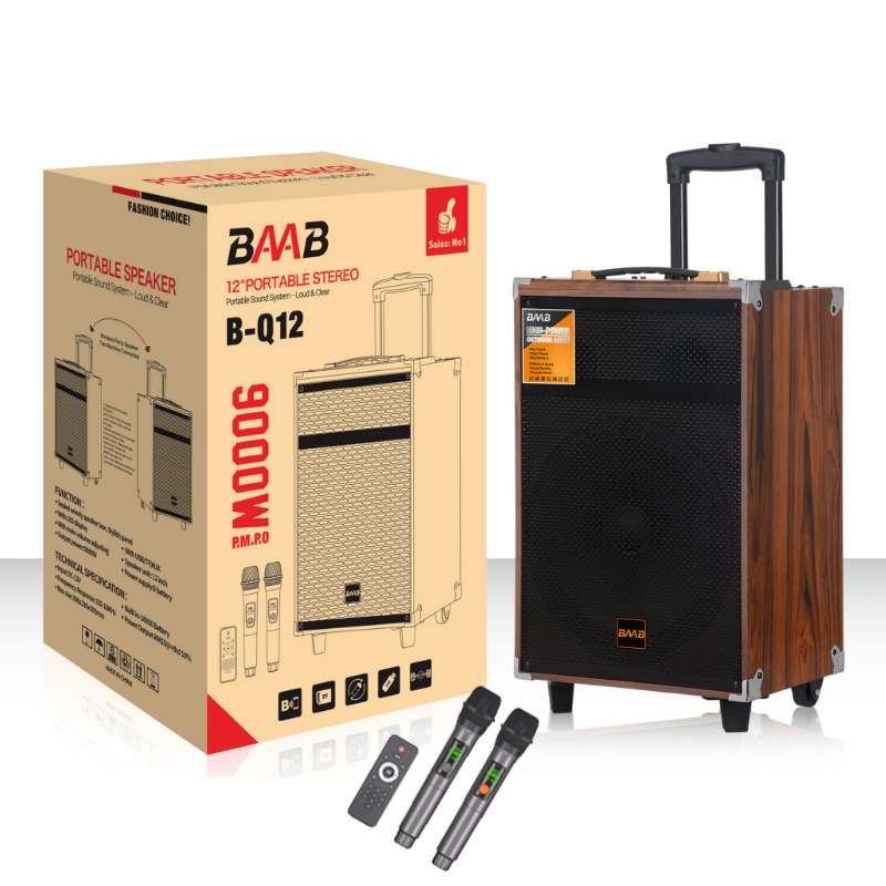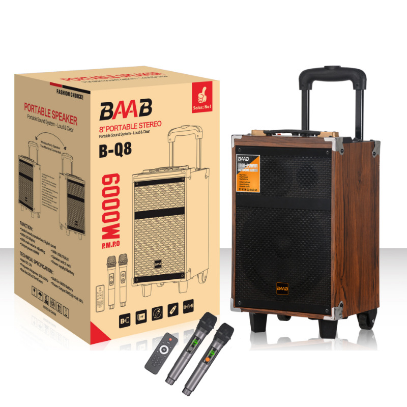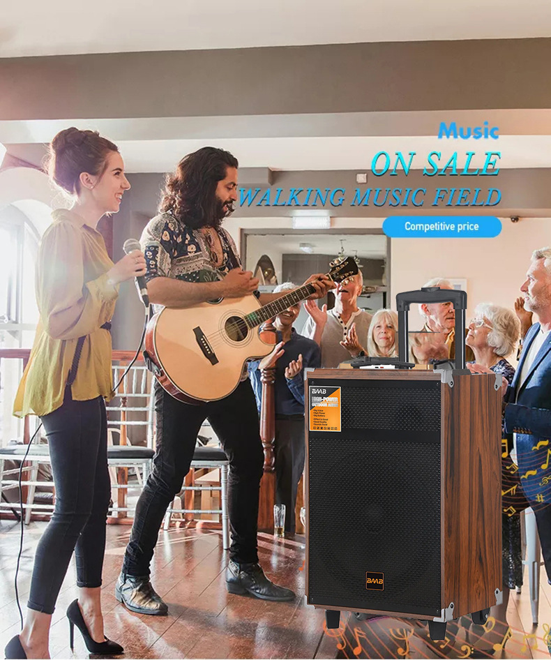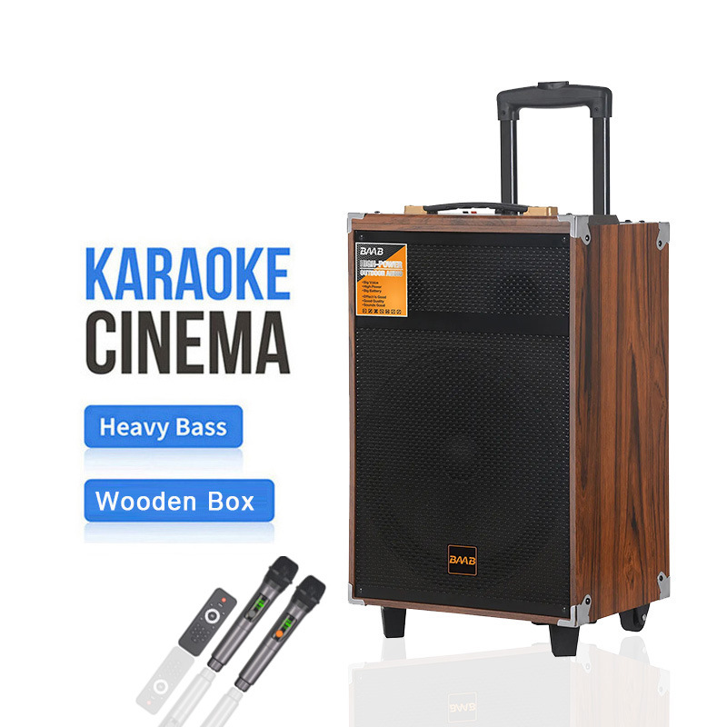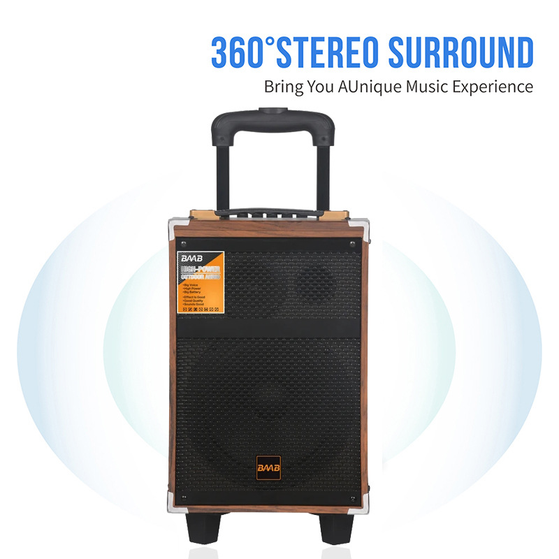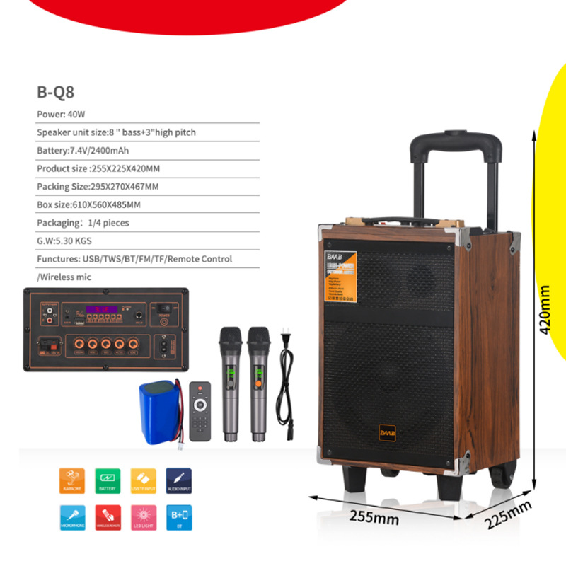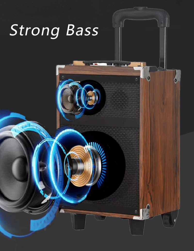 Cross border wooden high volume 40W handcart wireless speaker outdoor square dance mobile portable Bluetooth speaker