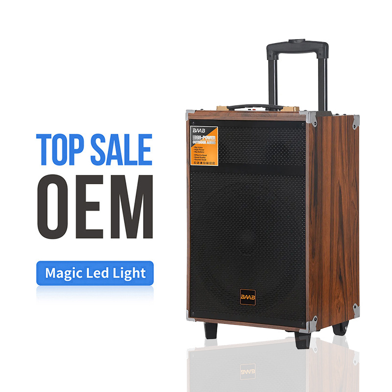 跨境木质大音量40W手推车无线音响 户外广场舞移动便携蓝牙音响